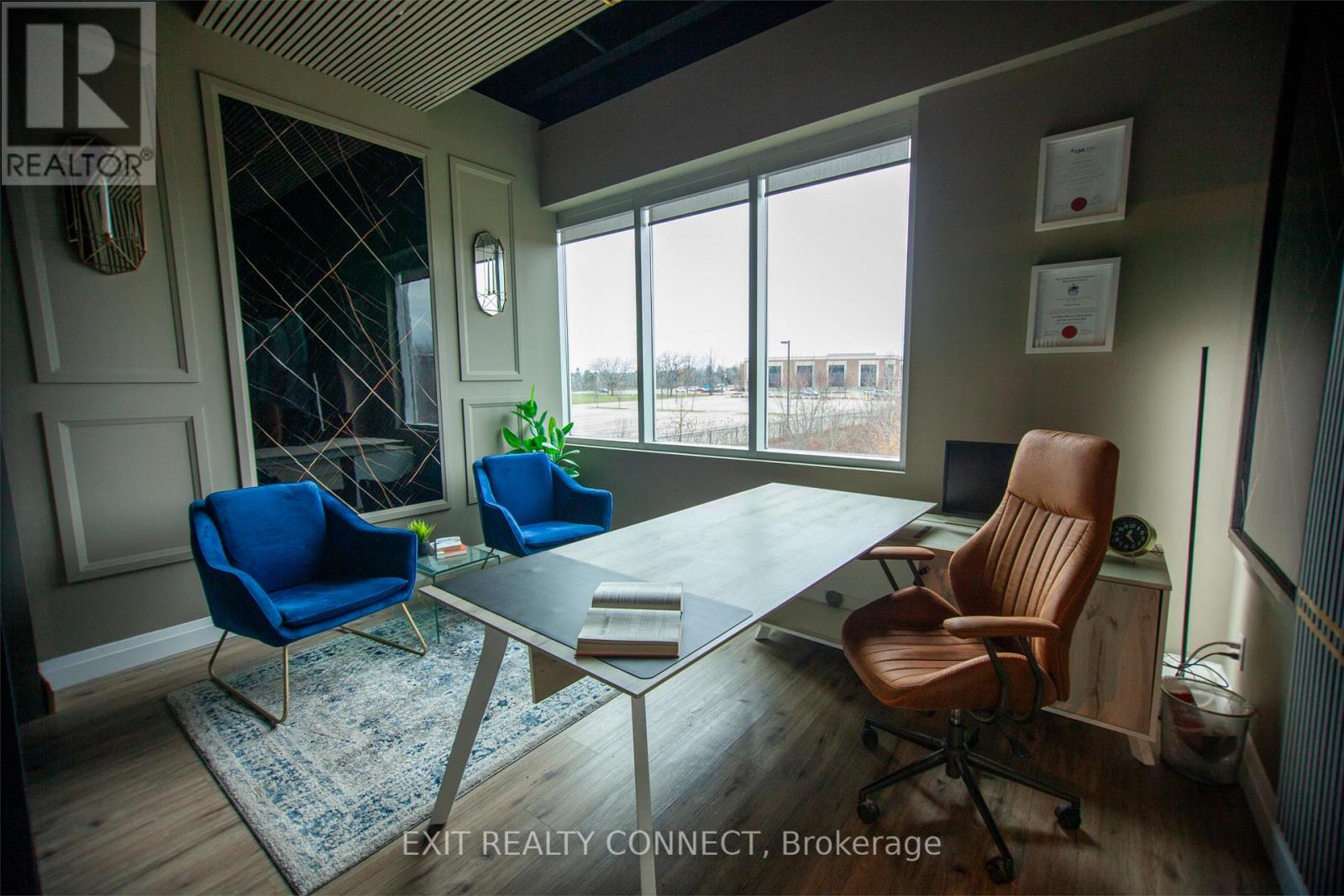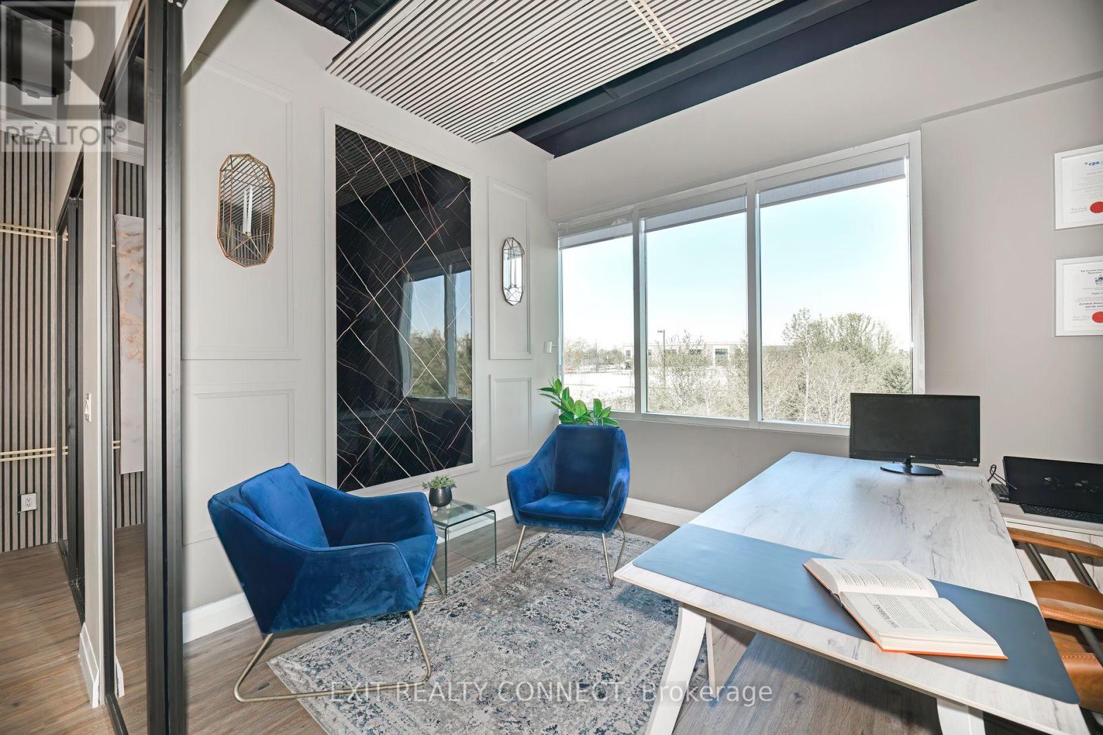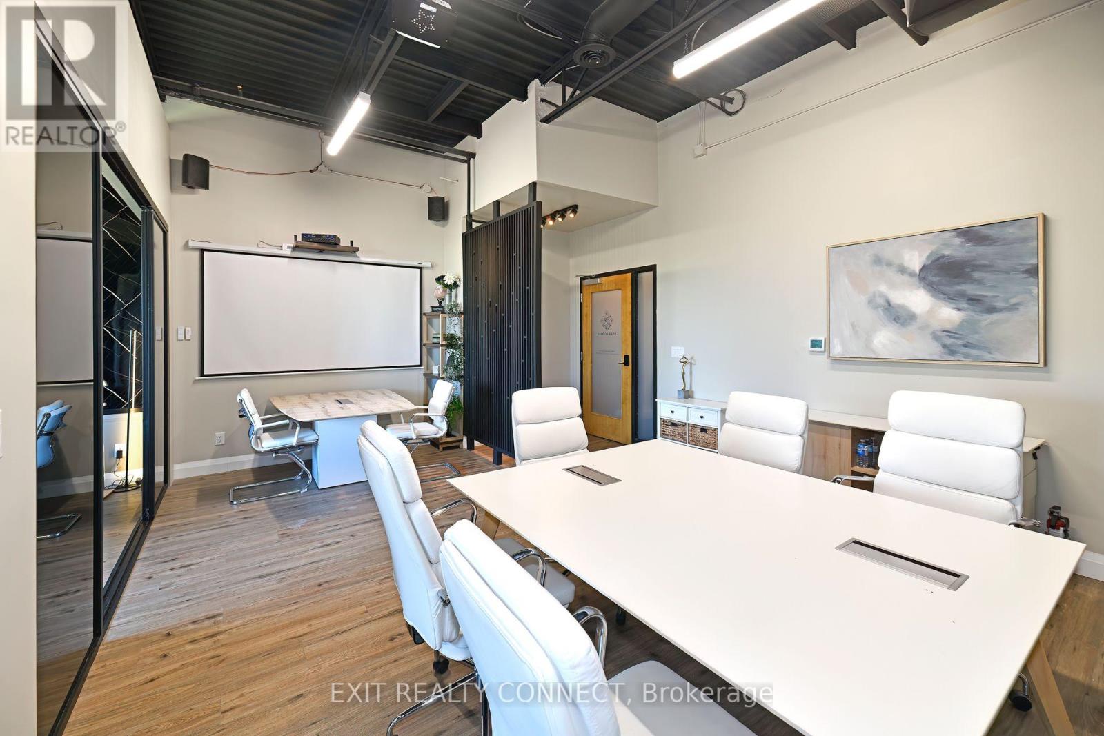 Discover the Potential at 3485 Rebecca Street #208 a bright, professional space designed to elevate your business. With impressive 12-footceilings and large windows, this unit offers natural light and a view of the adjacent green space, creating a welcoming and private atmosphere for clients and teams alike. open work space plus 2 private offices provides a modern executive office experience. Step into a professionally finished custom setting with high end finishes. Additional features include access to shared amenities including a sleek 416 sq ft boardroom and a 242 sq ft kitchen & lounge perfect for meetings, collaboration, and day-to-day convenience. Positioned on one of Oakville's high-traffic corridors with over 20,000 vehicles passing daily, Unit 208 boasts excellent signage opportunities and exposure. The property also offers direct access to a9-acre grocery-anchored retail plaza, enhancing convenience and walkability for your clients and team. Ample parking and proximity to the QEW ensure seamless access, while the surrounding mix of industrial, retail, and upscale residential neighborhoods makes this a prime location for any growing business. Need more space? This unit can be combined with Unit 209. Opportunity knocks elevate your business at Rebecca Street today (id:4555)