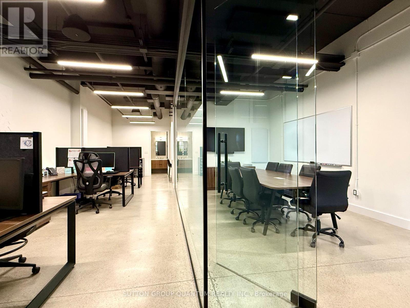 Here is your opportunity to own a main-floor commercial unit in Oakville! This 1,430 sq. ft. office space is meticulously finished, maximizing every square inch for functionality and style. The layout features a welcoming reception area, a boardroom, open office desk space, a kitchen, a full bathroom, and a storage/mechanical room. Located in a modern plaza with ample parking right at the Oakville/Burlington border. The property offers flexible zoning that accommodates institutions, banks, law firms, accountants, insurance firms, immigration services, tutorial centers, design and display centers, and other professional offices. (Non-retail, non-automotive, and non-food uses.) The building also provides shared access to a 416 sq. ft. boardroom, a common kitchen, and washrooms. The unit itself comes equipped with an alarm system, security cameras and equipment, a built-in sound system, all electric light fixtures, a kitchen fridge, coffee maker, speed oven, dishwasher, HVAC equipment, and a tankless water heater. Burloak Marketplace development includes major anchors such as Food Basics and Shoppers Drug Mart, offering added convenience and visibility. Plus ample parking for staff and clients! (id:4555)