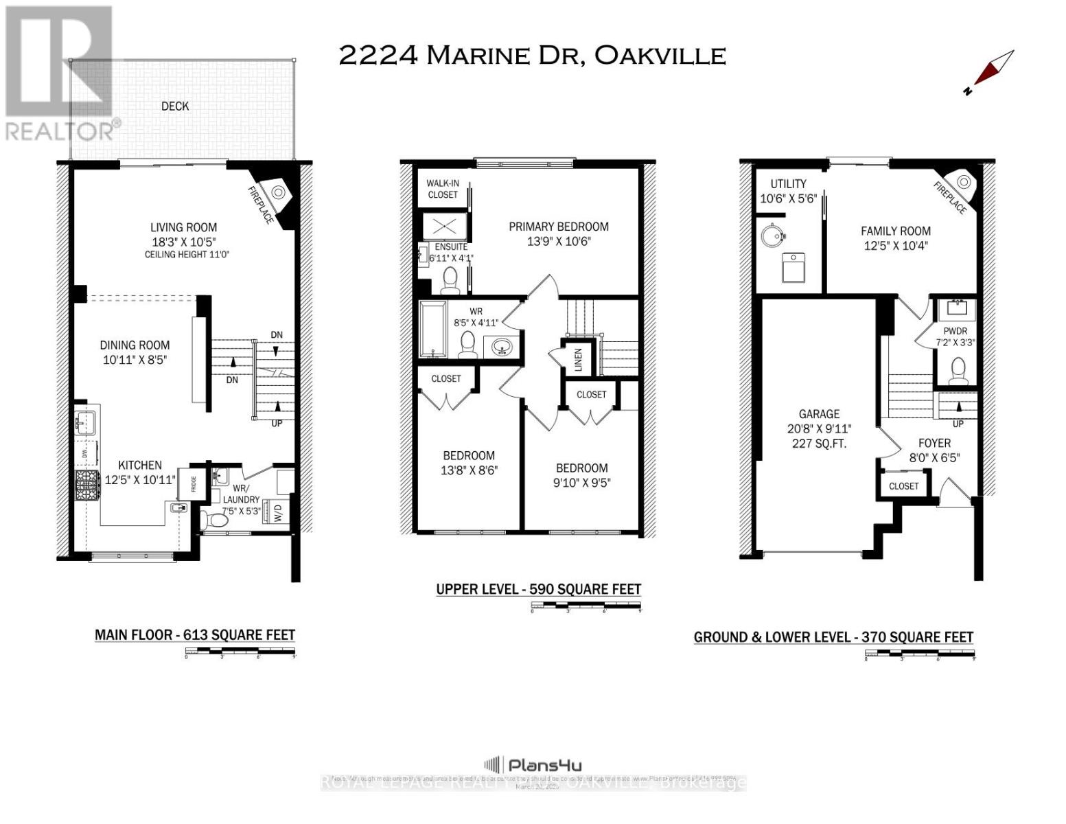 Steps to the Lake, in the Heart of Bronte! Stunning, townhome with recent, quality renovations throughout - Truly in a league of its own. Inviting floor plan offering both flow & function, showcasing large windows that flood the home with natural light. Immaculately maintained, light hardwood floors, smooth ceilings, pot lights, upgraded lighting & neutral decor throughout. Living room with soaring ceilings features a customized impressive Valour corner gas fireplace ideal for furniture placement, walks out to a spacious south-facing deck, with added privacy of not backing directly onto another back yard / deck, or condo apartment building. Stunning, bright, spacious quality custom kitchen, top-of-line Miele and Bosch appliances, marble backsplsh, quartz countrs & convenient 2nd sink perfect for your beverage station! Tranquil views of trees and a green space / parkette directly across the street from large kitchen windows. Spacious dining area, additional pantry cabinetry generously fits a large table perfect for entertaining. Laundry rm dually functions as a powder rm, with Miele washer & dryer, a sink & built in cabinetry. Lower lev Family Room also features a 2nd gas Valour fireplace, and walk-out to your own private, fully fenced back yard with patio, perfect for gardening, relaxing & entertaining. Utility room for extra storage. Inviting large primary bedroom features a walk-in closet & gorgeous ensuite bath room with walk-in shower, both with pocket doors. 2 additional bedrooms, a linen closet & beautifully renovated spa-like main bathroom with tub finishes off the 2nd floor. Convenient garage entry. Upgraded insulation. Owned HWT. Gas bbq hook up. Captivating & immaculate turn-key, move-in ready, nestled perfectly in a highly desirable location to enjoy the Lake, Marina & Harbour, restaurants from cafe's, gelato to fine dining, convenience of amenities walking distance from your doorstep. Your new lifestyle awaits - A true find that checks all the boxes! (id:4555)