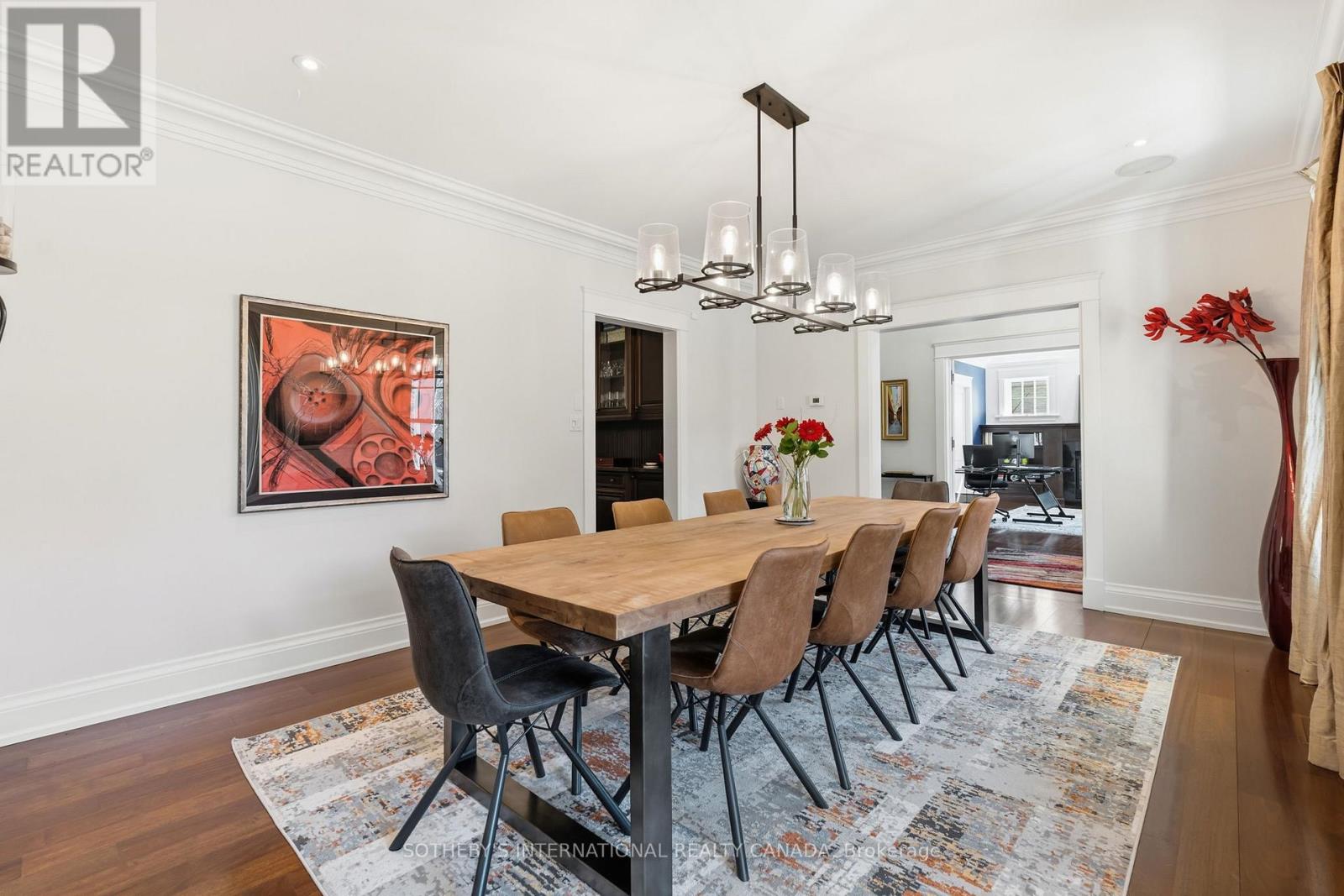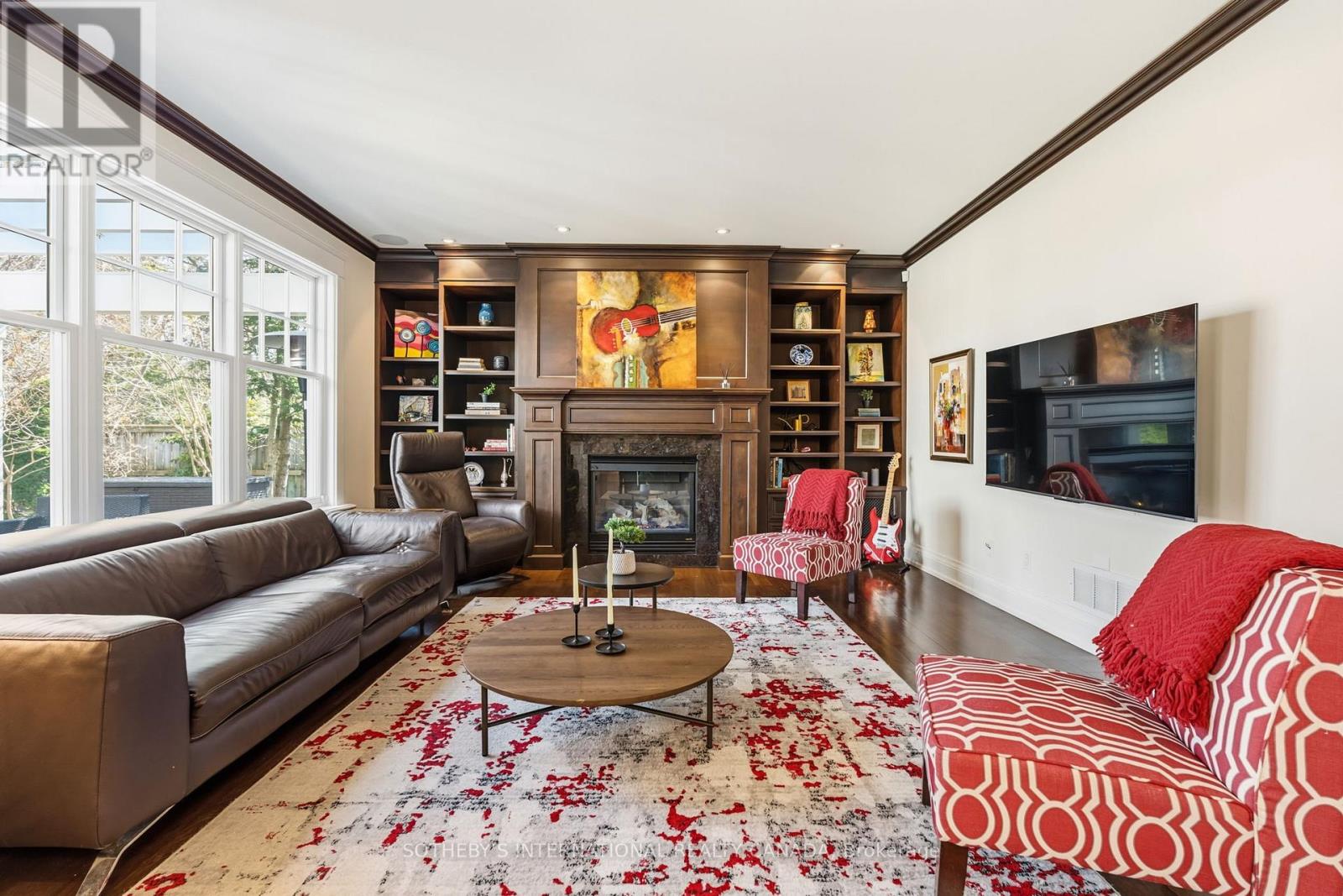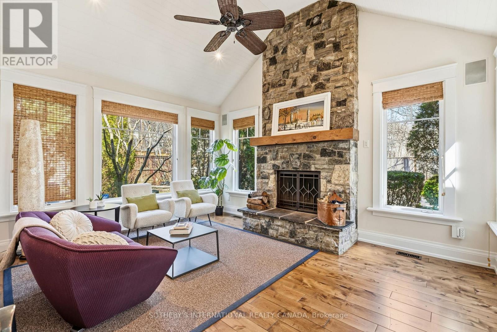 Elegant Cape Cod-inspired masterpiece set on a quiet cul-de-sac in prestigious South West Oakville. Ideally situated just steps from Lake Ontario and Appleby College, this residence offers over 6,100 sq. ft. of sophisticated living space featuring 4+1 bedrooms and 6 bathrooms. The grand two-story center-hall entrance is accented by rich Brazilian hardwood floors. The expansive chef's kitchen is complete with a large island, 6-burner Wolf stove-top, a sub zero fridge and sub-zero fridge/freezer drawers in the island. Large double doors, leading to the manicured backyard, flood the kitchen and breakfast nook with natural light. Designed for seamless entertaining, the main level features a formal dining room serviced by a butler's pantry and an inviting living room anchored by a cozy fireplace. Retreat to the serene Muskoka Room, boasting a wood-burning fireplace and tranquil views of the resort-style backyard. The main floor is completed by a side entrance, a functional laundry/craft room and a 2-piece powder room. This level has direct access to the 2 car garage with 2 EV charging stations. The upper level hosts a luxurious primary retreat with dual walk-in closets and a spa-inspired ensuite. Three additional generous bedrooms each feature private ensuites and walk-in closets. You won't want to miss the large bedroom over the garage that makes for the perfect teen retreat. The lower level is an entertainer's dream, offering a large recreation room with a pool table, a full gym, a guest suite, and a cedar-lined wine cellar. State-of-the-art mechanicals include two hot water tanks, 200 amp power for the home and a sump pump. The professionally landscaped grounds feature 14 zone irrigation system, an inground pool and multiple lounging areas, creating an outdoor oasis. The house is wired with a professional Sonos sound system. Ideally located near top-ranked schools and parks, this turnkey home offers an unparalleled lifestyle in Oakville's most coveted pocket. (id:4555)