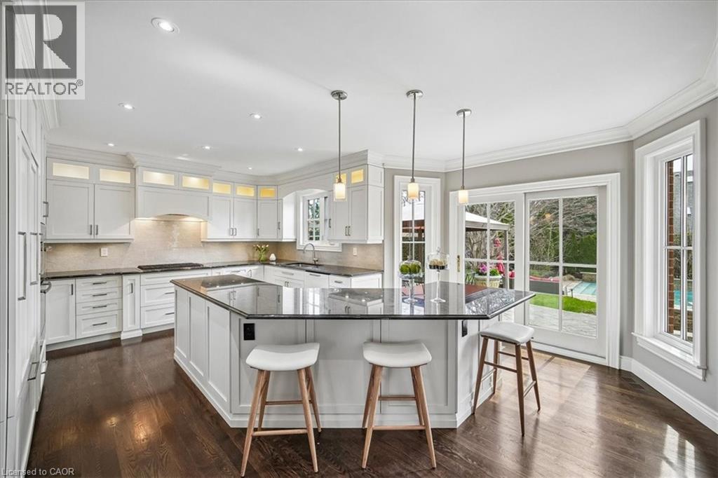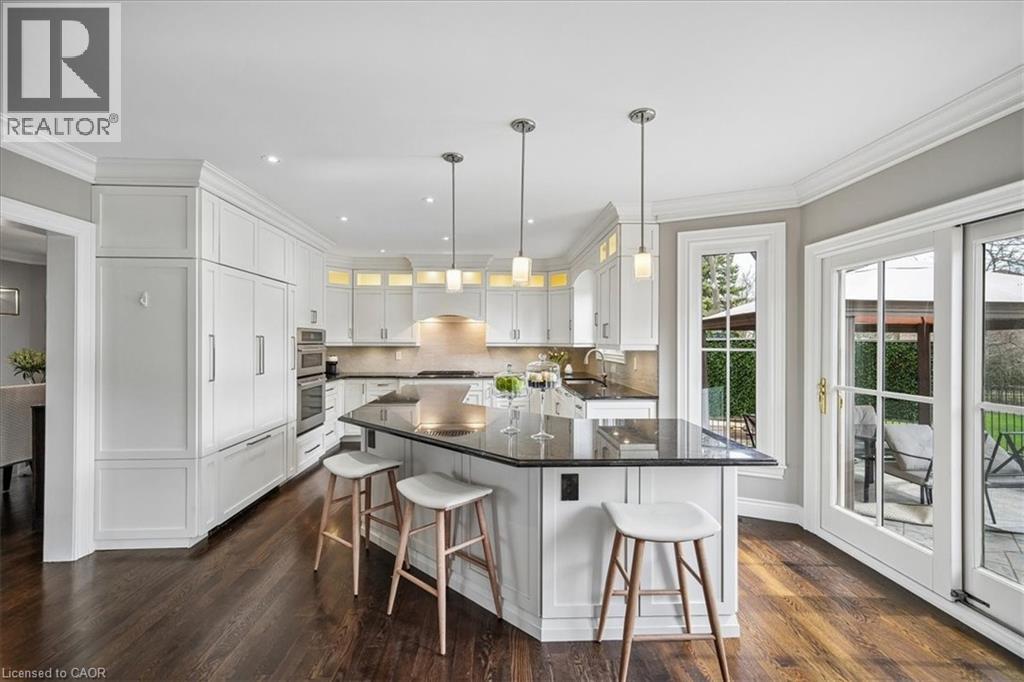 Welcome to 1494 The Links in the Fairway Hills, Glen Abbey Golf Course community. This 4 plus 1-bedroom executive home has been renovated with high end custom finishes throughout. Fabulous kitchen with custom cabinets and center island with built-in Jenn Air appliances including French door refrigerator, double wall oven/convection microwave, 6 burner gas cooktop, Miele Dishwasher, and beverage fridge. Granite counters and linear mosaic marble backsplash. Kitchen is open to family room with fireplace - both overlooking the backyard. Private office with access to backyard and custom white built-in cabinets and glass desk. Updated windows, doors and carriage style garage doors. Finished onsite oak hardwood through the main floor. Spacious living room and separate dining room. Second floor has large primary bedroom with decadent renovated spa like 6-piece ensuite bathroom. Three other spacious bedrooms and fully renovated main bathroom. Both bathrooms have heated floors. Hardwood throughout second floor. Fully finished lower level has walk out/up to backyard, entertainment area, games area, fifth bedroom and 3-piece bathroom with heated floors, custom wine cellar and kitchenette. Perfect for nanny or in-law suite. Tons of storage! Backyard with heated salt-water pool, cabana, putting green, and pergola. Professional landscaping and hardscaping in front and rear yards. Perfect move in ready family home. (id:4555)
