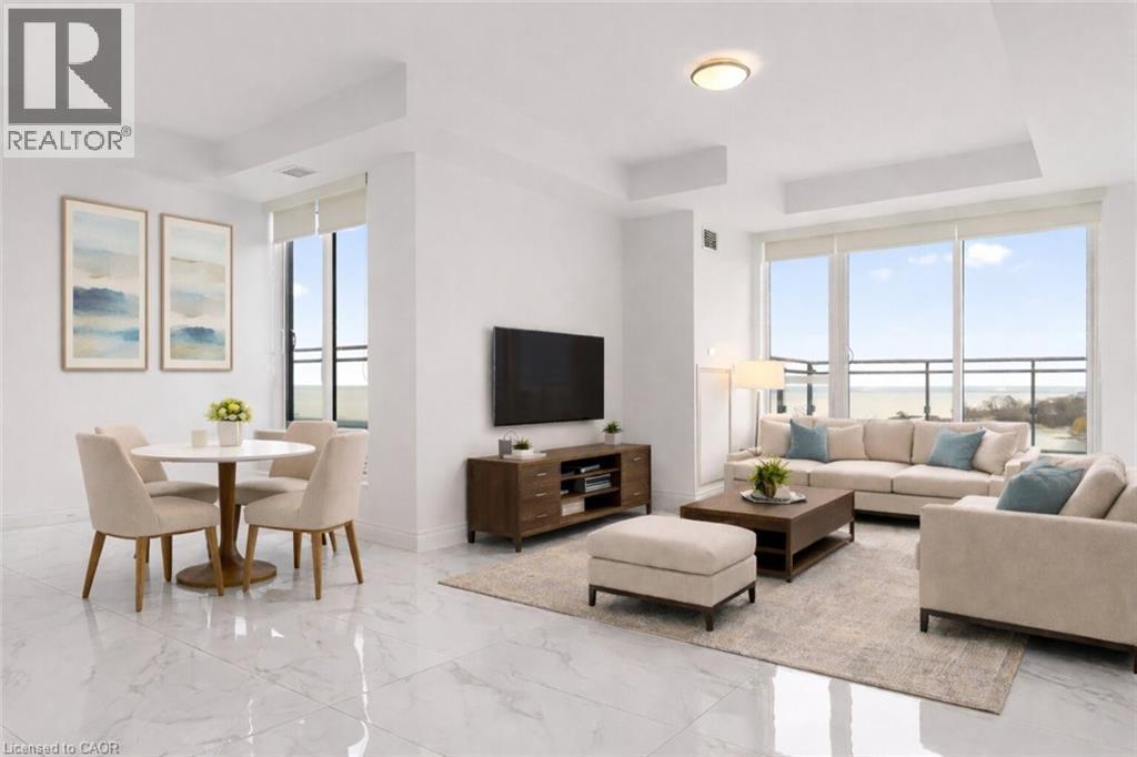 Elevate your lifestyle to unprecedented heights in this exquisite penthouse sanctuary, where sophisticated urban living meets breathtaking natural splendor. This remarkable three-bedroom, three-and-a-half-bathroom residence spans an impressive 2,708 square feet of meticulously crafted living space, designed for the most discerning homeowner. The southwest-facing orientation bathes the interior in golden light while showcasing panoramic vistas of the majestic escarpment and the endless expanse of Lake Ontario. The open-concept kitchen, adorned with lustrous new porcelain tile, features a striking island that serves as the culinary centerpiece, seamlessly connecting to the breakfast nook and intimate sitting area—a perfect orchestration of form and function. The thoughtfully designed split floor plan ensures privacy, with the primary bedroom suite positioned away from guest accommodations. Guest suites boast their own private ensuite and generous walk-in closets, creating a personal retreat. Throughout the residence, rich hardwood flooring adds warmth and timeless elegance. Step onto the spectacular wrap-around balcony accessible through multiple walkouts, complete with a BBQ gas line for personal grilling. The building exemplifies luxury living with resort-style amenities including a sparkling pool, tranquil sitting areas, fully equipped fitness center, rejuvenating whirlpool, sophisticated social lounge, and convenient guest suite. This penthouse represents the pinnacle of Oakville living, where every sunrise and sunset promises new possibilities. (id:4555)