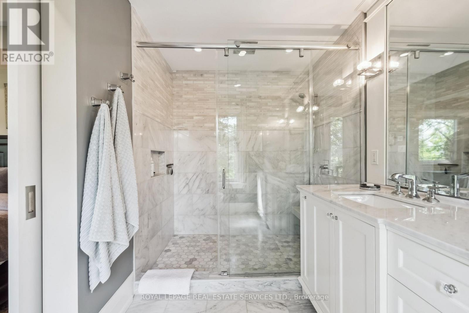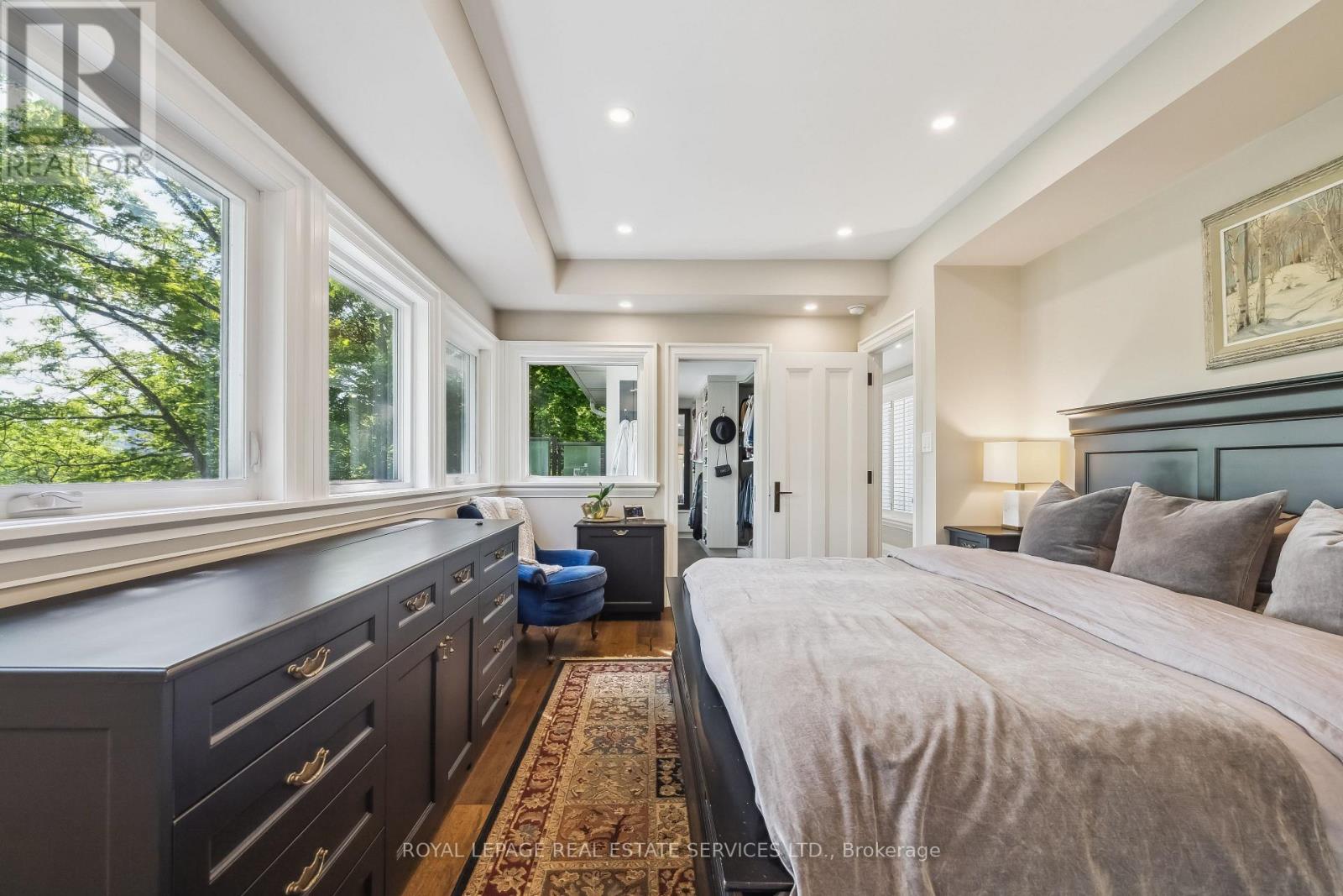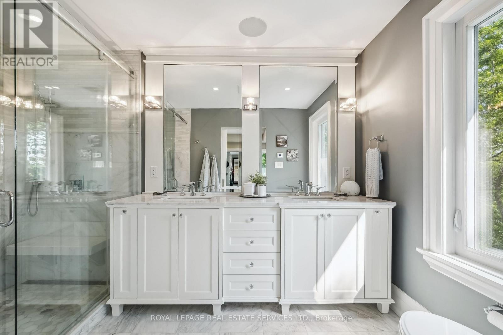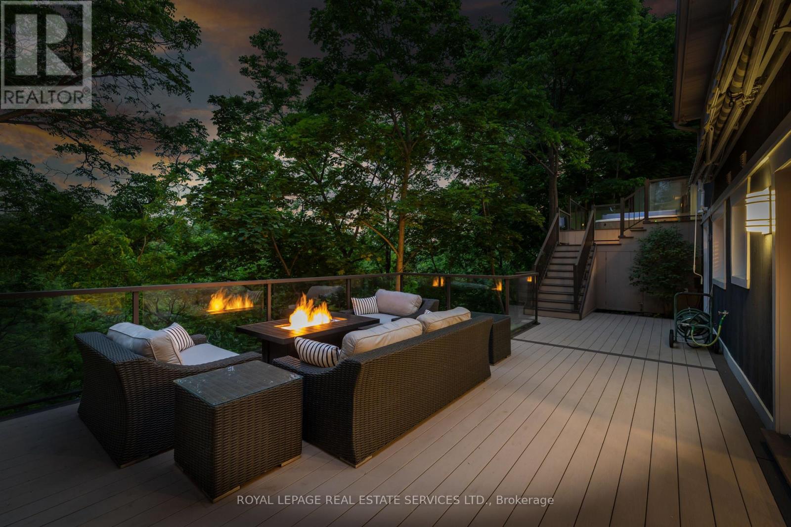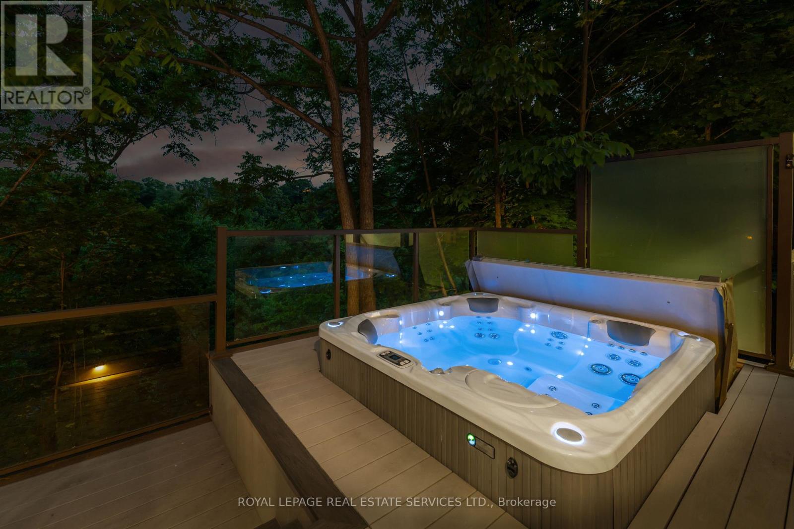 Private, elevated, and unlike anything else in Old Oakville - A true four-season outdoor retreat, your private playground for the outdoor enthusiast-where each day invites skating, paddling, kayaking, hiking, fishing, boating and cross-country skiing, alongside wildlife watching and refined al fresco dining, embracing nature in all its seasons. This lofted waterfront residence commands breathtaking views and unmatched privacy along the tranquil 16 Mile Creek. A testament to craftsmanship and design, this waterfront retreat boasts exclusive riparian rights and a private dock, inviting you to embrace the beauty of Oakville's scenic waterways year-round. .A meticulous 2016 renovation elevated this residence with rich hand-scraped oak floors, solid wood doors, custom millwork, and elegant tray ceilings. The sprawling 1,700 sq. ft. premium Wolf PVC deck includes a hot tub oasis, integrated fire table, and motorized awnings, leading to a dock with a kayak launch, swim ladder, and floating dock. Glass-encased staircases on helical piers deliver striking architectural presence and unbroken sight lines to the creek. Inside, sophistication defines every detail. Floor-to-ceiling windows in the living room frame stunning ravine views and dramatic sunsets, while a gas fireplace with a live-edge mantel adds warmth. The chef's kitchen impresses with a leathered Taj Mahal quartzite island, Wolf and Miele appliances, and an integrated Sub-Zero fridge. Heated floors run throughout, including in the spa-like primary ensuite with marble floors, a rain shower, and double vanity. The lower level offers a linear fireplace, built-in bar, and walkout to the deck. A concrete-lined storage room playfully known as the Bomb Shelter provides additional functionality. Blending natural beauty, refined design, and year-round outdoor living, this one-of-a-kind property is just steps to downtown Oakville and the GO Train offering luxury, serenity, and convenience in equal measure. (id:4555)