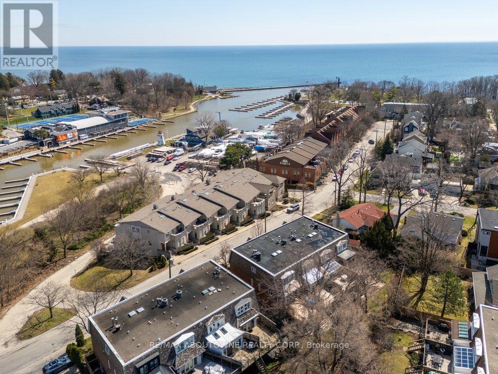 PRIME SOUTH OAKVILLE LAKESIDE LIVING. Nestled in an exclusive enclave of townhomes known as The Moorings, this elegant executive freehold end-unit offers refined multi-level living just steps from Lake Ontario. Boasting approximately 1,920 sq. ft. above grade, this beautifully appointed home features two spacious bedrooms, each with its own private ensuite complete with heated floors. The primary retreat impresses with a generous walk-through closet and a luxurious 5-piece ensuite, while the second bedroom offers a walk-in closet and 4-piece ensuite. Laundry located on the second level. The stunning living room showcases soaring 12'7" ceilings, a cozy gas fireplace, and picturesque views of Sixteen Mile Creek and the marina. Designed for both comfort and entertaining, the open-concept kitchen and family room feature a custom designer kitchen with granite countertops, stainless steel appliances, and a walk-out to a private deck. Step outside to your own serene retreat-this private deck backs onto lush greenery, creating a peaceful oasis alive with a variety of birds and local wildlife, offering a truly tranquil setting to relax, unwind, and enjoy nature. Additional highlights include hardwood flooring and crown moulding throughout the main level, a finished basement with a second gas fireplace, charming upper foyer storage, and a rare two-car garage with inside entry. Newer roof and windows. Enjoy an unparalleled lifestyle just moments from Tannery Park, the vibrant downtown core, boutique shopping, fine dining, the Oakville Public Library, and the Oakville Centre for the Performing Arts. Convenient access to the GO Station and major highways ensures effortless commuting. Seasonal lane clearing fee: (Nov-Mar) $229 (2025). (id:4555)