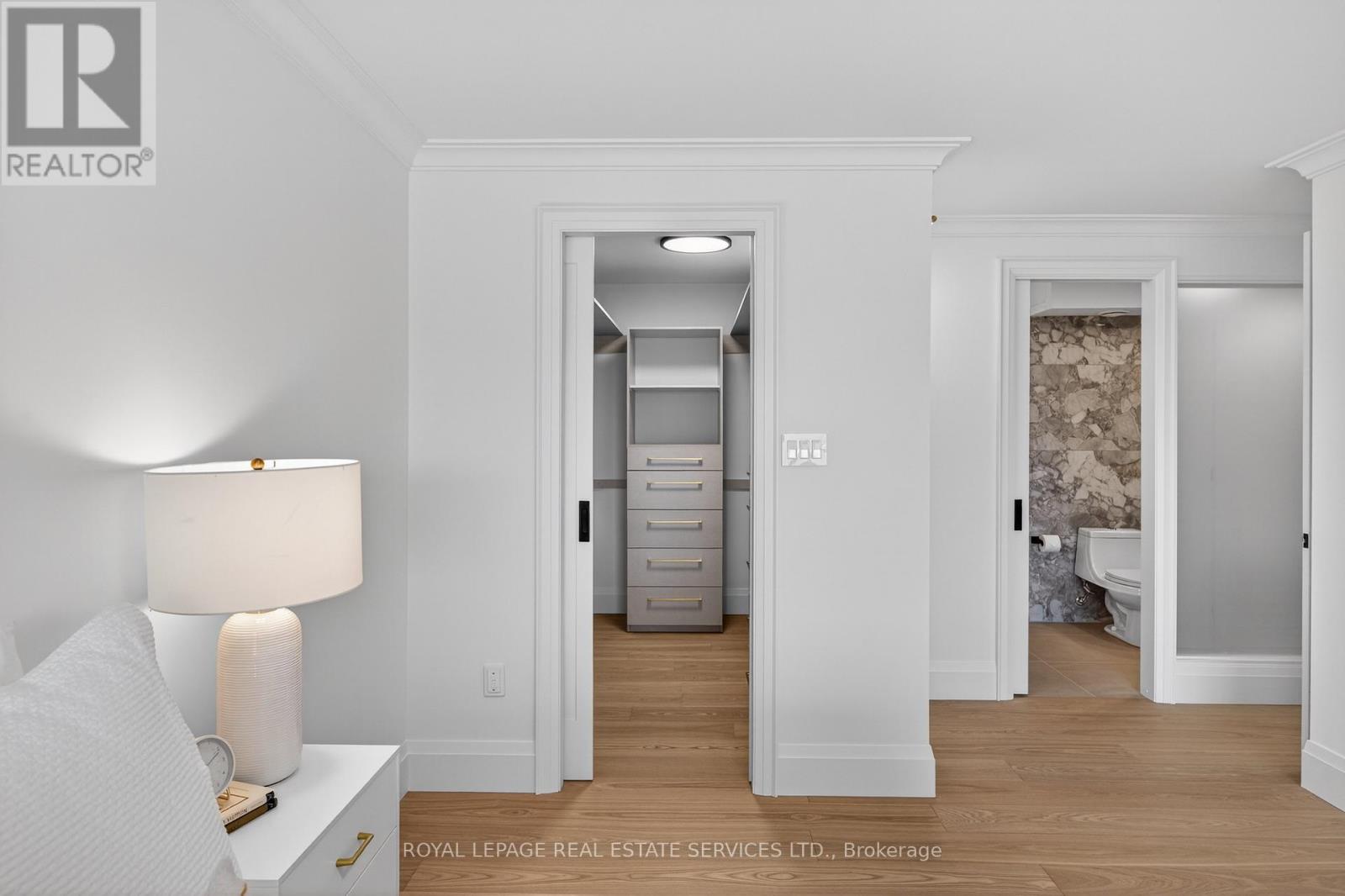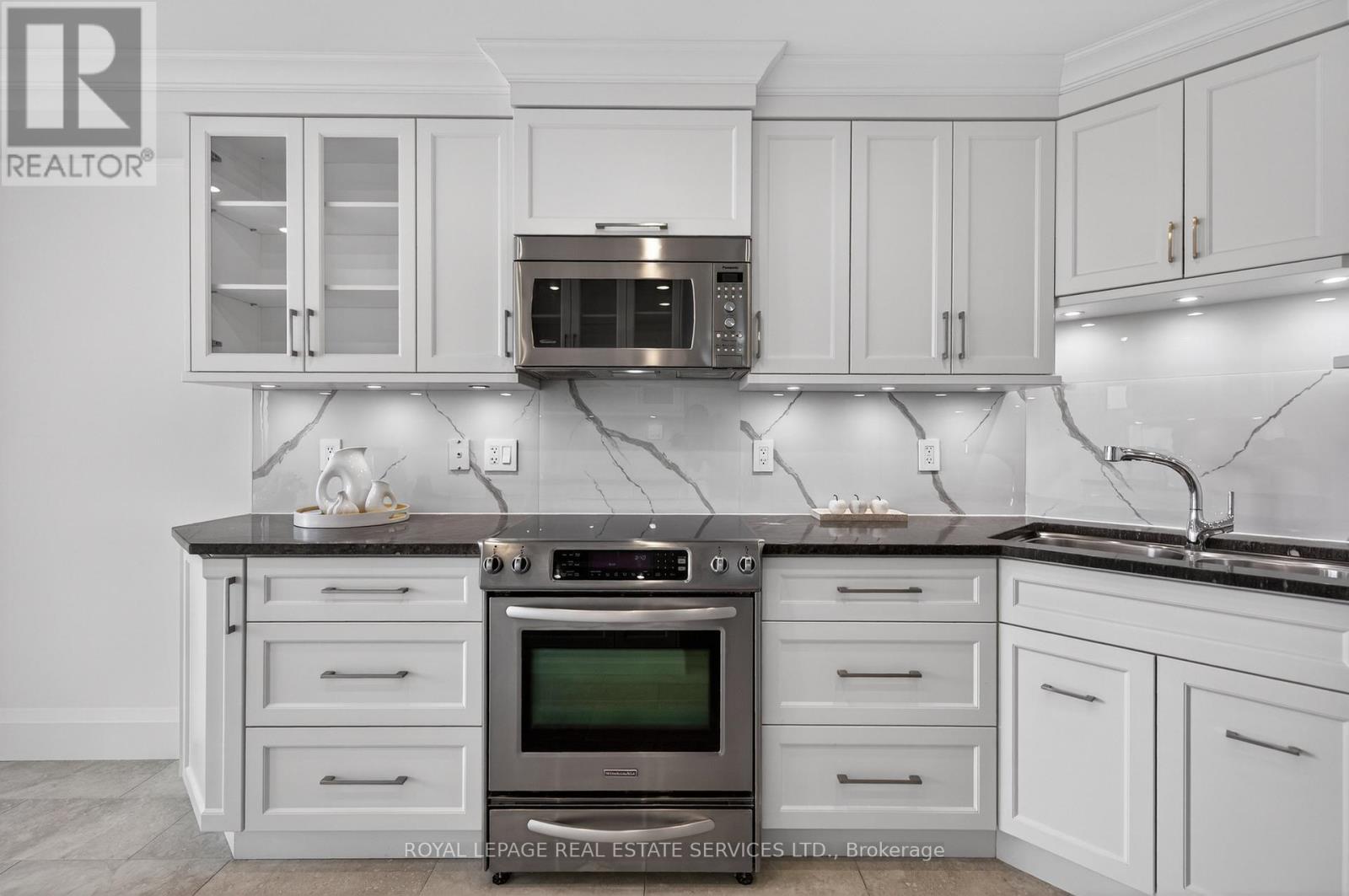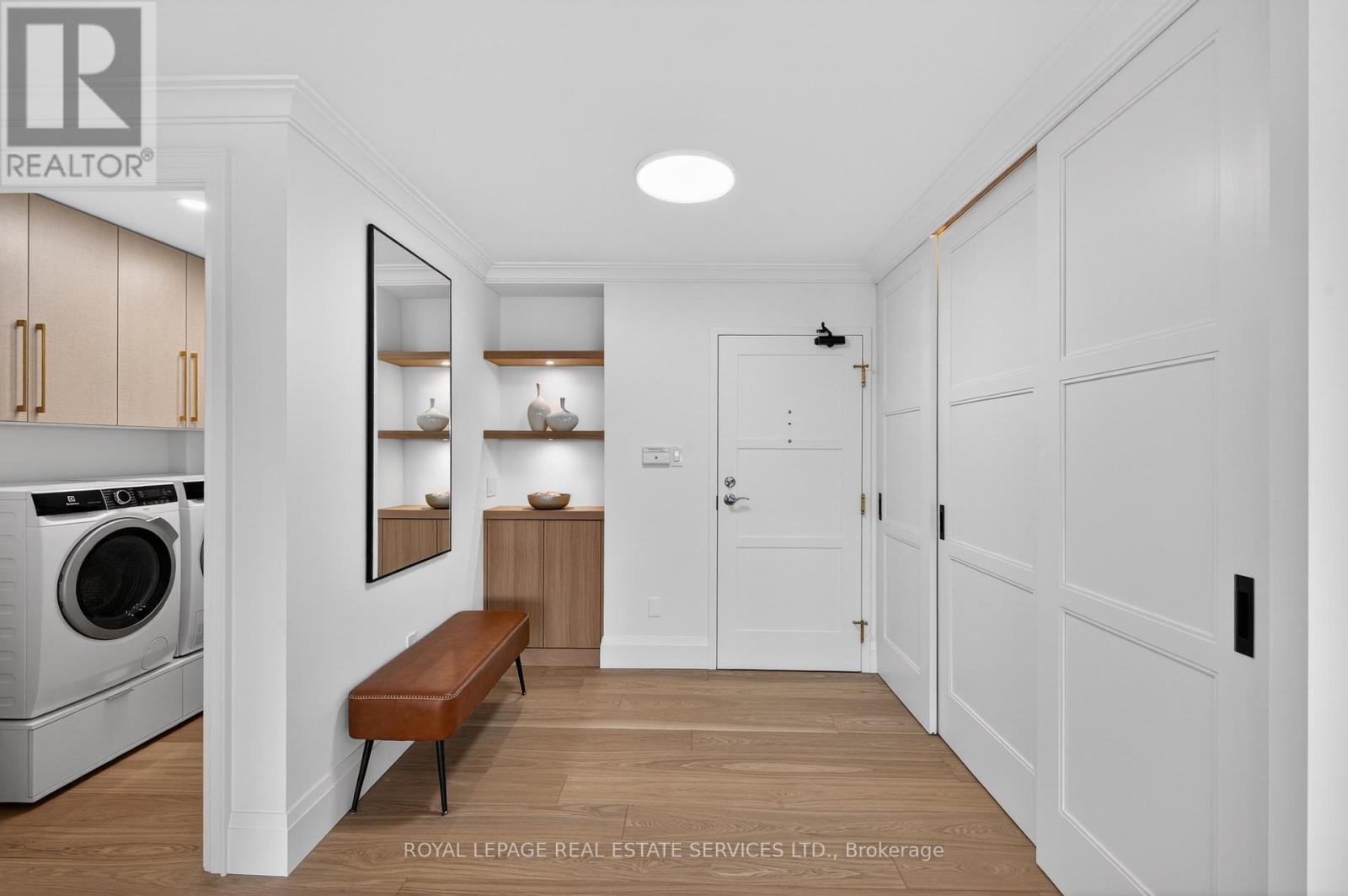 Experience the best of living at #403 - 2170 Marine Drive. Completely reimagined through a comprehensive renovation, this luxury suite boasts a redesigned layout to enhance flow & functionality, with impeccable attention to detail. Ceilings have been raised to maximize height in key areas, creating a bright, open & airy feel rarely found in similar units. Significant upgrades include built-in storage solutions complemented by high-end quality finishes, custom millwork & designer fixtures throughout. Finished with 7.5" Canadian ash hardwood flooring, smooth ceilings, crown moulding, custom 84" doors & pot lighting. Both bathrooms have been reconfigured with upgraded plumbing & electrical, quartz counters, porcelain tile floors & sleek pocket doors. The foyer offers a large closet, walk-in storage room with custom shelving & stylish niche. The living room showcases a custom entertainment unit with TV niche & Dimplex electric fireplace, floor-to-ceiling windows & walk-out to the balcony. The kitchen is equipped with white shaker cabinetry, granite counters, porcelain backsplash & stainless steel appliances. The primary suite features a customized walkin closet & raised sitting area. The second bedroom offers a custom builtin wardrobe & balcony walk-out. Additional highlights include a laundry room with custom cabinetry, sink, quartz counter, new washer/dryer & upgraded quiet ceiling fan. Ennisclare II on the Lake offers exceptional amenities: gated with 24-hour security, indoor pool, exercise rooms, clubhouse, party rooms, billiards, tennis, workshop, outdoor seating, visitor parking & so much more. Situated on 5 acres of waterfront in Bronte Village, steps to Bronte Harbour, waterfront parks, trails, dining & shopping. Smoke-free community & dogs not permitted. Includes 1 parking space & exclusive locker. A thoughtfully crafted one-of-a-kind residence! VIEW THE PROPERTY FEATURES PAGE FOR MORE DETAILS & 3D IGUIDE HOME TOUR FOR MORE PHOTOS, FLOOR PLAN, VIDEO & BROCHUR (id:4555)