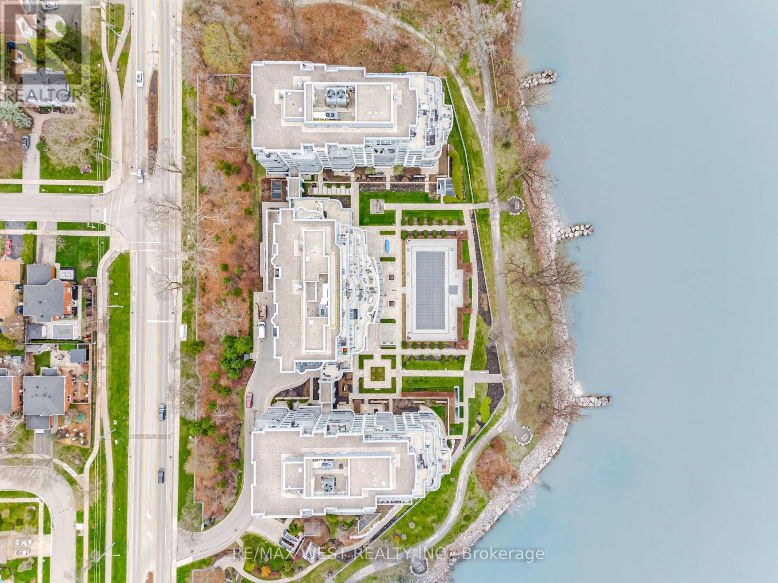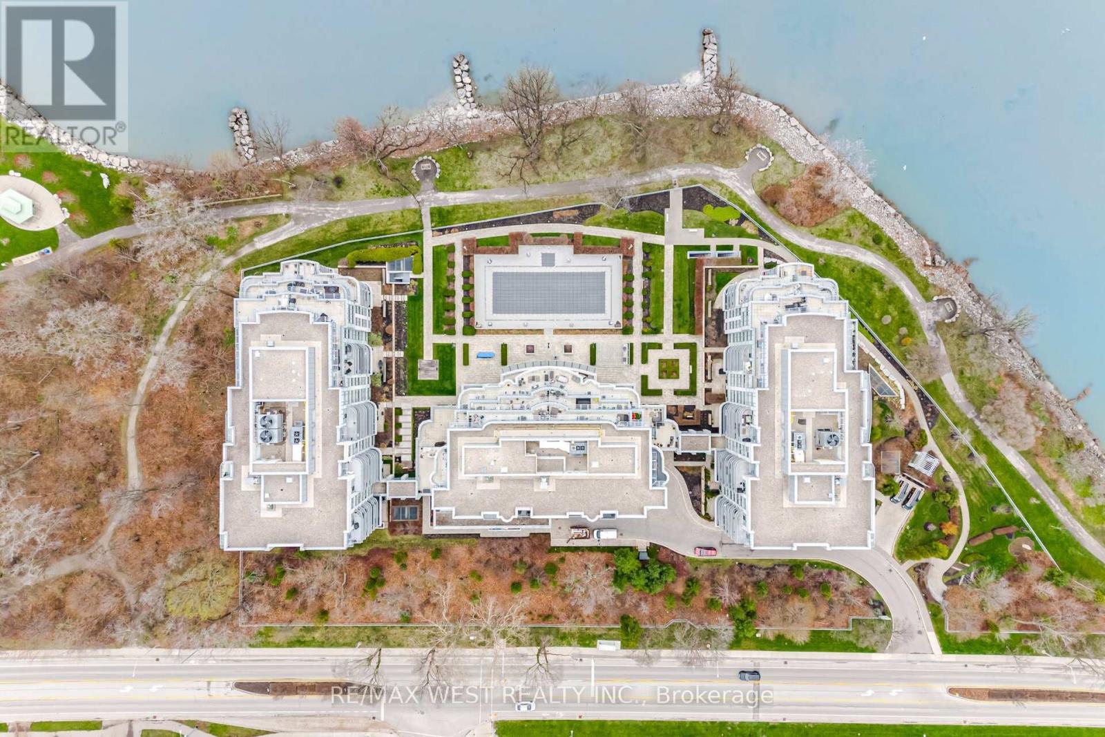 Welcome to the prestigious BluWater; where lakeside living is not simply a lifestyle, but a daily escape. Set on the highest floor in the building, this rarely offered 2Brdm + Den, 2Bath residence offers nearly 1,200sf of thoughtfully curated living space, designed for those who value both elegance and ease. From the moment you enter, the home unfolds with quiet intention. Expansive principal rooms are framed by floor-to-ceiling windows, inviting in natural light while capturing serene water views that unfold throughout the day. The open-concept living & dining flow effortlessly, creating a space that feels both refined and inviting.The kitchen is a seamless blend of form and function, featuring high-end integrated appliances, European-inspired cabinetry, quartz countertops, and a gas cooktop. The generous den offers flexibility as a home office, reading retreat, or guest space. The primary bedroom serves as a private sanctuary with a walk-in closet and beautifully appointed ensuite, while the second bedroom offers comfort and versatility. Step outside to an expansive private balcony with a gas BBQ hookup, offering a peaceful extension of the living space. Proudly owned by its original owner, this residence reflects a level of care and pride of ownership that is rarely offered. An oversized, conveniently located parking space and dedicated locker add rare functionality. Beyond the residence, BluWater offers a resort-inspired lifestyle with attentive staff, manicured private gardens, outdoor lounges with fireplaces and BBQs, a lap pool and sundeck, spa and sauna, fitness centre, yoga studio, library lounge, elegant party room, and guest suites. Most remarkable of all is the direct, gated access to the shores of Lake Ontario; where morning walks, sunset views, and the quiet luxury of lakeside living become part of your everyday. A rare offering in an exceptional community, where every detail has been considered and every day feels like a retreat. (id:4555)