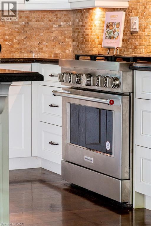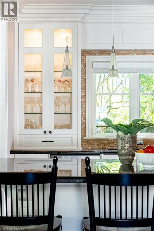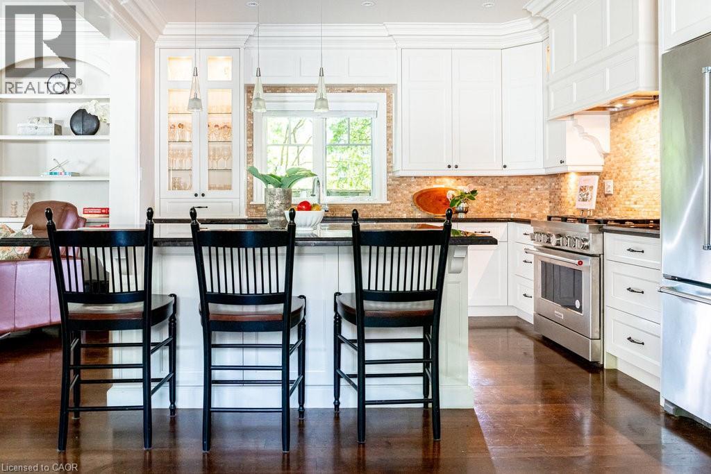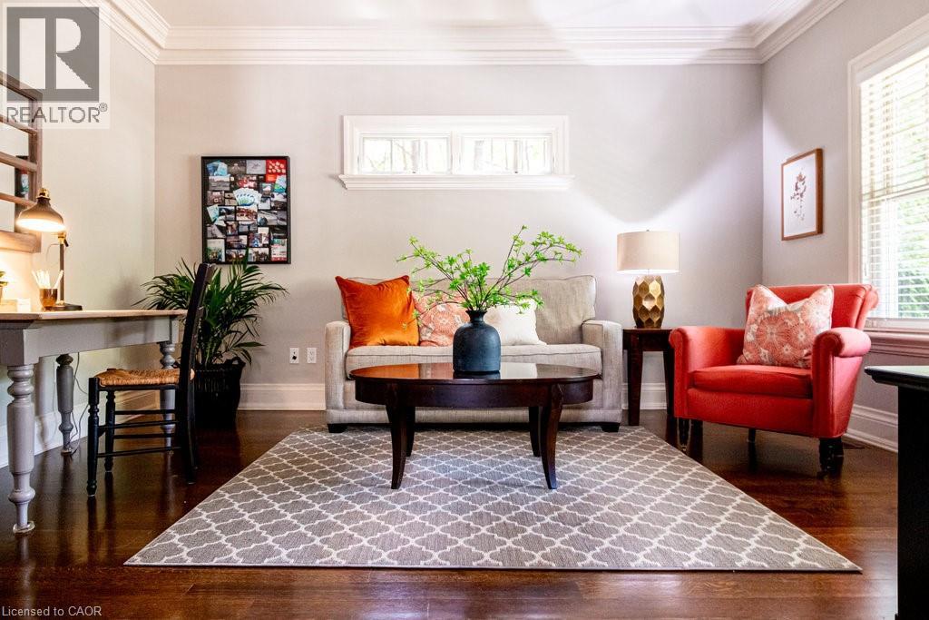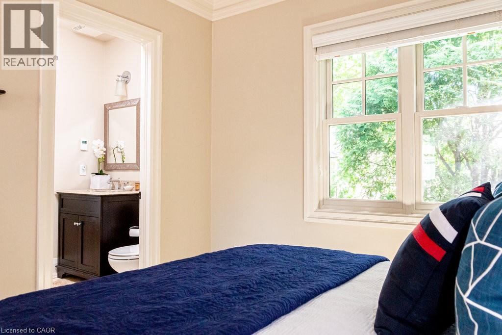 Welcome to 44 Head St—an exceptional residence in the heart of Oakville—just steps to Kerr Village, downtown boutiques, cafés & the lakefront. Here, vibrant walkability meets peaceful, tree-lined charm. Offering nearly 2,200 sq ft above grade + a fully finished 1,015 sq ft lower level, this timeless home blends character with modern comfort. Set behind manicured gardens, dark slate wood siding & crisp white trim frame a welcoming front porch—perfect for morning coffee or evening wine. Inside, 9' ceilings, hardwood floors, crown moulding & high baseboards create an elevated aesthetic. The entertainer’s kitchen features granite countertops, a generous island, professional-grade appliances & abundant storage, flowing seamlessly into bright, open-concept living & dining spaces. A gas fireplace with custom millwork anchors the room, while French doors open to a beautifully landscaped, private rear garden—ideal for relaxing or hosting al fresco. A versatile main-floor room offers flexibility as a home office, den or formal dining room. Upstairs, 3 spacious bedrooms each enjoy their own ensuite with heated floors & walk-in closets—luxury & privacy for all. The lower level with 9' ceilings adds a large family room, 4th bedroom, 3-pc bath & expansive laundry room. Custom built-ins throughout provide exceptional storage. The detached garage includes an EV charger & rare basement storage, while the extra-long driveway accommodates 6 cars. The fully fenced backyard offers a private garden with pretty perennials as well as a stone patio. The unbeatable location places parks, shops, restaurants & the waterfront at your doorstep. Meticulously maintained with thoughtful updates: powder room renovation (2024), driveway resurfaced (2024), exterior freshly stained (2024) & insulation upgraded to R60 (2025). Ideal for empty nesters, downsizers & families alike—this turnkey home is a rare opportunity to experience Oakville’s historic charm at its finest. (id:4555)