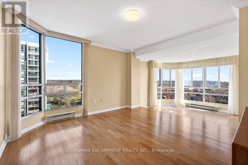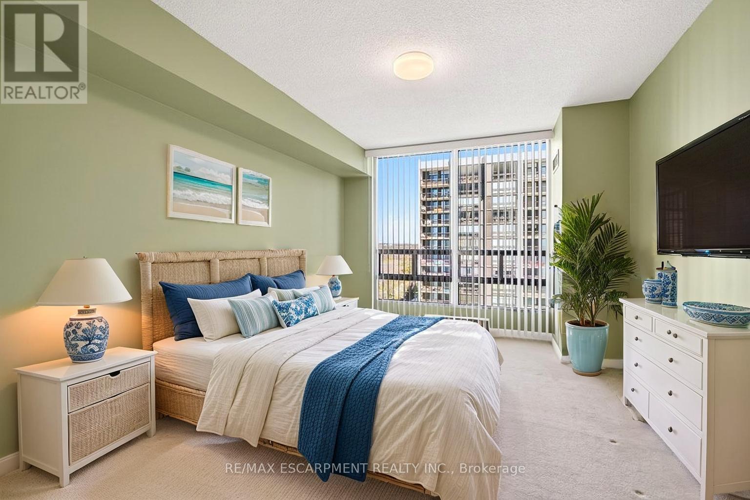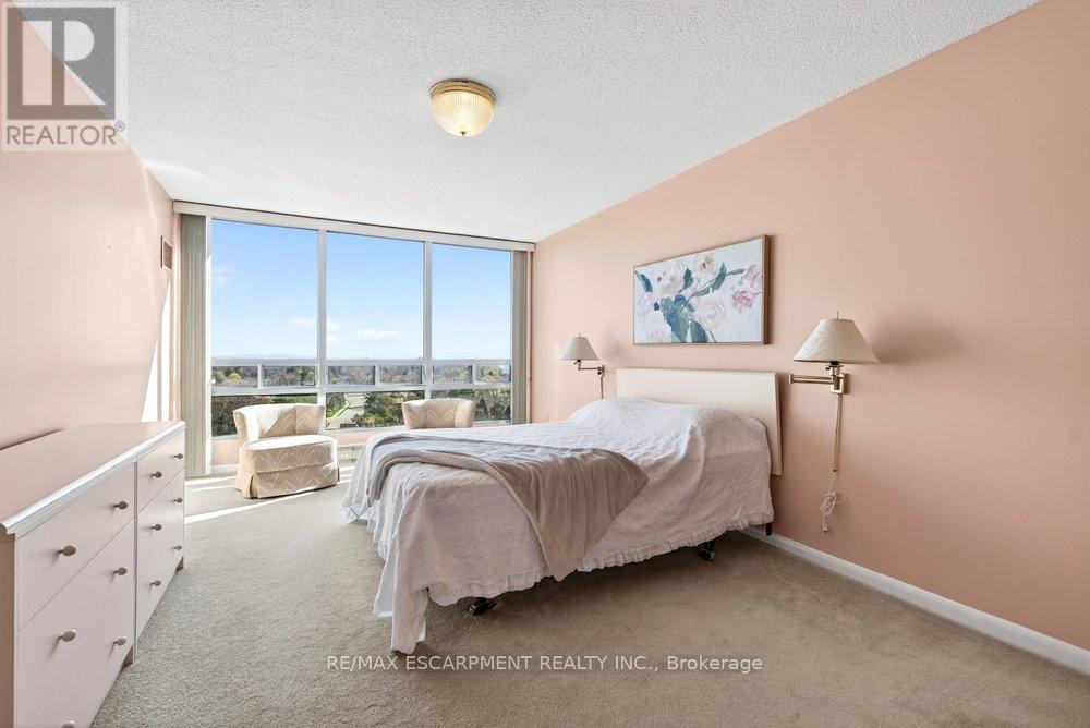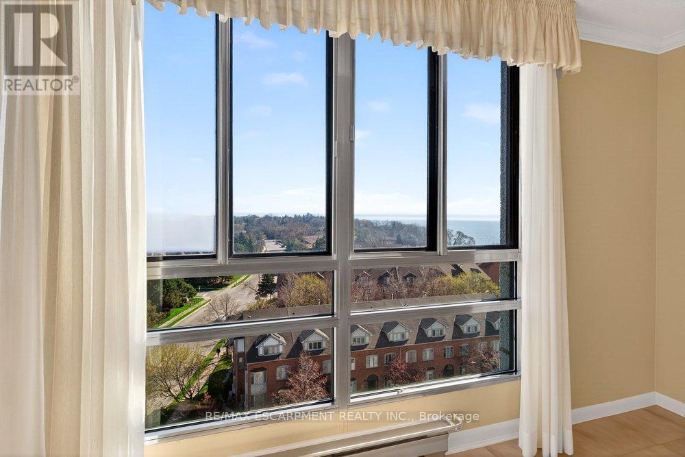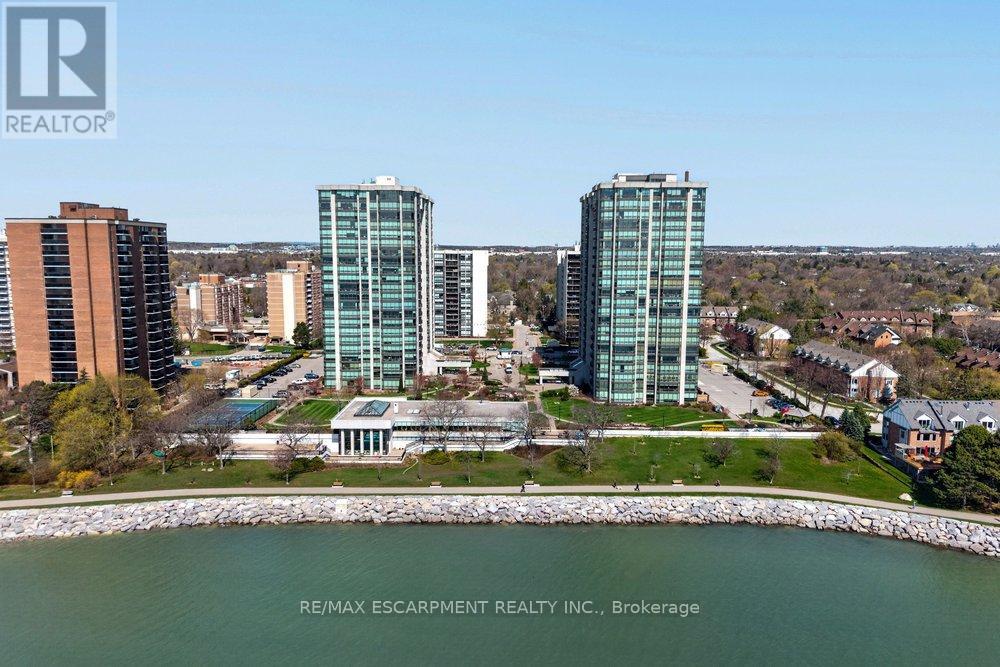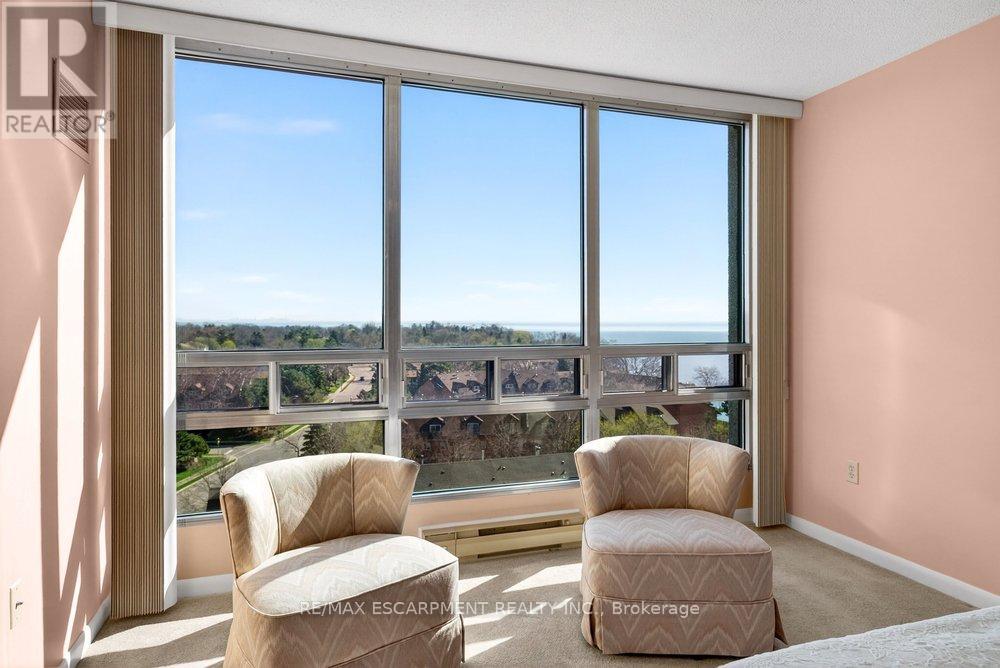 Ennisclare II on the Lake - enjoy lake views of Lake Ontario from this spacious 1,830 sq. ft. 2-bedroom, 2-bath suite with a combined den and solarium. From the moment you arrive to this gated community, the building makes an elegant first impression featuring a grand lobby with soaring ceilings, cascading stained-glass fixtures, and elegant marble columns. Up to the 10th floor, this beautifully laid-out unit offers generous living space and lovely lake views from the front rooms. The welcoming foyer opens to an open-concept dining area and sunken living room, where wall-to-wall windows showcase an expansive view as the lake wraps around the residential area below and curves inward, so on clear days, you can see the CN Tower in the distance and watch the waves roll on the south side from the comfort of your living room sofa or bed! The kitchen offers ample storage and a spacious eat-in area. The bonus room for this layout is the large den and solarium which have been combined to create a versatile, light-filled space. The primary suite features sunny views, a sitting area, a walk-in dressing area with three closets, and an ensuite bathroom with an updated step-in shower. A spacious second bedroom, full main bath, and in-suite laundry add to the convenience. Move in 'as is' or customize to your taste. Include one underground parking space near the entrance (an extra spot may be available to rent, check with the property manager) plus one locker. Residents enjoy access to exceptional amenities at the Ennisclare II Club, including an indoor pool, spa, fitness centre, tennis court, party room, workshop, and serene gardens, waterfront lounge chairs and trail along the lake, all included in the monthly fee. Easy walk over to the Bronte Harbourfront, shops, and restaurants in Bronte Village. (id:4555)