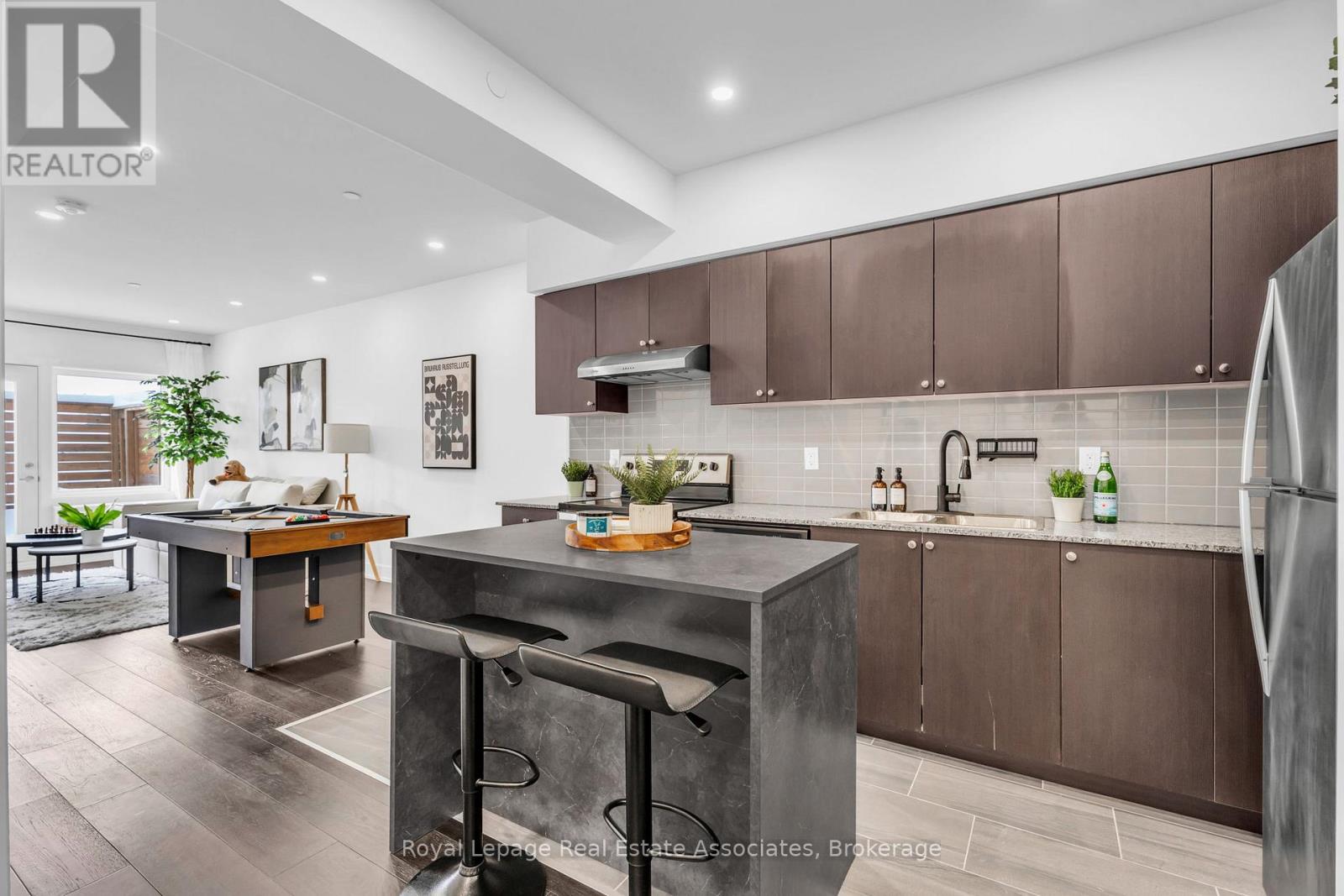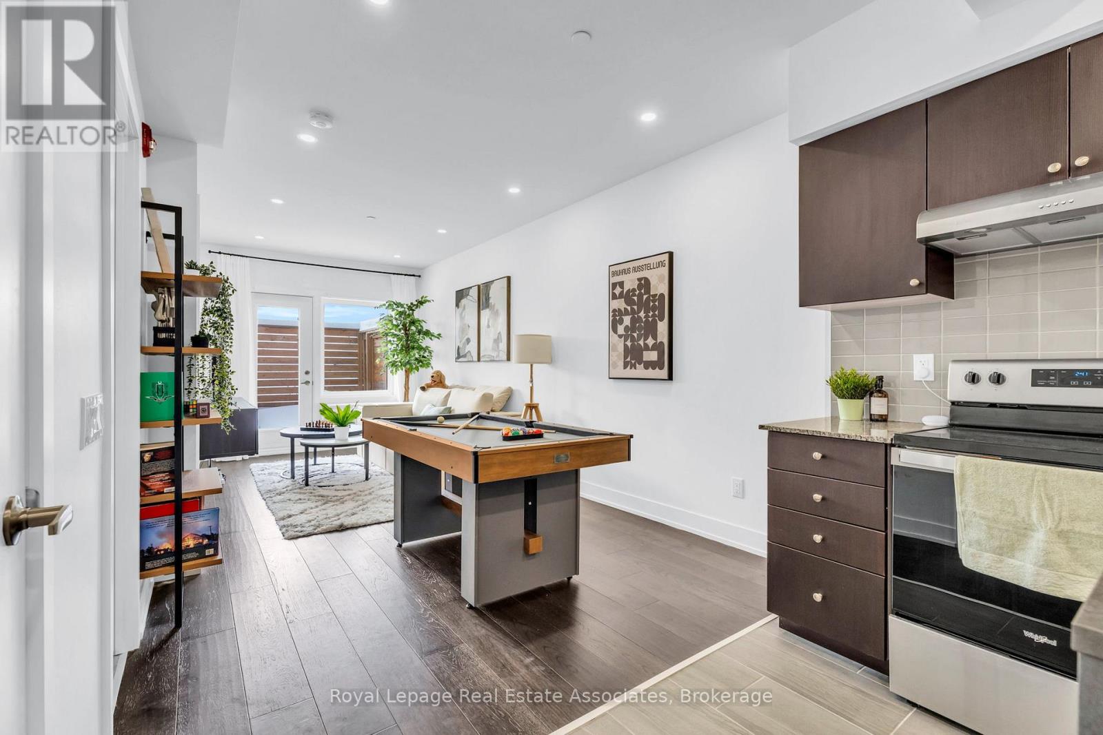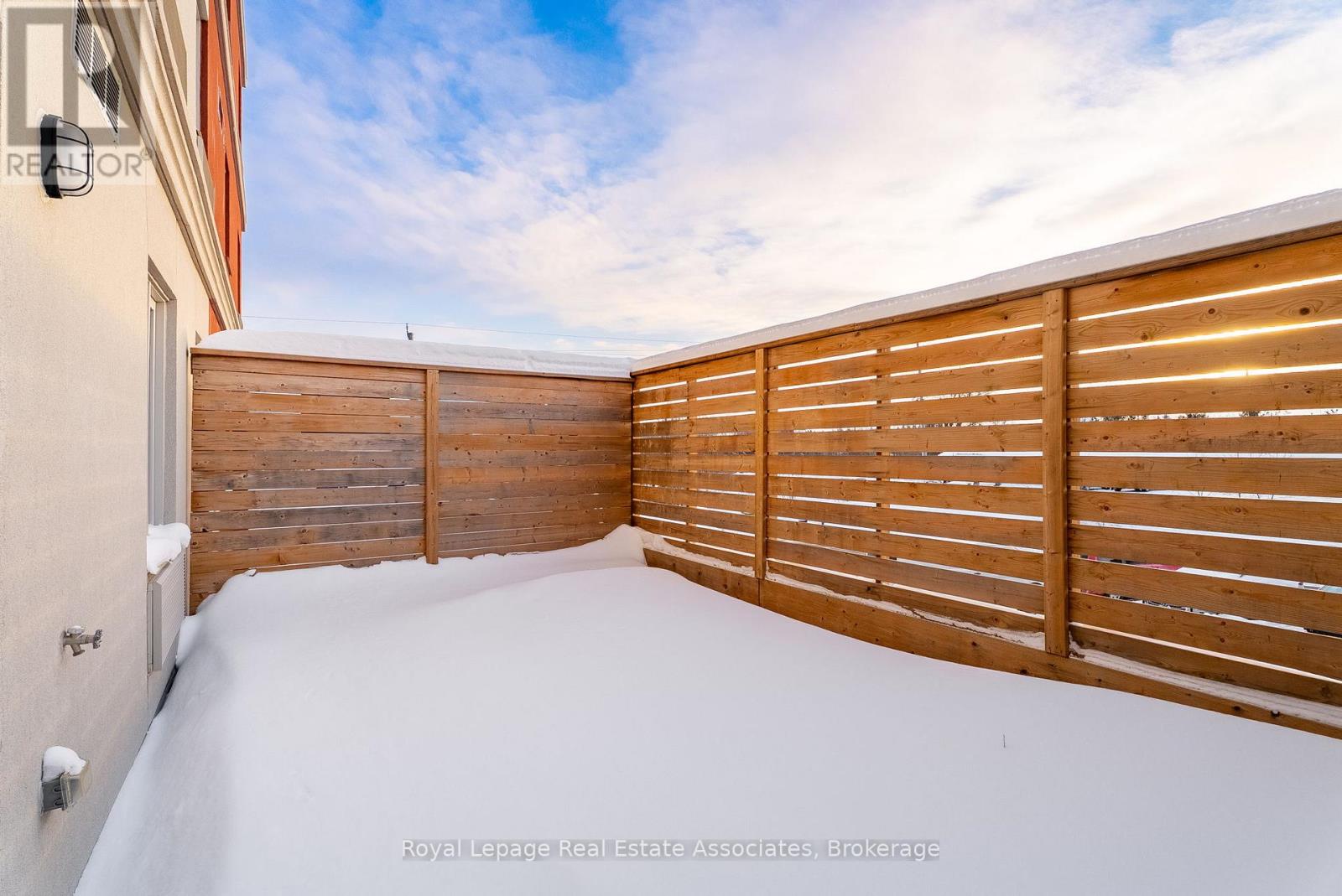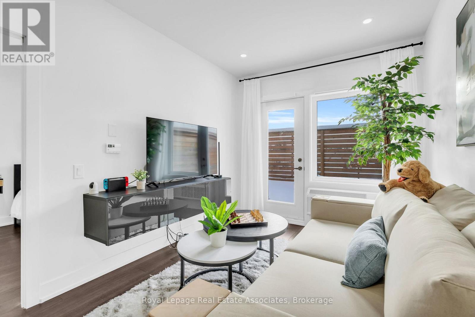 Set just moments from the heart of downtown Orangeville, this one bedroom plus den residence offers a thoughtfully composed balance of modern living and small-town ease. Positioned along Broadway Street and within easy walking distance to cafés, shops, restaurants, and everyday amenities, the home feels both connected and comfortably removed. Inside, the Madison model reveals a well-considered layout where light and proportion guide the experience from room to room. Large windows draw natural light deep into the living space, creating an atmosphere that feels open yet grounded. The flow is effortless, with a dedicated den offering flexibility for a home office, reading nook, or guest space, quietly set apart.The kitchen is clean-lined and contemporary, anchored by elegant porcelain tile flooring and a refined porcelain tile backsplash that bring both durability and understated sophistication. Designed for both function and calm, the space opens naturally to the living and dining areas, ideal for everyday living or effortless entertaining. From here, step outside to a rare and generous 220 square foot private walk-out patio-an extension of the living space that encourages morning coffee outdoors, evening unwinding, or simple moments of fresh air rarely found in condominium living.The bedroom is serene and well-proportioned, offering ample storage and a true sense of retreat at the end of the day. The modern four-piece bathroom is finished with porcelain tile flooring, echoing the home's cohesive design language. In-suite laundry and individually controlled heating and air conditioning in each room ensure comfort is both seamless and precisely tailored.Completing the offering are a private parking space, storage locker, and convenient visitor parking-details that quietly enhance daily life. This residence is ideal for first time homebuyers, downsizers or those seeking a refined, low-maintenance lifestyle just steps from the charm and vitality of downtown Orangeville. (id:4555)