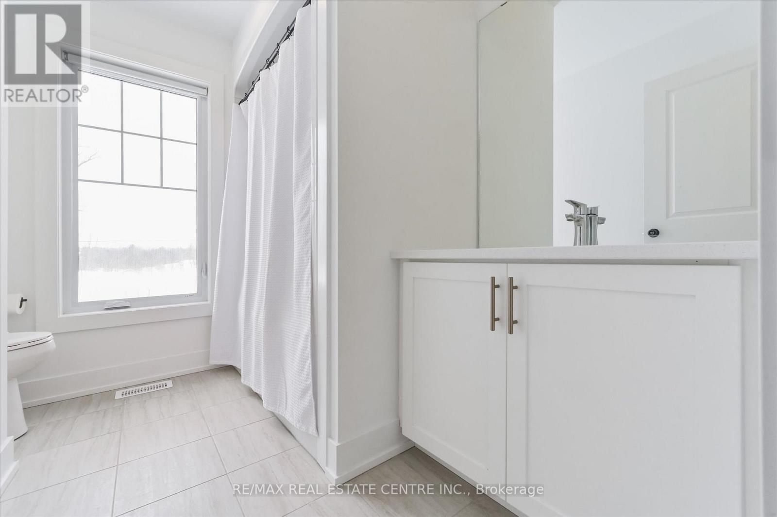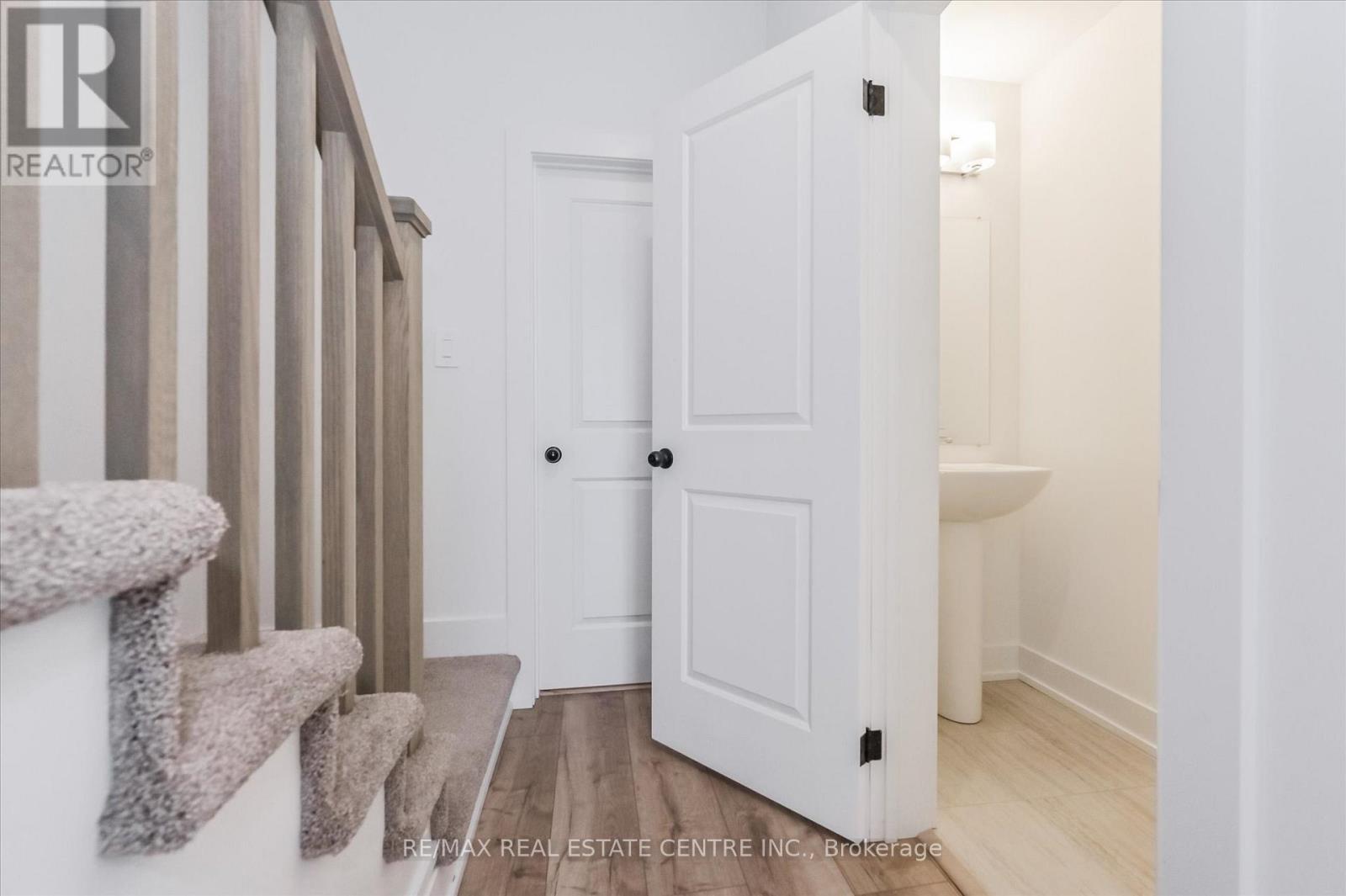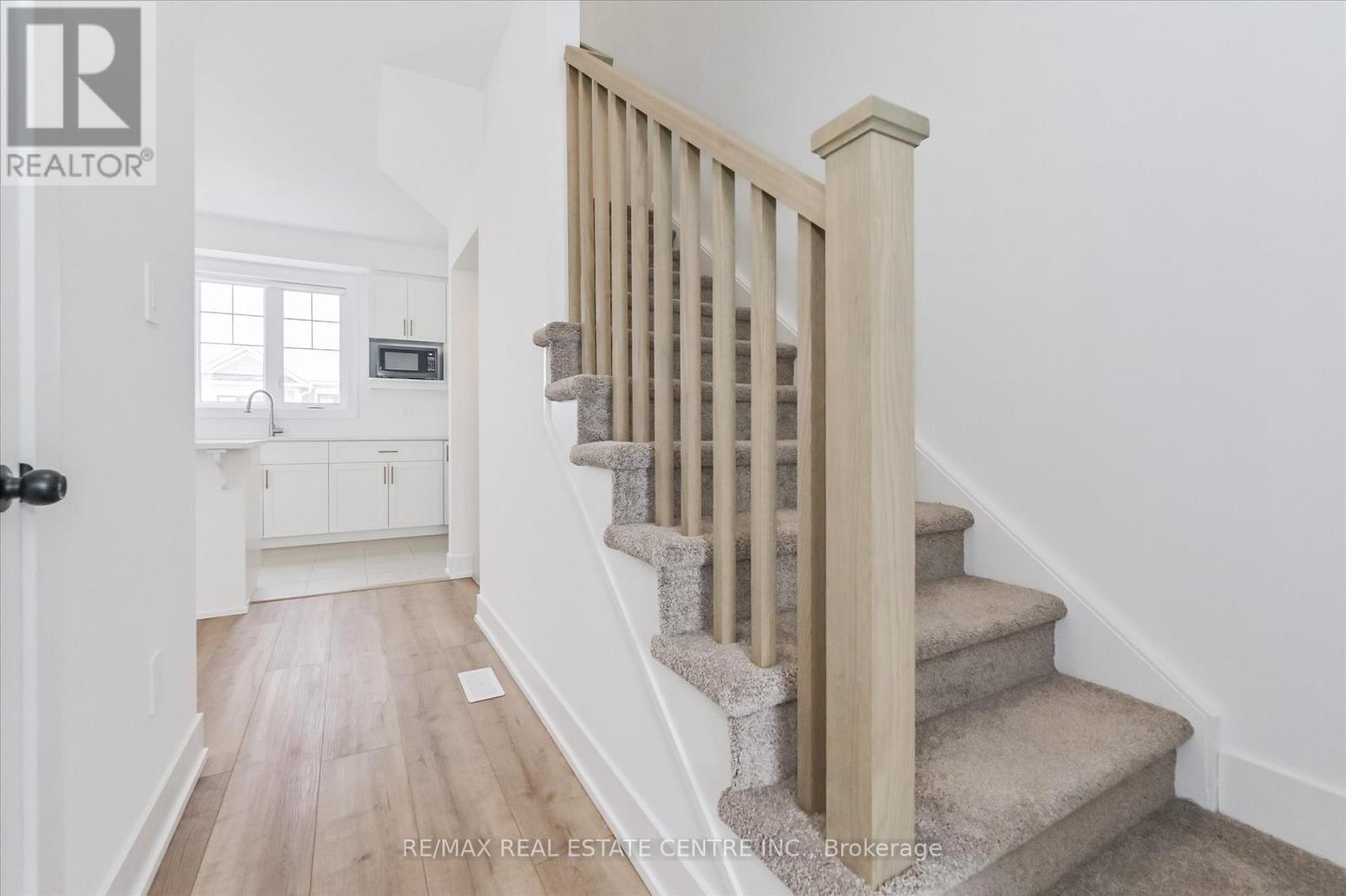 Welcome to this bright & airy modern 3-storey townhome, located in the desirable west end of Orangeville, walking distance to local shopping, walking trails, schools & more. With over 1,700 sq ft of living space and 4 spacious bedrooms for you & your family to enjoy, this 2023 built home offers open concept living at its finest. Walk into a spacious foyer and as you walk down the hall you have convenient access to your garage, and a walk out to a private front porch. As you head upstairs to the second level, you'll be impressed by the abundance of natural light flooding into the open-concept kitchen, featuring an oversized island allowing tons of room for your dinner food prep, with quartz countertops and stainless steel appliances. The dining room has a large sliding door for you to head out to your spacious balcony, perfect for outdoor relaxation & entertaining. This level also includes a large open concept great room, a convenient powder room and laundry area. On the third level, you'll find a spacious primary suite complete with a 3-piece ensuite, a generous walk-in closet, and cozy broadloom. There are three more bedrooms and a full 4-piece main bathroom for your friends and family. Don't miss out on this beautiful home- book your tour today! (id:4555)