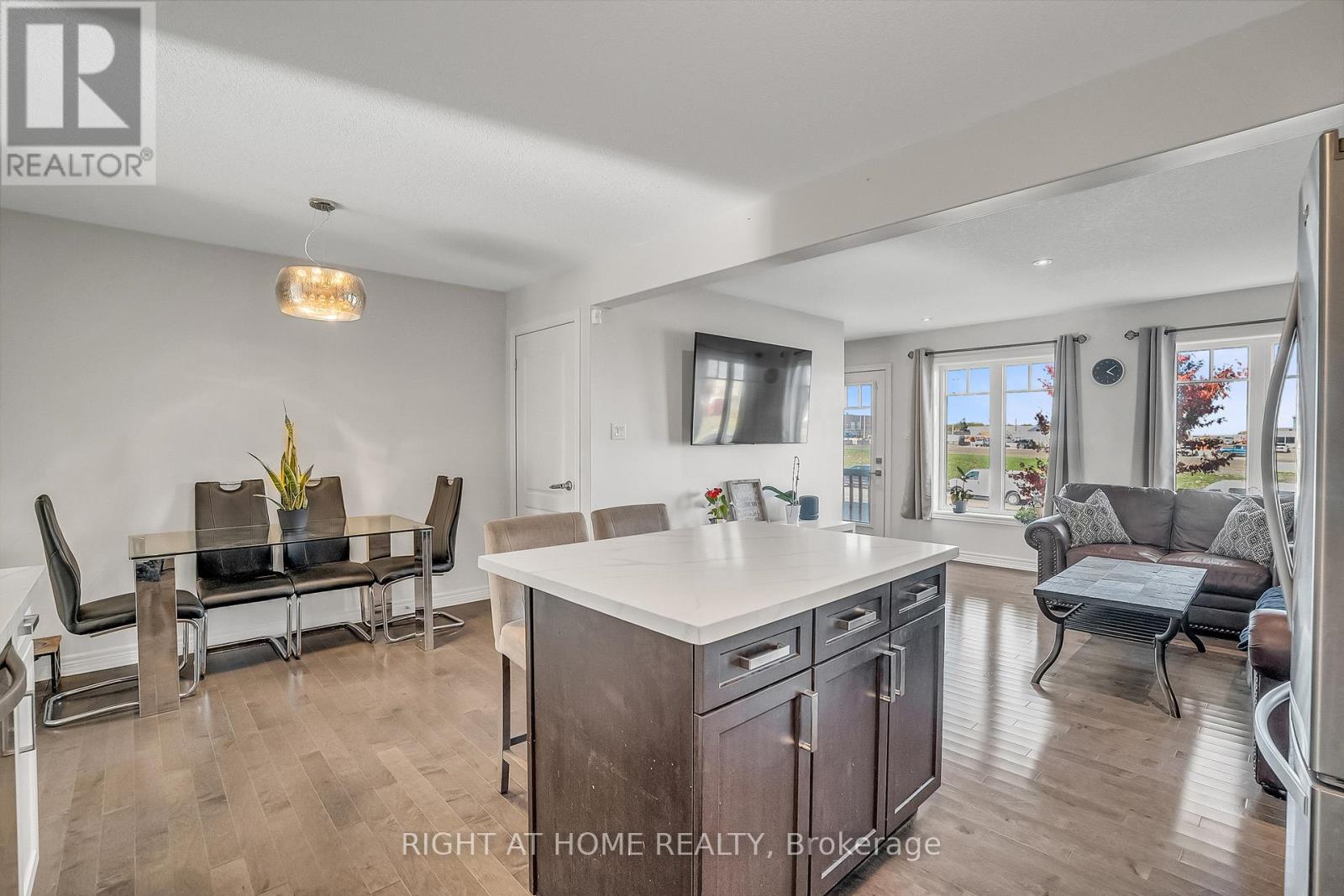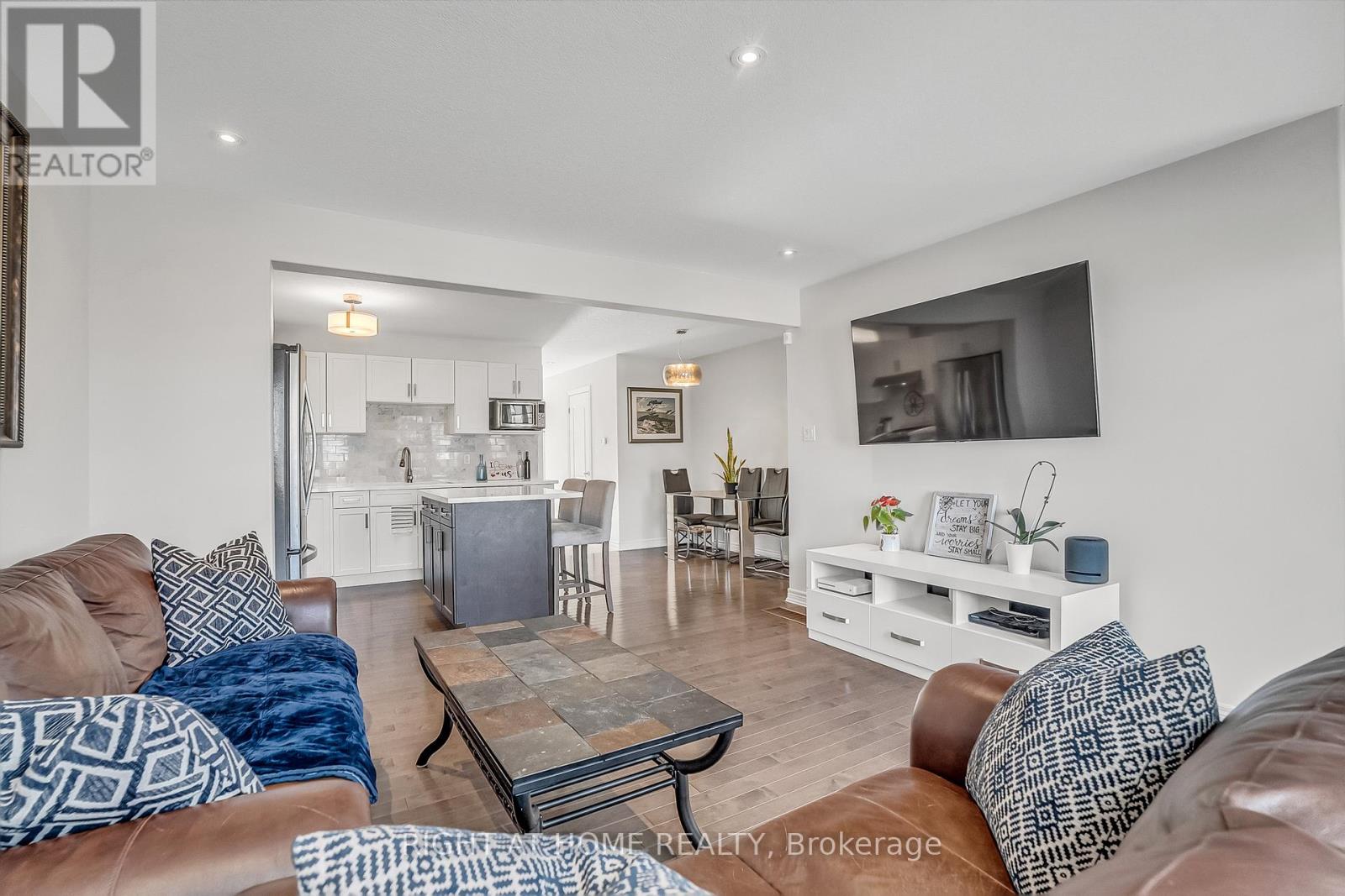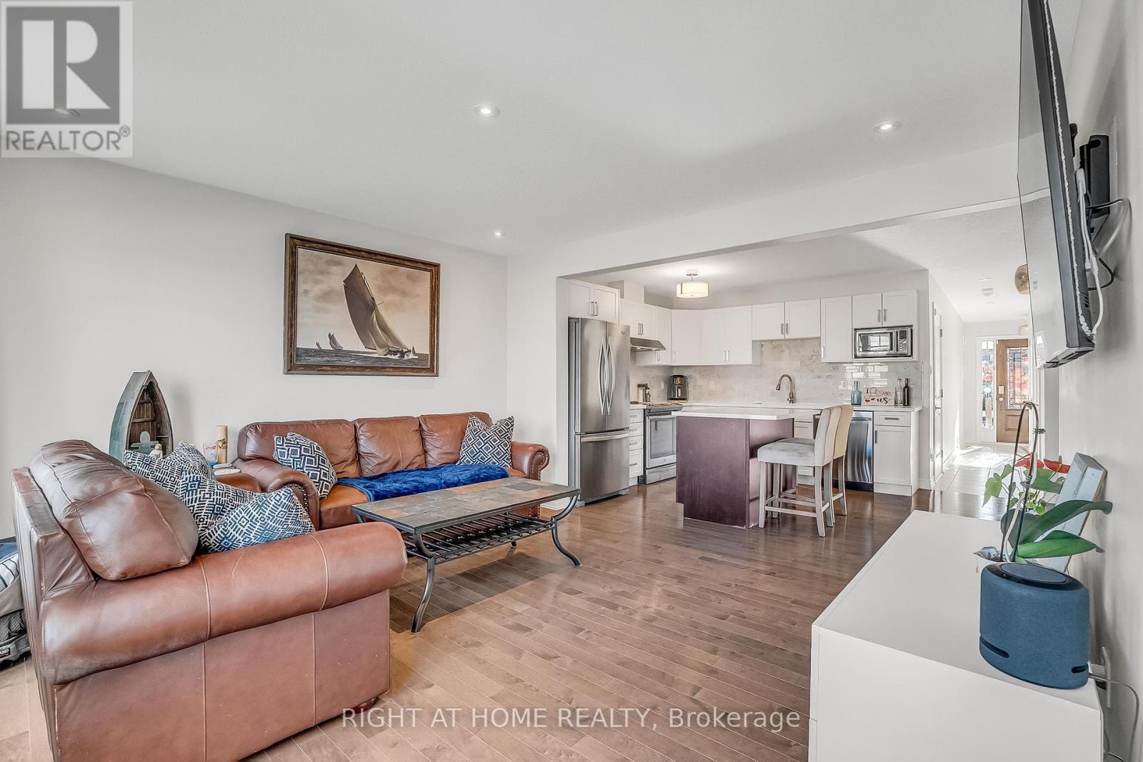 ** WALKOUT BASEMENT ** Welcome to this beautifully upgraded freehold townhouse, perfectly situated on a quiet, family-friendly cul-de-sac. Move-in ready and tastefully finished from top to bottom, this home exudes modern style and comfort. The professionally landscaped front yard creating an inviting first impression. Inside, the open-concept main level showcases a designer kitchen complete with a centre island, quartz countertops, sleek backsplash, and stainless steel appliances. The bright and spacious living area features large windows and a built-in entertainment wall, ideal for relaxing or entertaining. Upstairs offers three generous bedrooms and two bathrooms, including a primary suite with a large closet and private 3-piece ensuite. The finished basement extends the living space with a beautifully finished recreation area and a convenient fourth bathroom. Step outside from the walkout basement to a private, fully fenced backyard with newly laid sod and no rear neighbours perfect for outdoor gatherings. With parking for two vehicles, inside access from the garage, and ample visitor parking nearby, this exceptional home combines comfort, convenience, and a prime location near top-rated schools, parks, and everyday amenities. (id:4555)