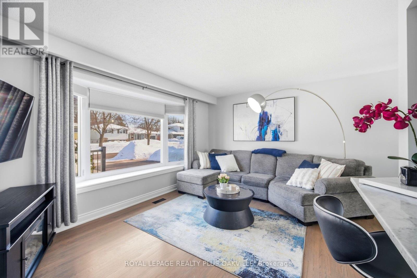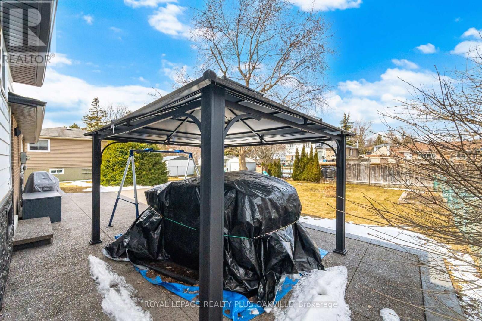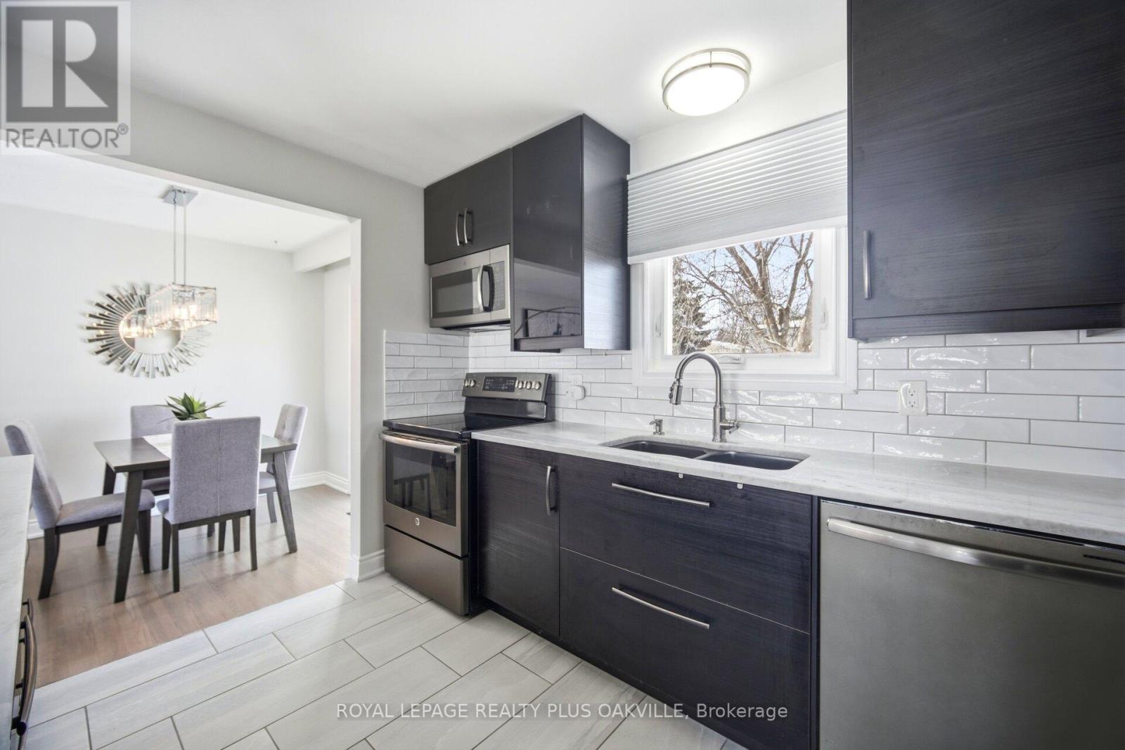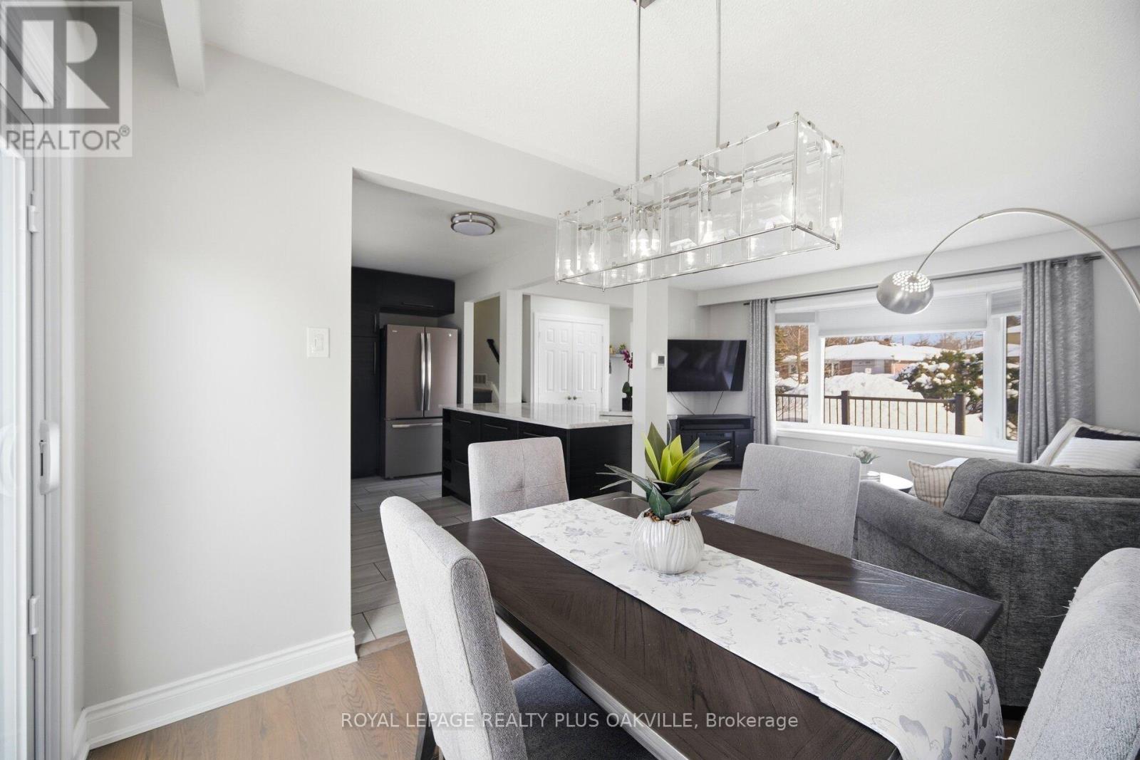 Stunning 4 level backsplit home on large pool size lot! Completely renovated throughout: Open concept kitchen with centre island/breakfast bar, quartzite countertops, stainless steel appliances and backsplash, Hardwood flooring throughout upper levels, reno'd main bathroom with oversized shower, front bay window and rear sliding door from dining room, luxury vinyl in rec room, composite front porch and thousands spent on rear stone patio! Tastefully decorated and painted in neutral tones! Driveway, eavestroughs heating and AC updated. Full bath in lower level with large soaker tub! Extra storage. Mature pool size lot with gazebo! Beautifully maintained! (id:4555)