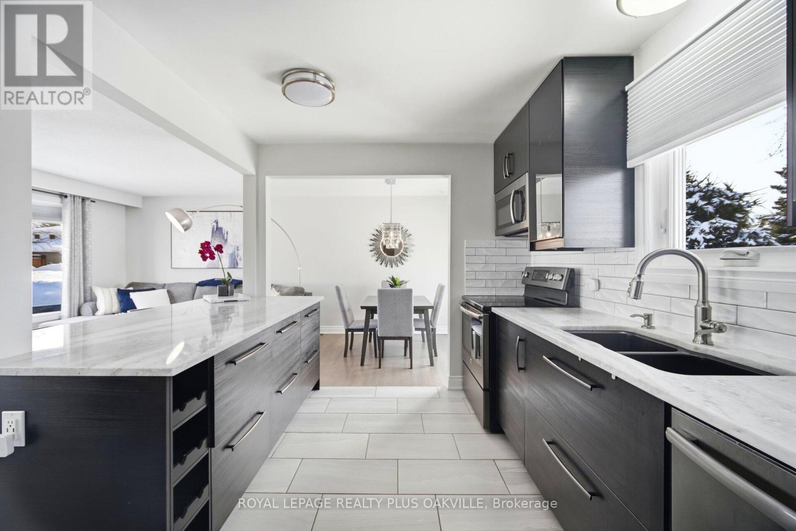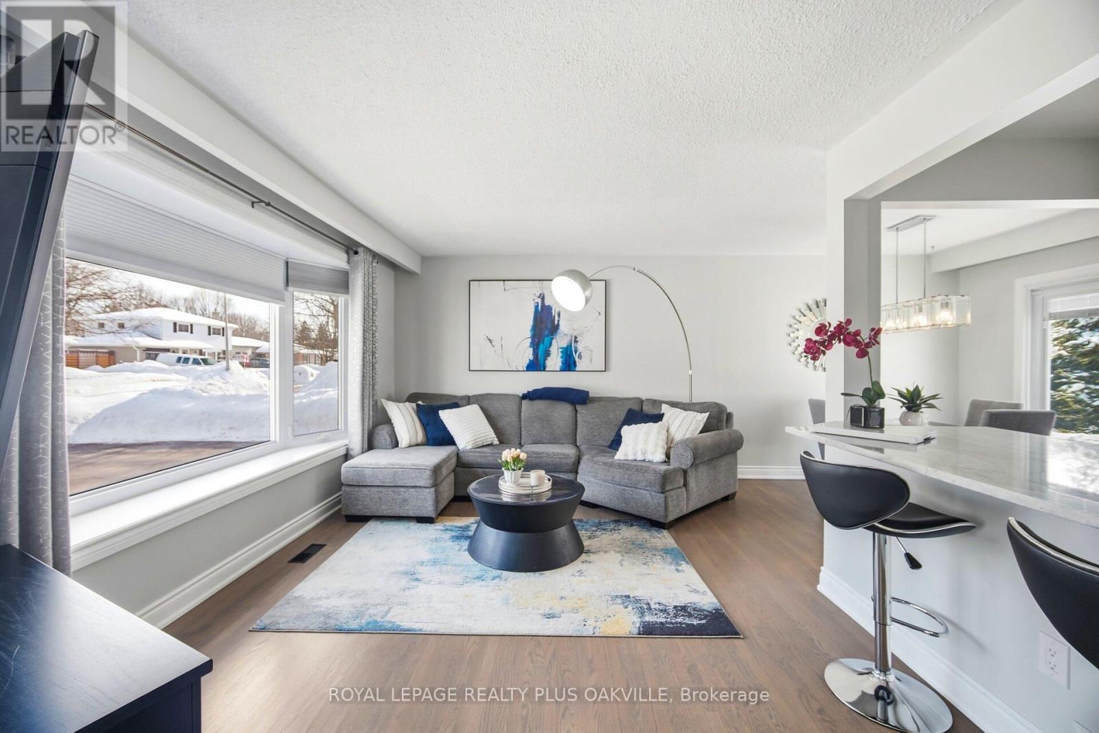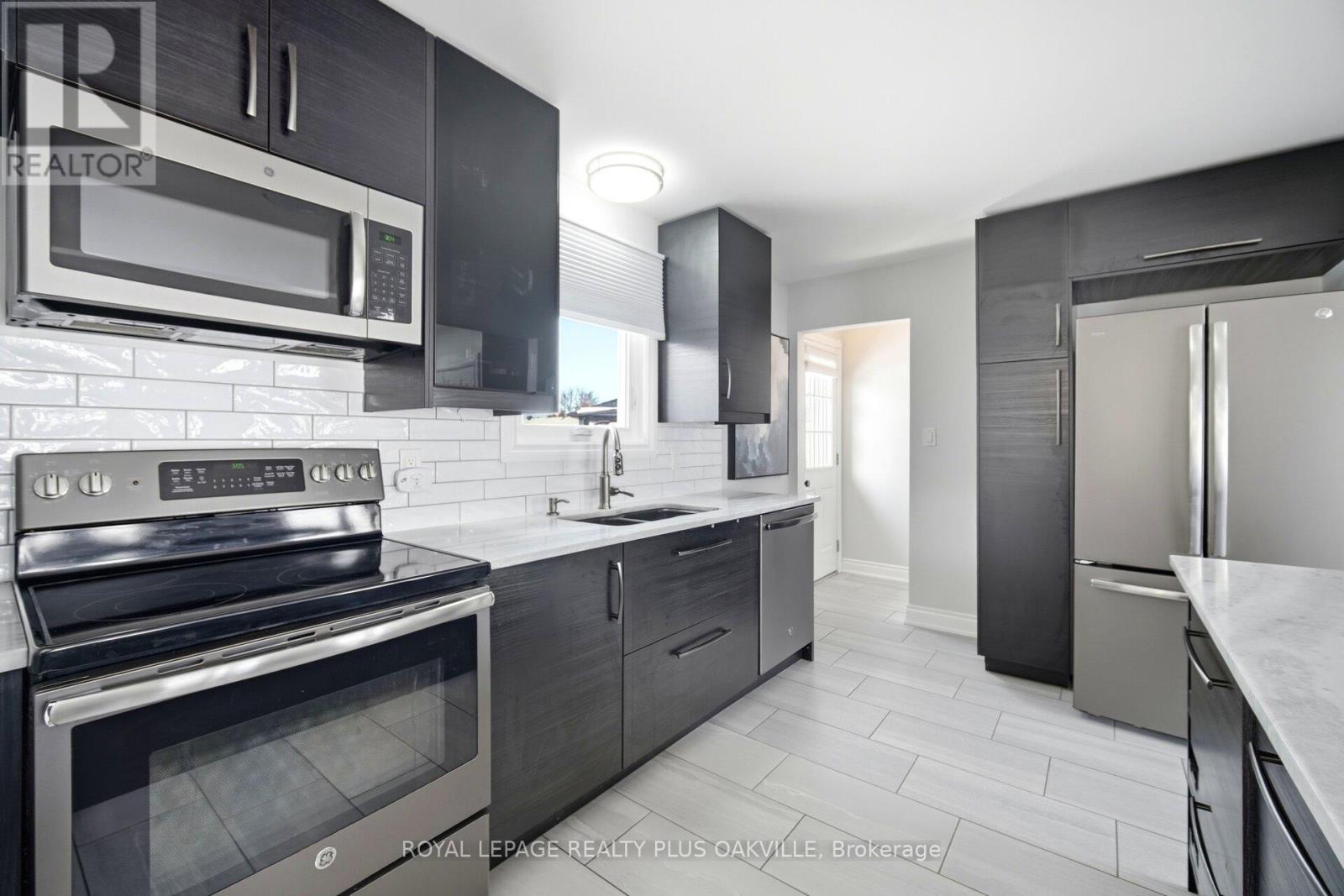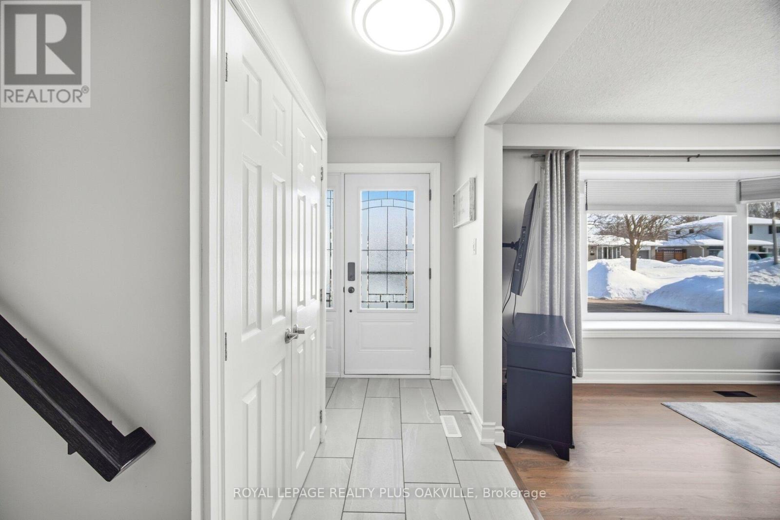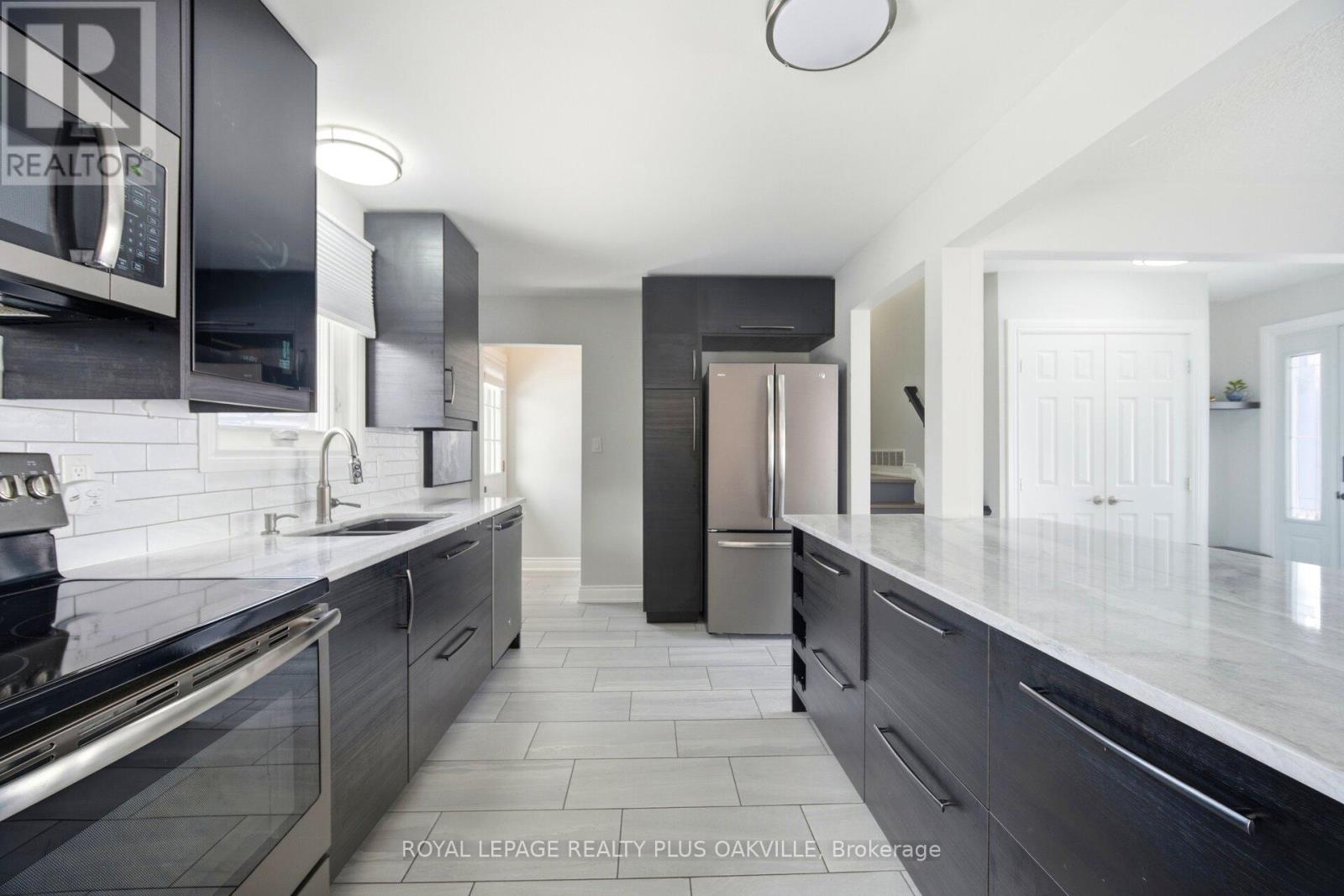Stunning 4 level backsplit home on large pool size lot! Completely renovated throughout: Open concept kitchen with centre island/breakfast bar, quartzite countertops, stainless steel appliances and backsplash, Hardwood flooring throughout upper levels, reno'd main bathroom with oversized shower, front bay window and rear sliding door from dining room, luxury vinyl in rec room, composite front porch and thousands spent on rear stone patio! Tastefully decorated and painted in neutral tones! Driveway, eavestroughs heating and AC updated. Full bath in lower level with large soaker tub! Extra storage. Mature pool size lot with gazebo! Beautifully maintained! (id:4555)