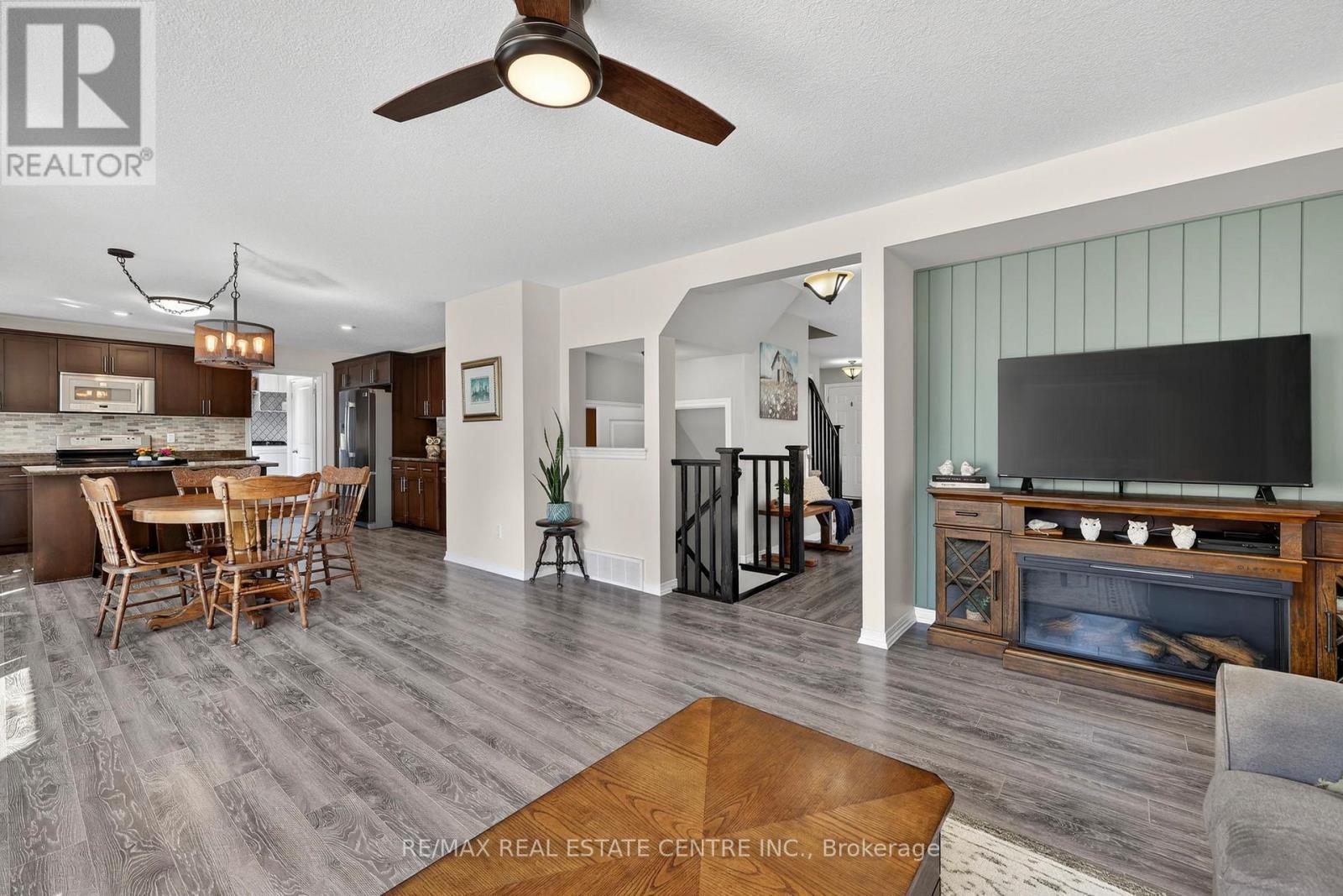 Welcome to 14 Sandringham Circle - an exceptional family home located in the highly sought after West End of Orangeville, just minutes from excellent schools, shopping, parks, and more. This spacious family home offers 2,370 sq. ft. of above grade living space, plus a professionally finished basement, providing plenty of room for growing families and entertaining. The main floor features a bright and spacious layout highlighted by a combined living and dining room with soaring cathedral ceilings open to the loft above. A separate family room offers a cozy space to relax, while the expansive eat-in kitchen is perfect for gatherings and everyday living, complete with a centre island, stainless steel appliances, backsplash, and pot lighting. Multiple walkouts lead to the backyard, and the main floor also offers the convenience of a laundry room and direct garage access. Upstairs, you will find three generously sized bedrooms along with a versatile loft space, perfect for a home office, play area, or additional lounge. The primary bedroom offers a private ensuite bathroom and walk-in closet. The two additional bedrooms are also well sized, with one featuring an extra large layout. The fully finished basement adds even more incredible flexibility, featuring a fourth bedroom, a large living area, second kitchen, massive cold room, and a walk-up to the garage that provides the potential for separate access. Step outside to a backyard designed for both relaxation and entertaining, complete with a deck, gazebo, and hot tub - perfect for hosting family and friends. This home showcases true pride of ownership and offers numerous updates and thoughtful touches throughout. Additional updates include: Water Softener (2024), Freshly Painted (2024), Clothes Washer & Clothes Dryer (2023), Hot tub & Landscaping. (id:4555)
