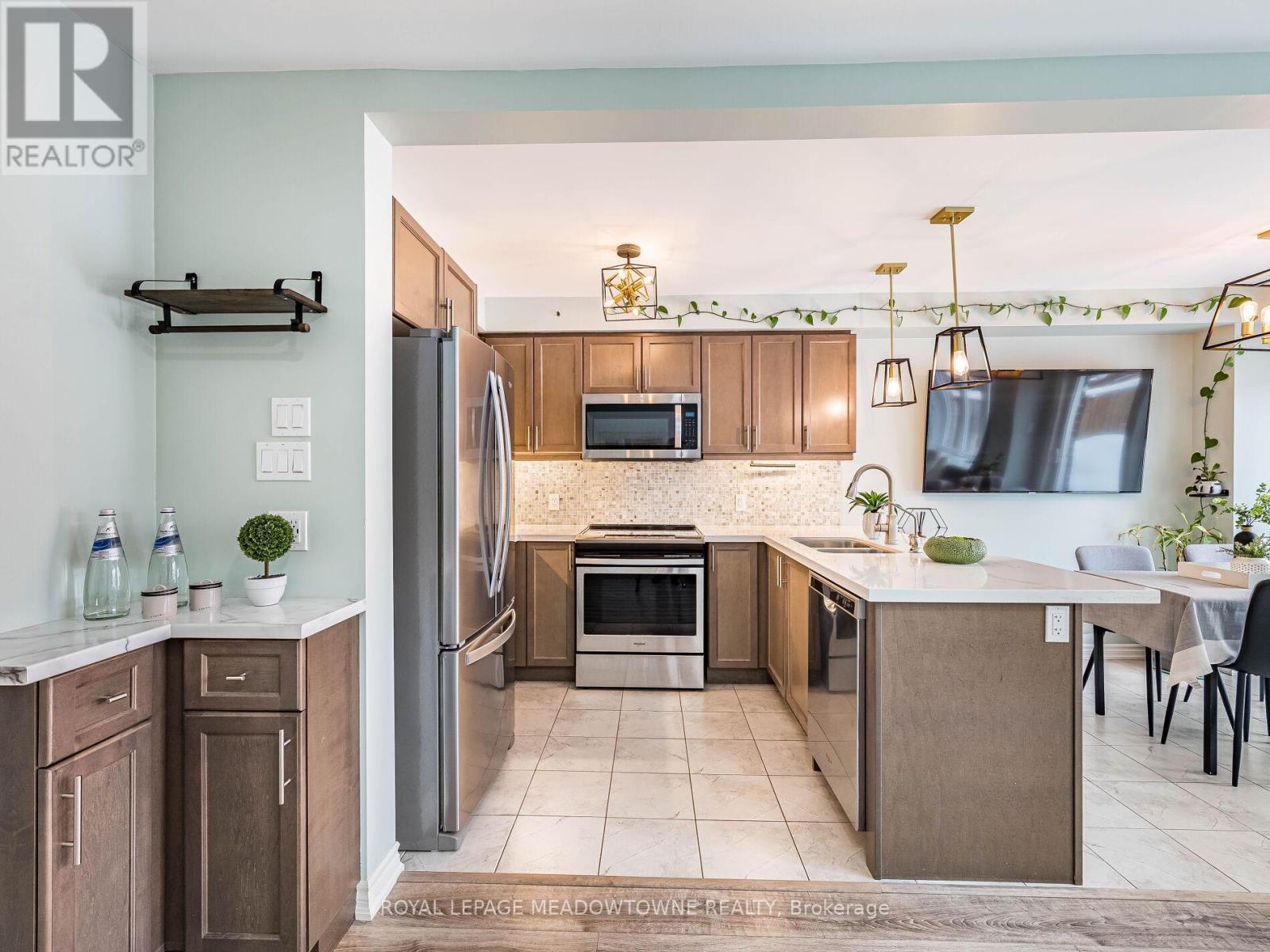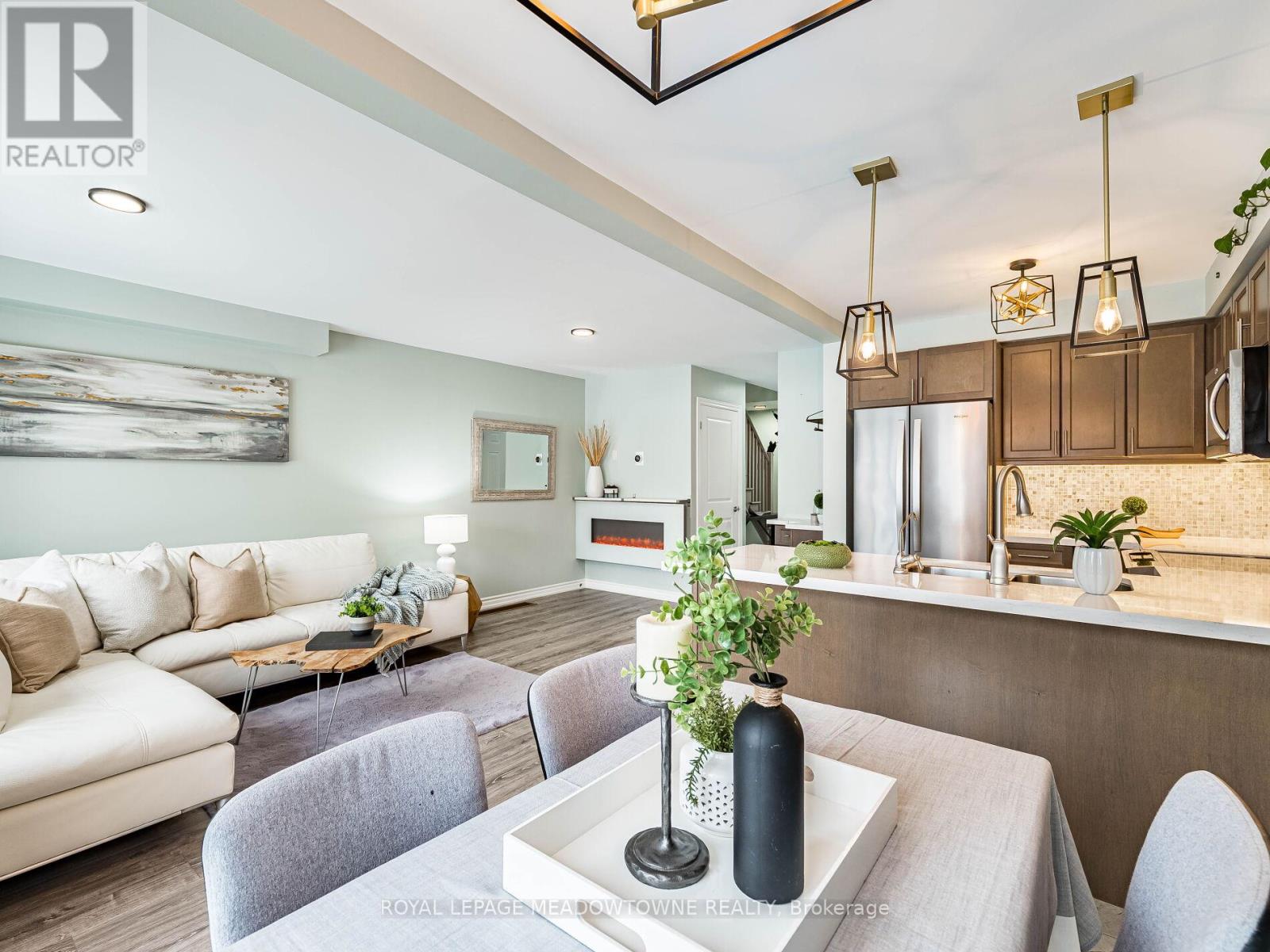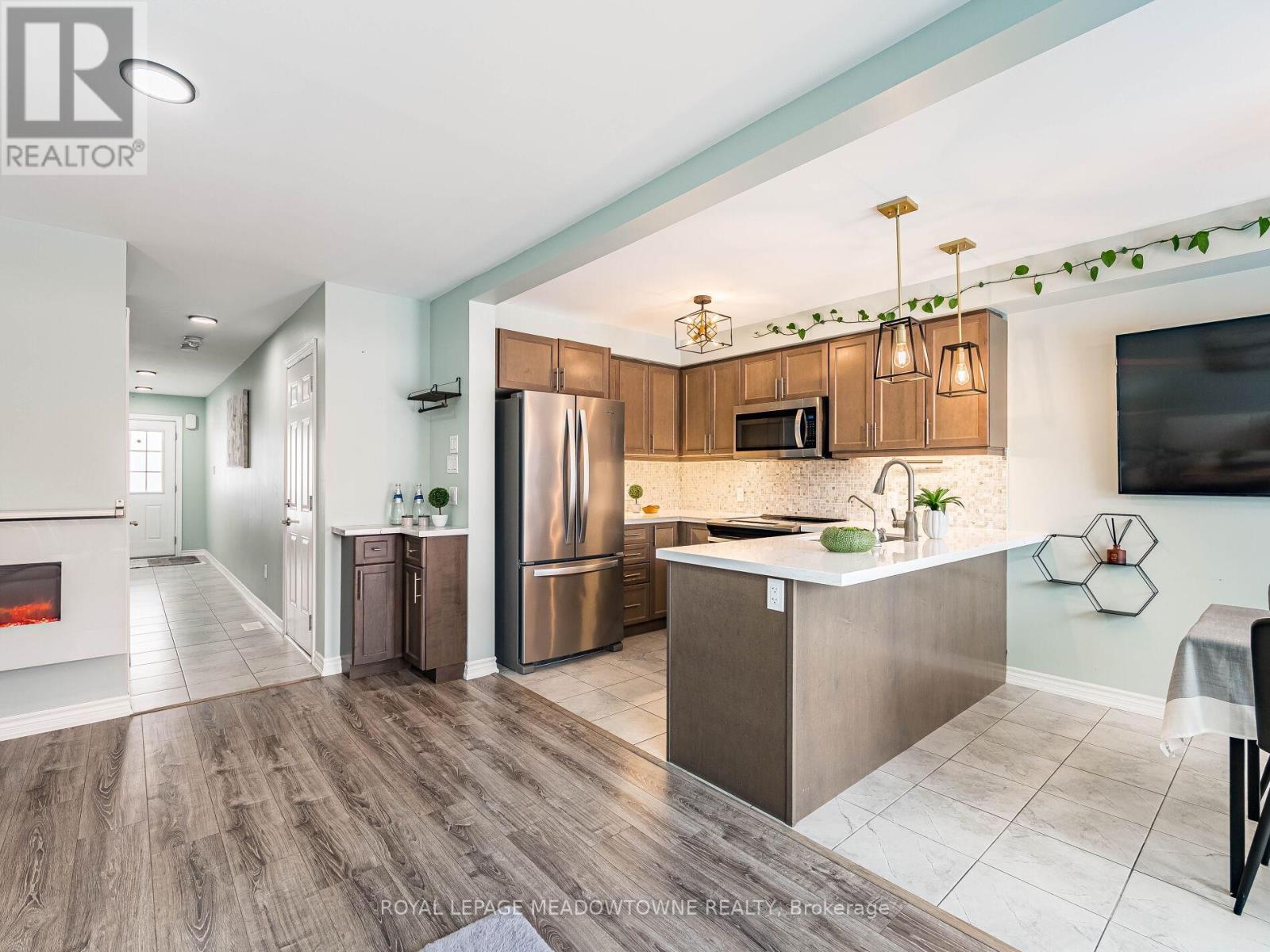 Welcome to this beautifully maintained freehold townhouse in the heart of Orangeville, where modern style meets functional family living in an unbeatable location. With no homes behind, enjoy rare privacy and peaceful backyard views. This bright, open-concept home offers 3 bedrooms and 3 bathrooms designed for comfortable everyday living and effortless entertaining. The main floor features updated light fixtures, a cozy electric fireplace, and a charming, dedicated coffee bar perfect for busy mornings or hosting friends. The stylish kitchen is beautifully appointed with quartz countertops, a sleek backsplash, and stainless-steel appliances. Upstairs, the spacious king-sized primary retreat includes a walk-in closet and a private 3-piece ensuite with a walk-in shower. Two additional generously sized bedrooms and a full bath provide ample space for family, guests, or a home office. Additional highlights include a solid wood staircase, convenient main-floor powder room, freshly painted interior, HRV system, rough-in for central vacuum, and a single-car garage with door opener. The unfinished basement with a bathroom rough-in offers exciting potential to create the space you've always envisioned. Rental hot water tank. Step outside to a low-maintenance, manicured backyard with no rear neighbours ideal for relaxing evenings, entertaining, or safe outdoor play. Located just minutes from the shops, restaurants, cafés, and year-round events of historic downtown Broadway, as well as the trails and natural beauty of Island Lake Conservation Area, this move-in-ready home perfectly balances small-town charm with modern convenience. An exceptional opportunity for first-time buyers, growing families, or investors looking to be part of one of Orangeville's most welcoming communities. (id:4555)