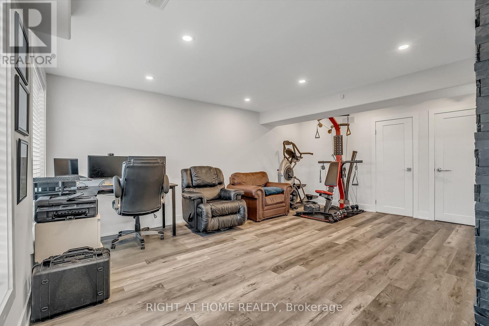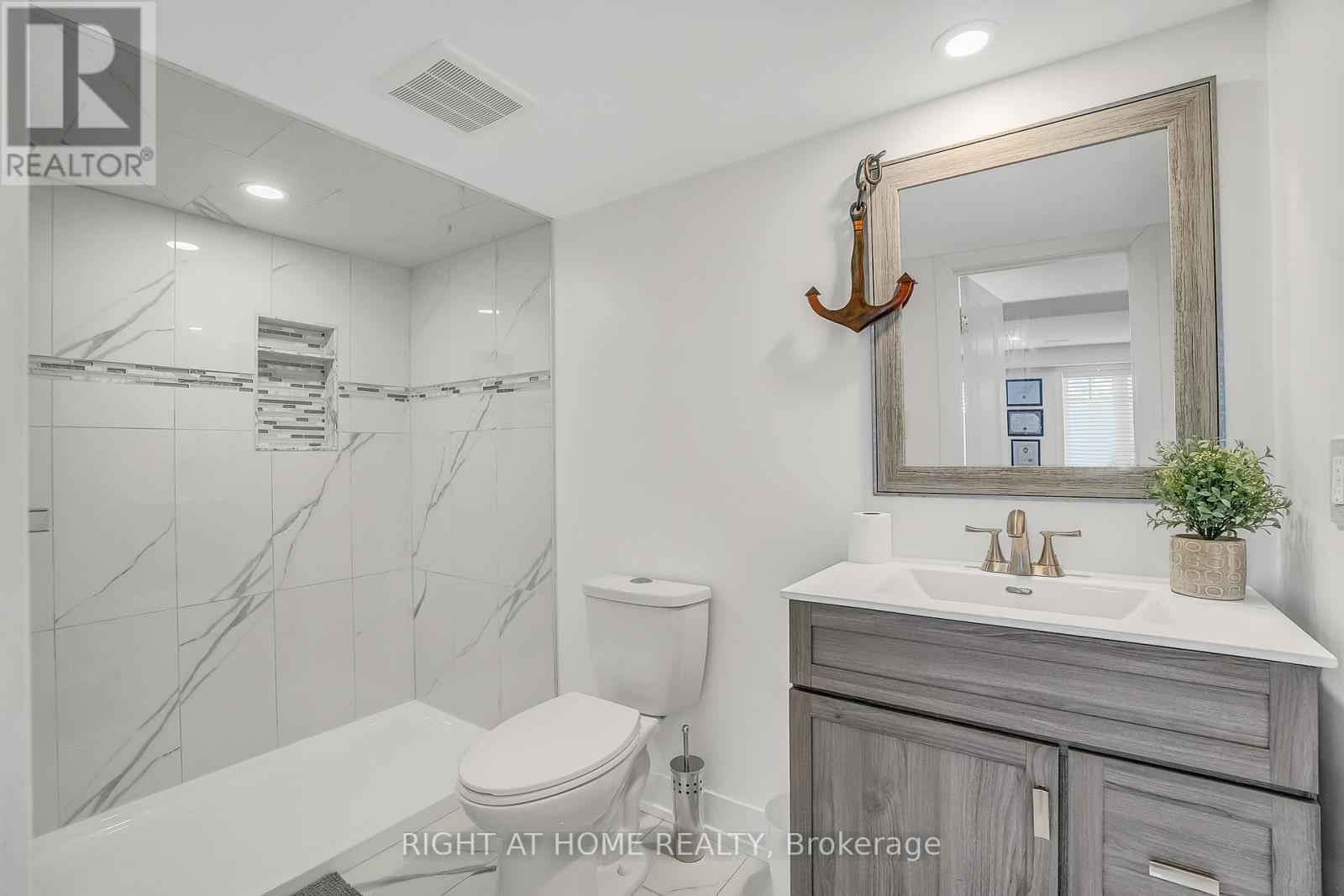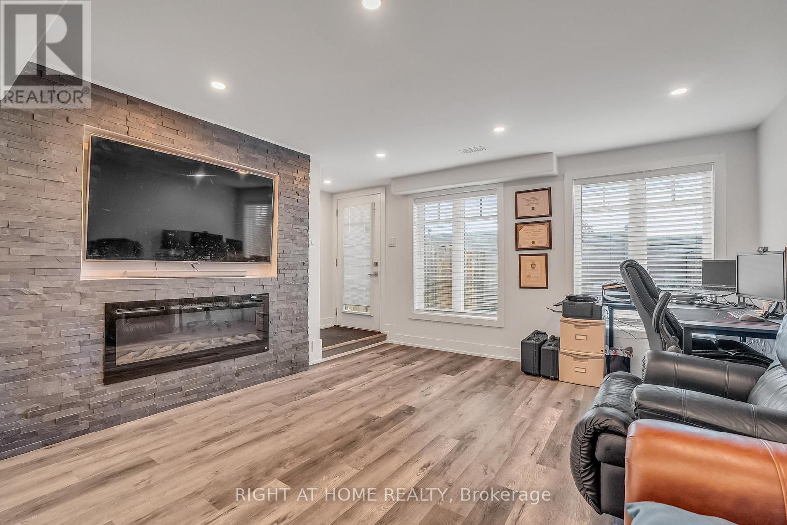 ** WALKOUT BASEMENT ** Welcome to this beautifully upgraded freehold townhouse, perfectly situated on a quiet, family-friendly cul-de-sac. Move-in ready and tastefully finished from top to bottom, this home exudes modern style and comfort. The professionally landscaped front yard creating an inviting first impression. Inside, the open-concept main level showcases a designer kitchen complete with a centre island, quartz countertops, sleek backsplash, and stainless steel appliances. The bright and spacious living area features large windows and a built-in entertainment wall, ideal for relaxing or entertaining. Upstairs offers three generous bedrooms and two bathrooms, including a primary suite with a large closet and private 3-piece ensuite. The finished basement extends the living space with a beautifully finished recreation area and a convenient fourth bathroom. Step outside from the walkout basement to a private, fully fenced backyard with newly laid sod and no rear neighbours perfect for outdoor gatherings. With parking for two vehicles, inside access from the garage, and ample visitor parking nearby, this exceptional home combines comfort, convenience, and a prime location near top-rated schools, parks, and everyday amenities. (id:4555)