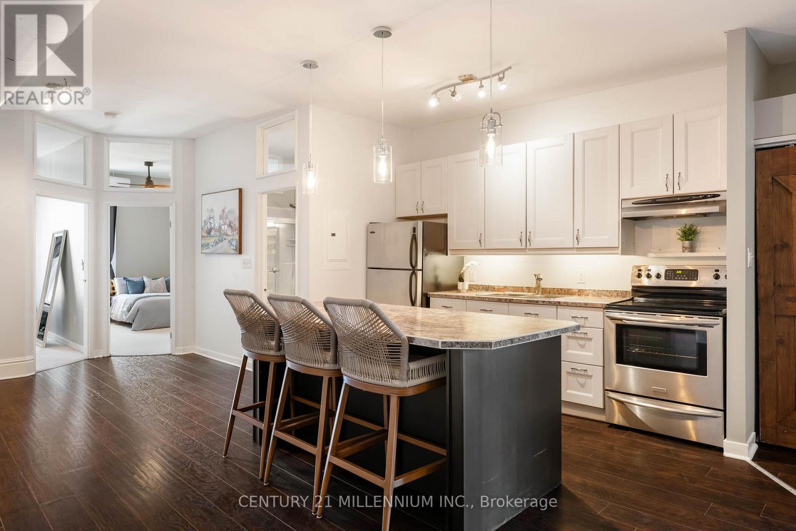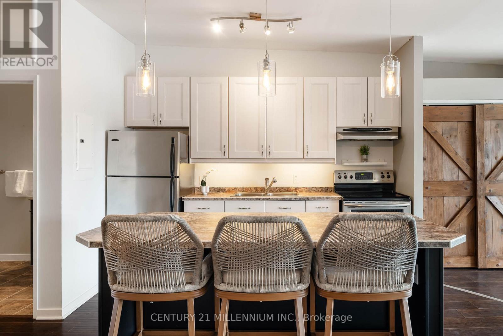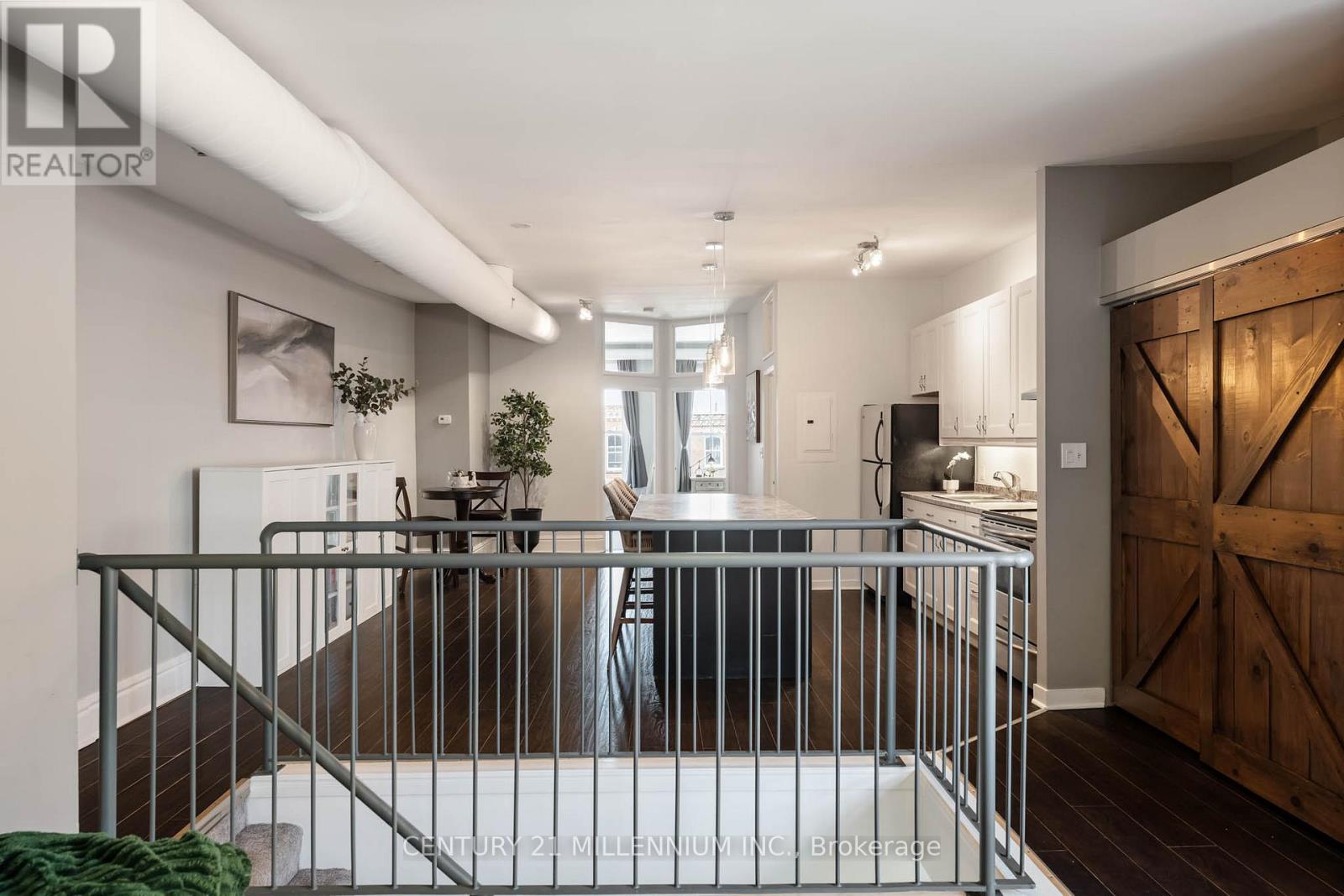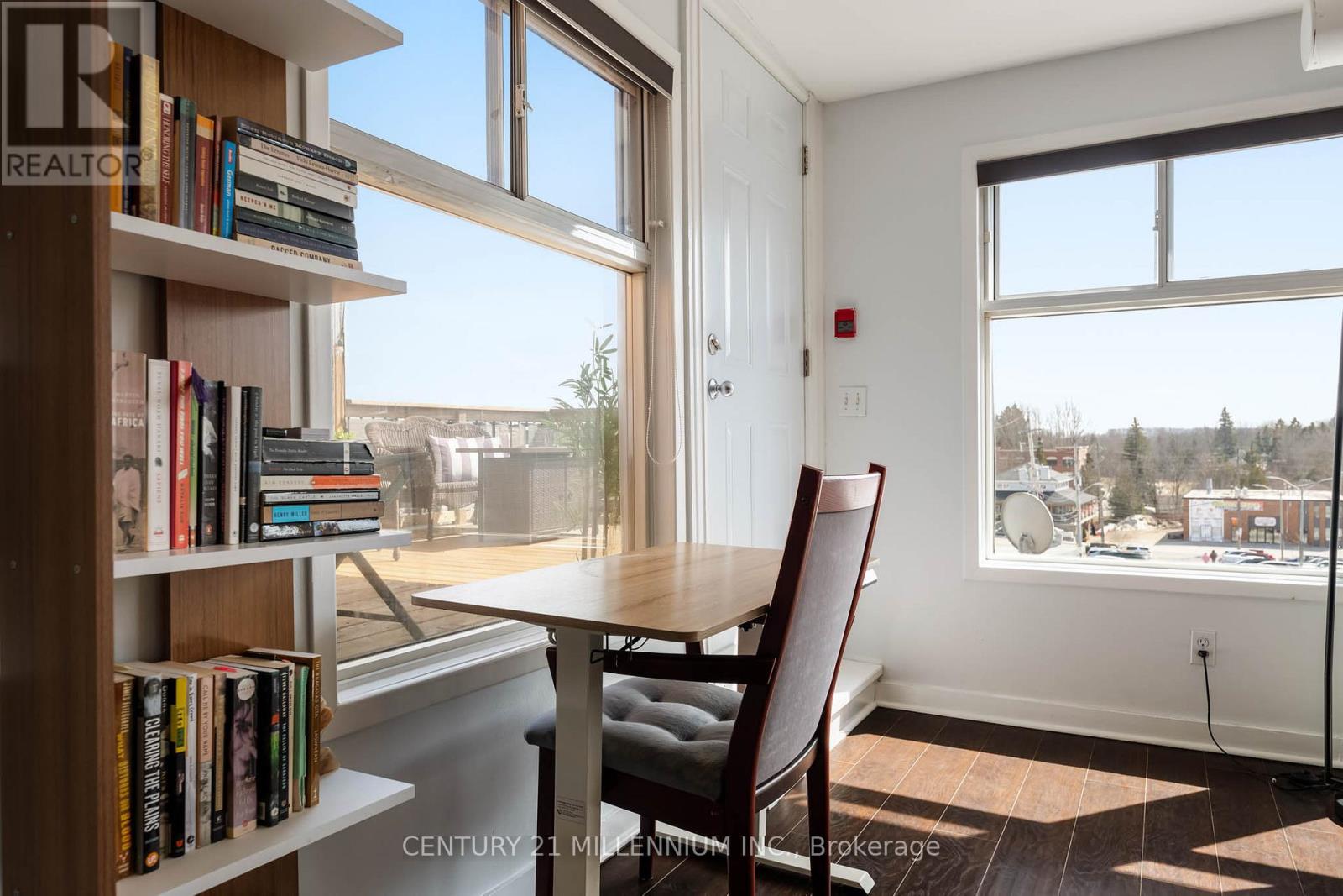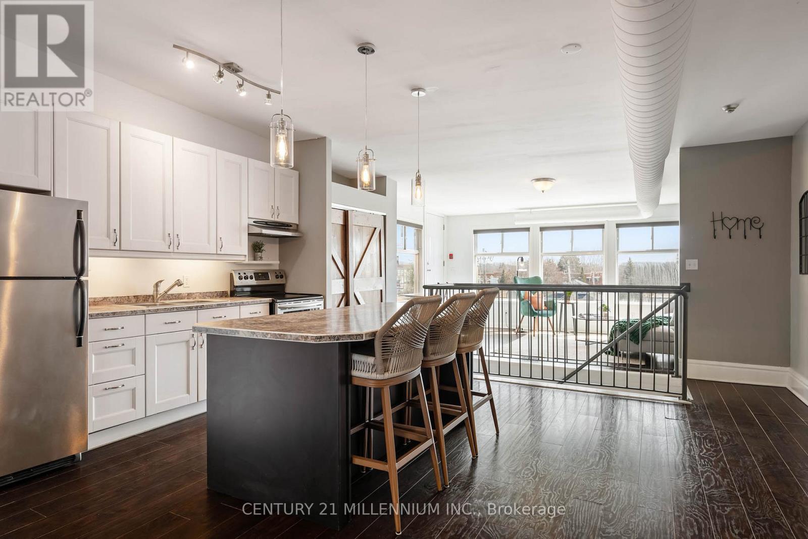Welcome to top-floor living in the heart of Downtown Orangeville. This bright and airy condo features impressive 10-foot ceilings and oversized windows with north, south, and east exposures, filling the space with natural light throughout the day.Enjoy a spacious open-concept layout with a large kitchen island complete with built-in dishwasher, perfect for everyday living and entertaining. The unit offers two generously sized bedrooms, in-unit air conditioning, and new carpet in the front entrance for added comfort.Step outside to your private rooftop deck-an ideal space to relax and take in the vibrant surroundings of downtown living.Experience the perfect blend of urban convenience and small-town charm, all within walking distance to shops, restaurants, and local amenities. A great opportunity for those seeking a stylish, low-maintenance lifestyle in an unbeatable location. This unit is also available for sale. (id:4555)