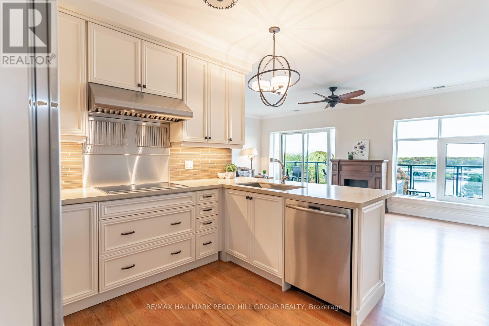 EXPERIENCE LUXURY LAKEFRONT LIVING AT THIS STUNNING CONDO FEATURING A LARGE BALCONY & HIGH-END FINISHES! Welcome to 80 Orchard Point Road #604, a stunning waterfront condo offering breathtaking views of Lake Simcoe! Step inside this sun-drenched, open-concept space where every detail exudes sophistication, from the elegant crown moulding to the beautiful flooring and upscale finishes throughout. The modern kitchen is a culinary dream, featuring sleek white cabinetry, a tile backsplash, a breakfast bar, and top-of-the-line built-in appliances, including a double wall oven, microwave, and cooktop. The expansive living room boasts a cozy fireplace and seamless access to a large balcony, perfect for taking in the spectacular lake vistas. With two spacious bedrooms each with closets and two full bathrooms, including a primary bedroom with a 4-piece ensuite, this home is designed for both comfort and luxury. This well-maintained building has outstanding amenities that elevate your lifestyle including an infinity pool, hot tub, rooftop terrace, fitness centre, and media room all at your fingertips. Plus, with in-suite laundry and an included underground parking space, convenience is assured. Located minutes from downtown Orillia, you'll enjoy easy access to boutique shopping, fantastic dining, and cultural venues, as well as nearby parks, beaches, and the Lightfoot Trail. This condo is the ultimate choice for active adults seeking low-maintenance living in a luxurious, lakefront setting! Don't miss this rare opportunity to live your waterfront dream! (id:4555)