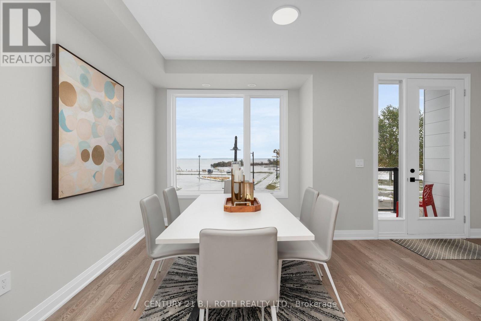 Welcome to this stunning 3-storey end-unit townhome in the highly sought-after Sunshine Harbour community! Offering unobstructed views of Lake Couchiching, the Port of Orillia, Couchiching Beach Park, and the downtown core, this property delivers a truly prime lakeside lifestyle. Inside, the home boasts a contemporary open-concept layout flowing through the main living area into a sleek modern kitchen with brand-new stainless-steel appliances and stylish finishes. With 3 spacious bedrooms and 4 bathrooms, including a luxurious primary suite complete with a walk-in closet and 4-piece ensuite showcasing a glass-enclosed shower and double-sink vanity, this home is sure to impress. Enjoy serene water views from all three levels, ideal for morning coffee or evening entertaining - especially from the top-floor sitting terrace. An attached double-car garage with inside entry adds everyday convenience. Thoughtfully upgraded with over $20,000 in improvements, this brand-new home combines contemporary design with relaxed waterfront living. Low maintenance fees and stress-free ownership include lawn care, snow removal, and garbage/recycling services year-round. Inspired by its natural surroundings, the coastal-style architecture blends light-coloured cladding and warm wood accents with expansive terraces and a modern open-concept interior, creating a relaxed yet sophisticated urban presence. Nestled in the heart of vibrant Orillia, you'll be minutes from scenic trails, beautiful parks, charming shops, local restaurants, and all the attractions of the downtown core. (id:4555)