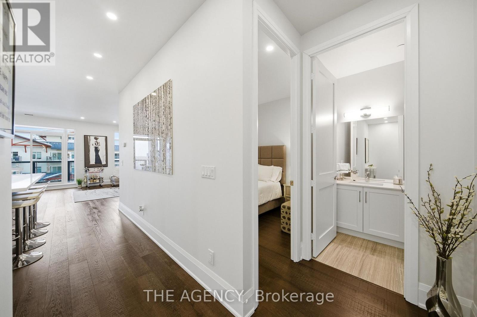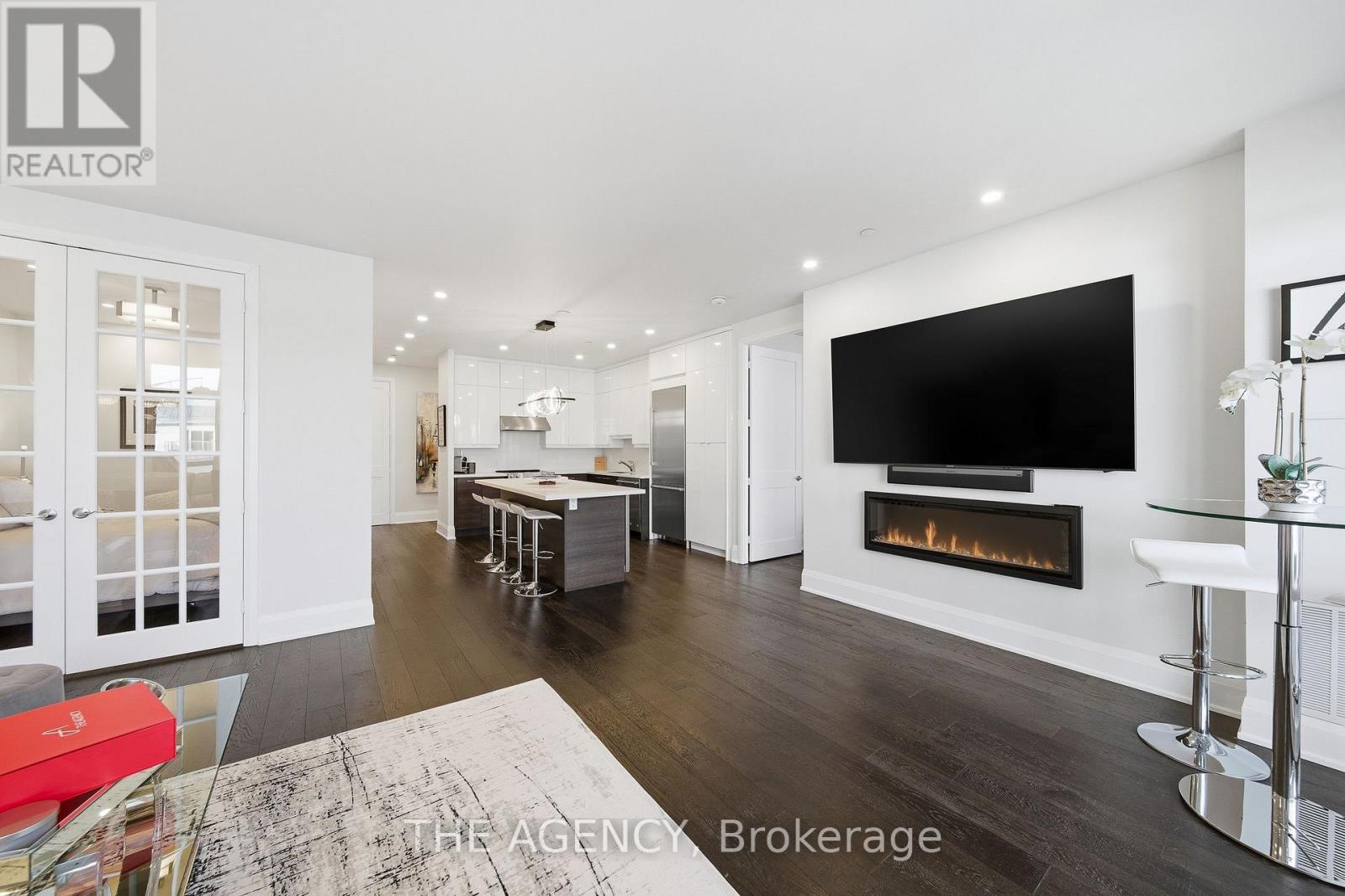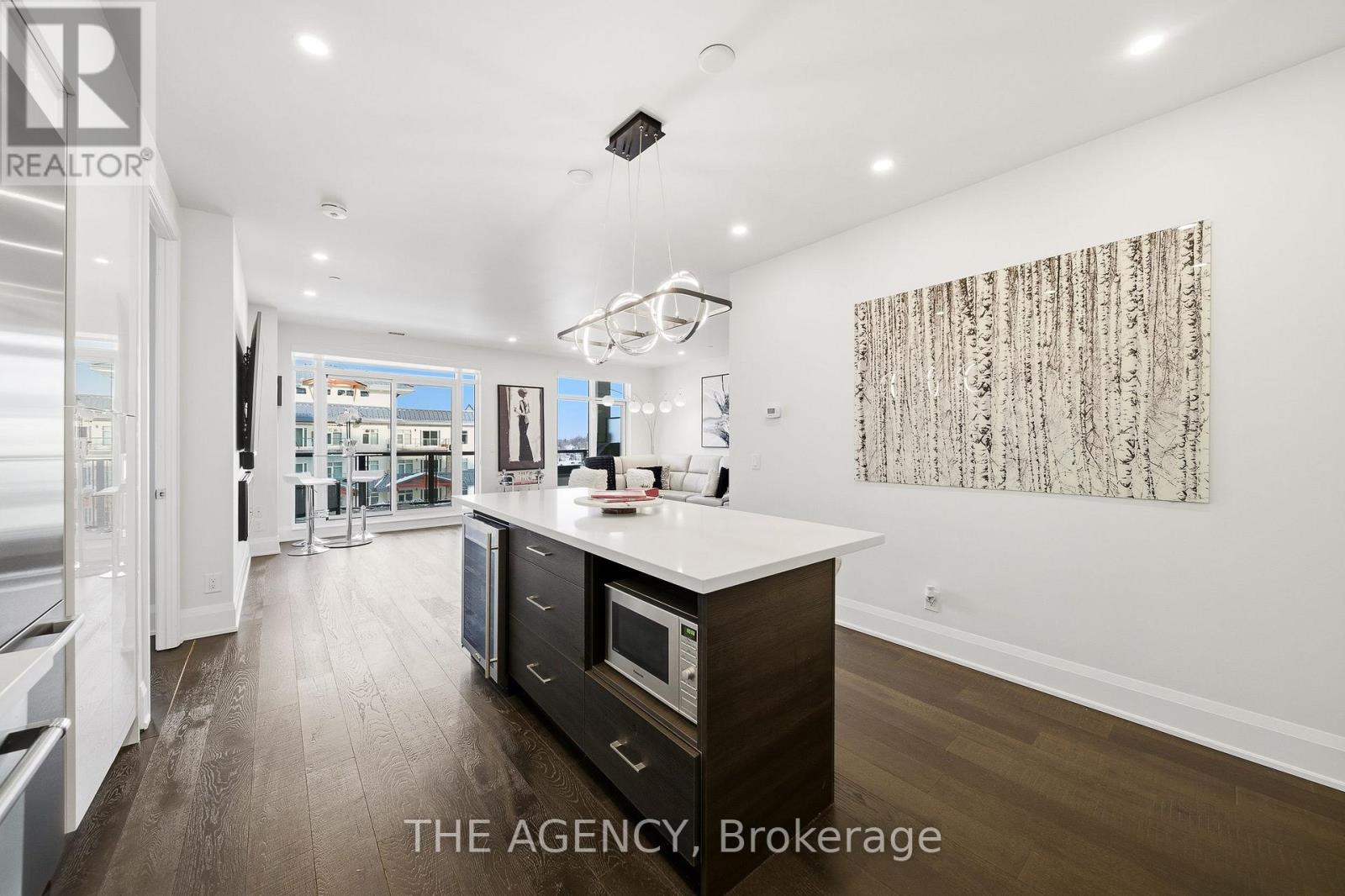 Perched at the north end of Lake Simcoe and just minutes from downtown Orillia and Casino Rama, this luxurious 2-bedroom, 2-bath waterfront condo offers over 1,200 sq. ft. of maintenance-free living. Featuring soaring 10-ft ceilings, wide-plank flooring, and a custom chef's kitchen with quartz countertops, upgraded stainless steel appliances, and oversized island with breakfast bar. The sun-filled great room includes a modern linear electric fireplace and sliding doors to a private lakefront balcony with gas BBQ hookup-perfect for enjoying stunning sunrises and sunsets. The spacious primary suite accommodates a king-size bed and offers walk-through closets and a spa-inspired 5-piece ensuite. A versatile second bedroom with French doors is ideal as a guest room, den, or office, located next to a stylish 3-piece bath. Enjoy resort-style amenities including fitness centre, sauna, pool, hot tub, theatre, party room, outdoor terraces, guest suite, and more. Boat slips available for rent right outside your door. Includes 2 parking spaces and storage locker. Four-season lakeside living at its finest. (id:4555)