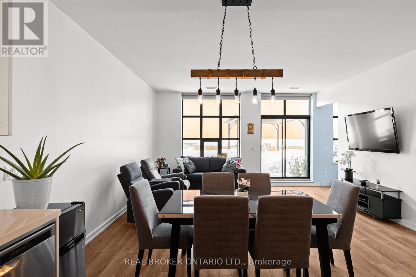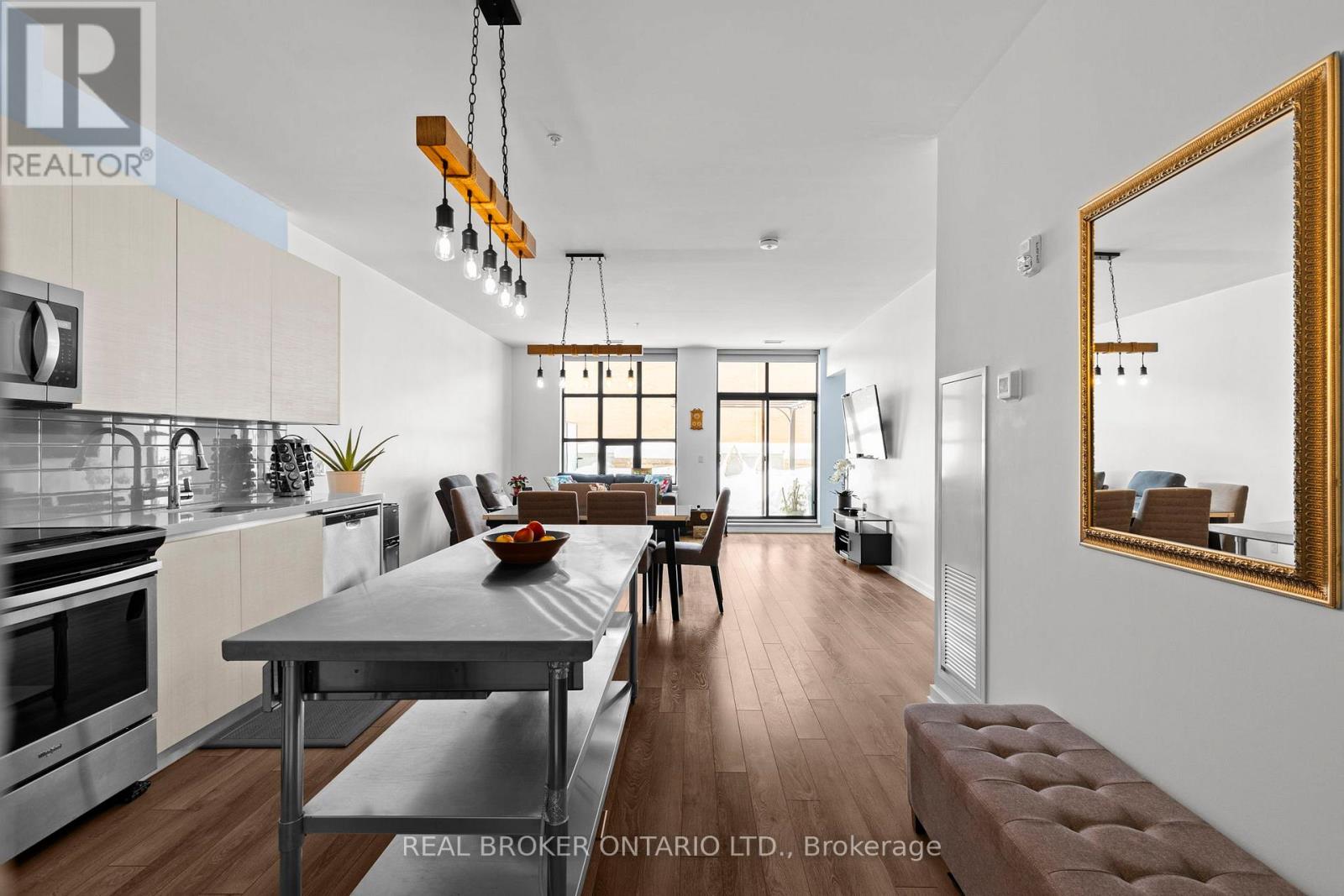 Welcome to Matchedash Lofts - one of downtown Orillia's most sought-after condo buildings. This exceptionally rare offering features over 1,000 square feet of interior living space plus an incredible 540 square foot private terrace, creating a true indoor/outdoor living experience seldom found in condo living. Flooded with natural light, this modern residence offers an open-concept layout with stainless steel appliances, a large centre island, and contemporary finishes throughout. A spacious den provides excellent flexibility for a home office or guest space, complemented by a second full 4-piece bathroom. The primary bedroom features a walk-in closet and private ensuite. Step outside to your expansive terrace complete with a natural gas BBQ hookup and gazebo - perfect for entertaining and relaxing. Built in 2020, Matchedash Lofts is a top-quality, well-managed building offering premium amenities including a rooftop patio and function room with sweeping views of Lake Couchiching. Enjoy a truly walkable lifestyle with downtown Orillia's shops, restaurants, waterfront, Metro, Shoppers Drug Mart, LCBO, and more just steps away. The unit also includes a premium underground parking space with no vehicles on either side and an additional storage locker - no snow, no door dings, just convenience. A rare combination of space, outdoor living, and location - this is condo living without compromise. (id:4555)