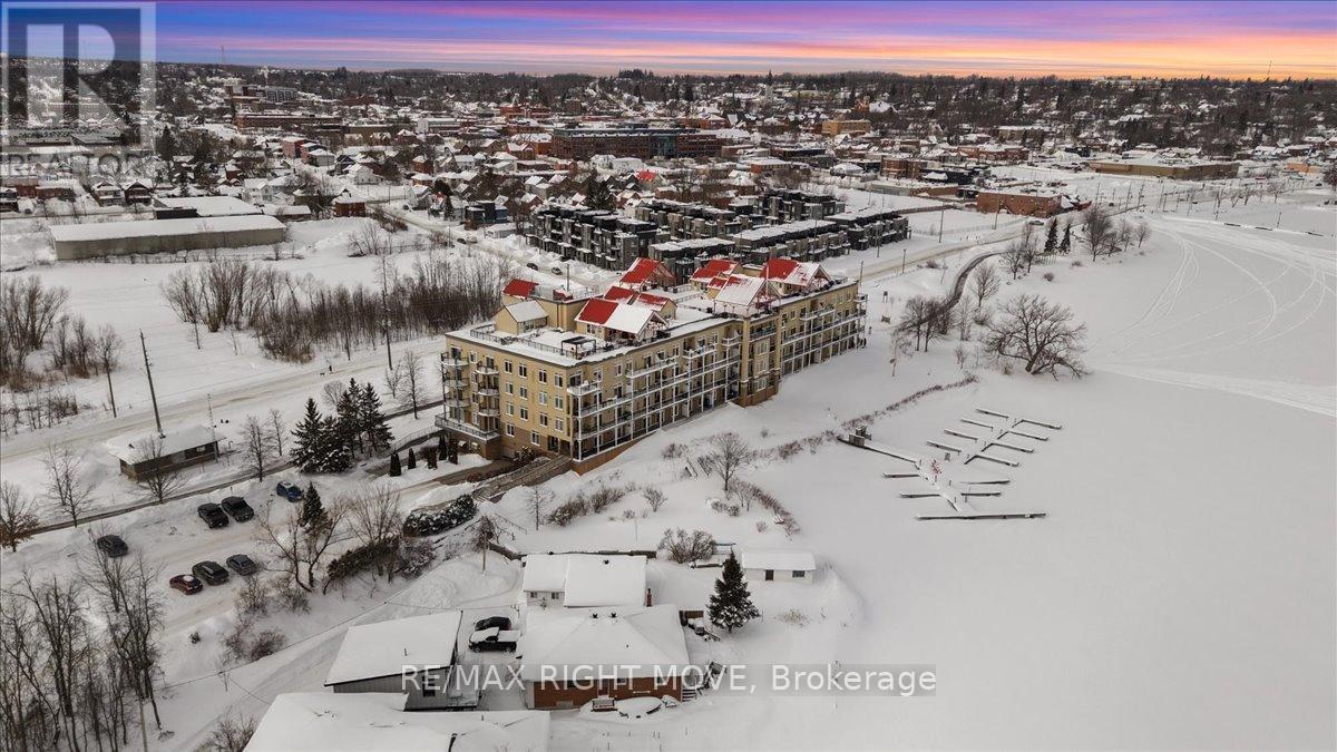 Welcome to sought-after Elgin Bay Club in Orillia - where effortless lakeside living meets comfort, space, and convenience. This beautifully appointed main-floor condo offers approximately 1,600 sq ft of bright, well-designed living space with direct panoramic views of Lake Couchiching and easy water access for a true waterfront lifestyle.Featuring 2 spacious bedrooms plus a versatile den and 2 full bathrooms, this unit is ideal for those seeking room to relax, entertain, or work from home. The freshly painted living area adds a crisp, updated feel, while the open-concept layout is filled with natural light and highlighted by large windows and walkout access that captures stunning lake views year-round. Generous in-unit storage adds everyday functionality.Enjoy the rare bonus of your own private boat slip at the condo dock, making boating and waterfront enjoyment incredibly convenient. Additional features include underground parking, a dedicated storage locker, and a secure, well-managed building for peace of mind.Residents enjoy premium amenities including a rooftop terrace with bird's-eye views of the cityscape and Lake Couchiching, plus a party room perfect for gatherings and special occasions.A rare opportunity to own a spacious waterfront-view condo in one of Orillia's most desirable lakefront communities - perfect for year-round living or a luxurious downsizing option. (id:4555)