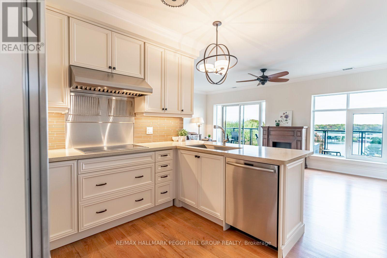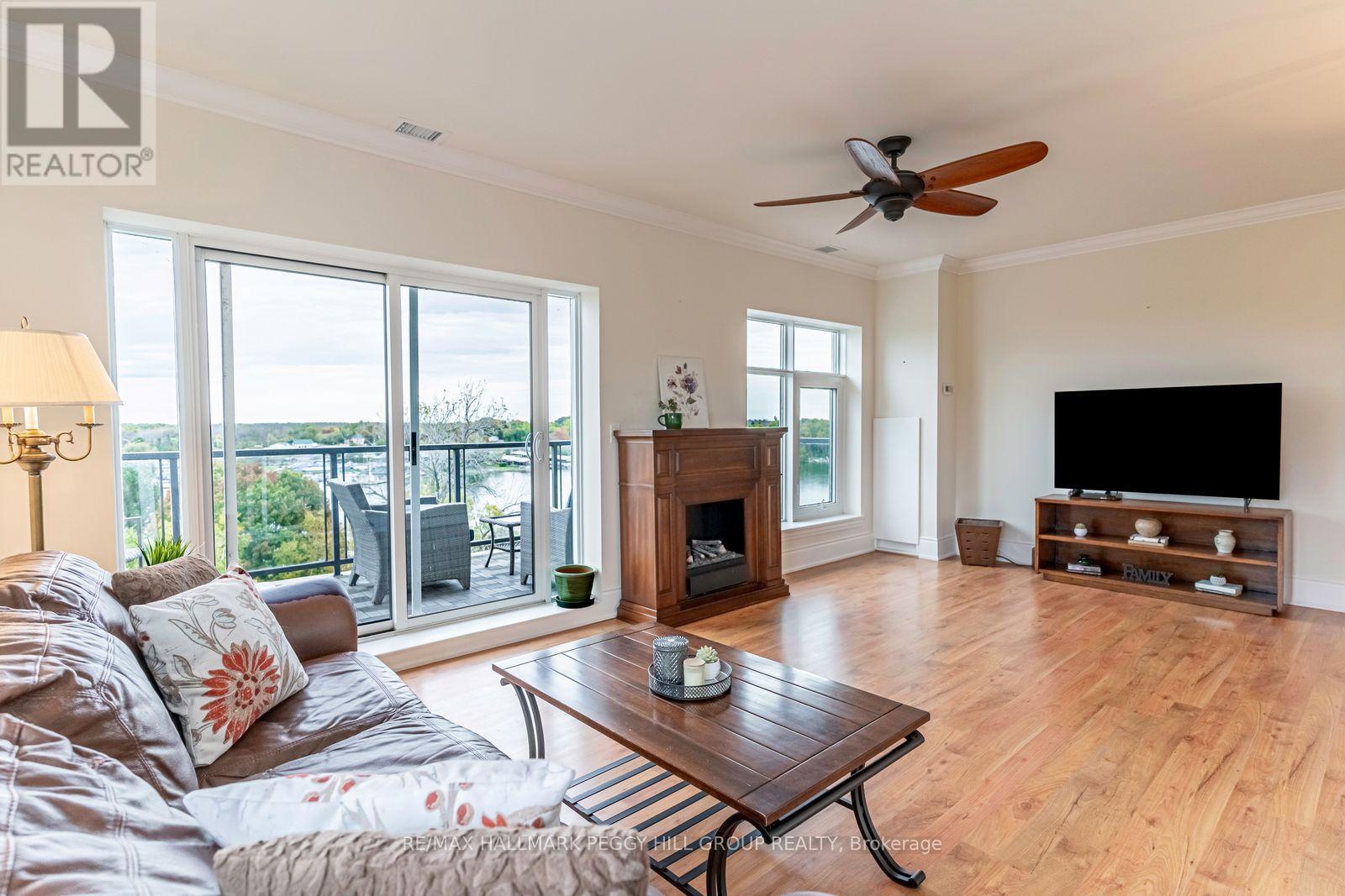 2 BED, 2 BATH, 1,000+ SQ FT WITH A LARGE BALCONY, LAKE SIMCOE VIEWS, RESORT-STYLE AMENITIES, UNDERGROUND PARKING & IN-SUITE LAUNDRY! Start your morning on the balcony with Lake Simcoe stretched out in front of you, easing into the day with a coffee and a lake breeze, spend the afternoon making the most of the building's resort-style amenities, then return to those same open water views at night as the shoreline lights begin to glow. Designed across 1,032 square feet, the open layout is finished with crown moulding, beautiful neutral-toned flooring, and high-end details that make the space feel quietly upscale. The kitchen is designed for real living and easy hosting, featuring white cabinetry, a tile backsplash, a breakfast bar, and high-end built-in appliances that keep everything streamlined. The living room is warm and inviting, with a cozy electric fireplace and a walkout to the balcony, keeping the lakefront and centre throughout the day. Two well-proportioned bedrooms, each with double closets, are paired with two full bathrooms, including a primary bedroom with a private 4-piece ensuite, adding everyday comfort and privacy. When it's time to step out, the well-maintained building offers an infinity pool, hot tub, rooftop terrace, fitness centre, media room, visitor parking, plus the convenience of in-suite laundry and one underground parking space. Set close to parks, the Lightfoot Trail, multiple beaches, Casino Rama, and the boutiques, dining, and cultural venues of downtown Orillia, this is low-maintenance living for active adults who want their #HomeToStay to feel like a lifestyle upgrade rather than just an address. (id:4555)