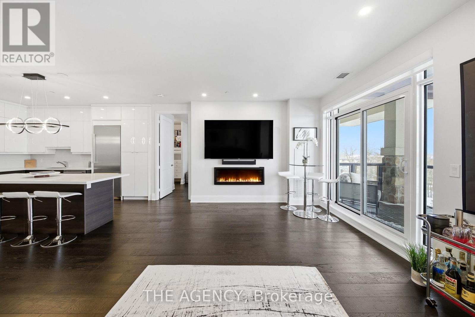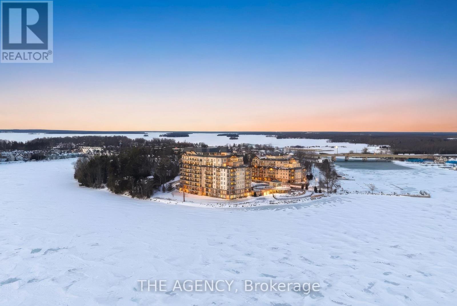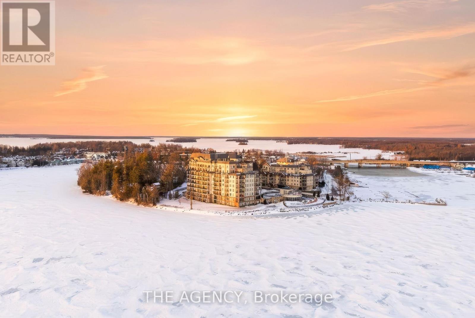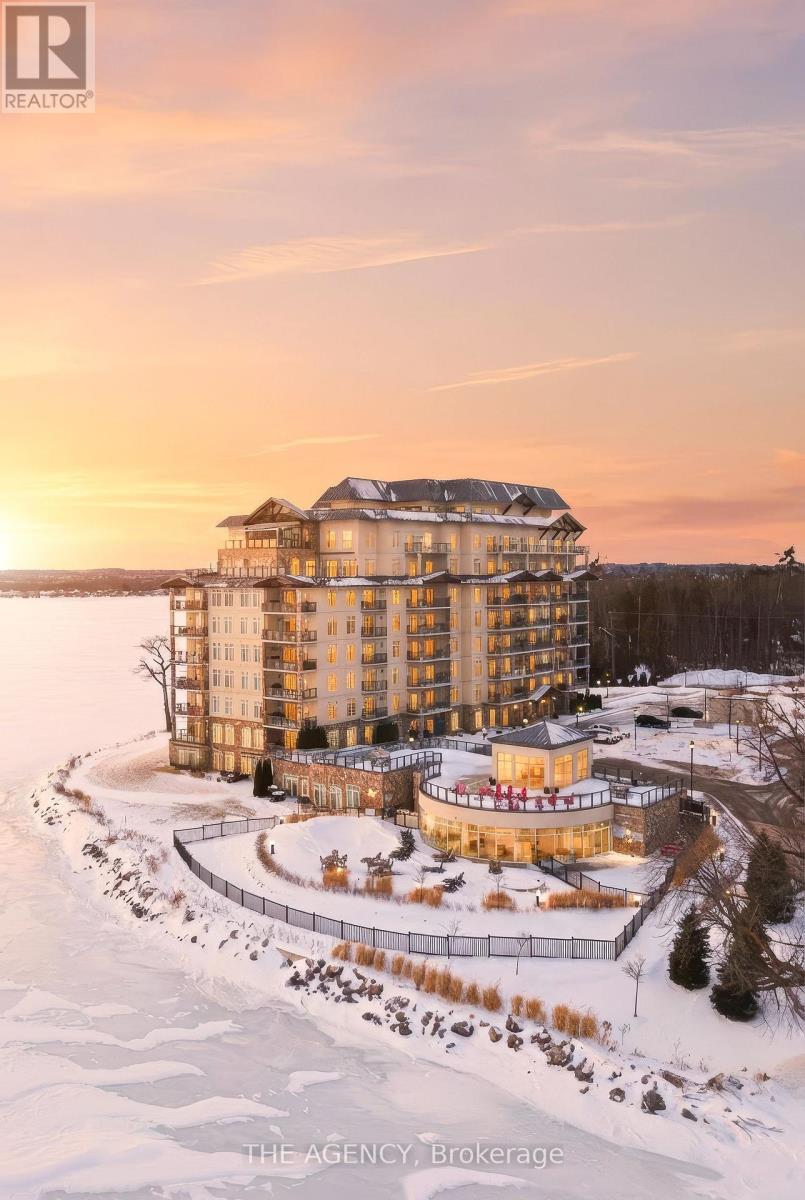 Perched at the north end of Lake Simcoe and just minutes from downtown Orillia and Casino Rama, this luxurious 2-bedroom, 2-bath waterfront condo offers over 1,200 sq. ft. of maintenance-free living. Featuring soaring 10-ft ceilings, wide-plank flooring, and a custom chef's kitchen with quartz countertops, upgraded stainless steel appliances, and oversized island with breakfast bar. The sun-filled great room includes a modern linear electric fireplace and sliding doors to a private lakefront balcony with gas BBQ hookup-perfect for enjoying stunning sunrises and sunsets. The spacious primary suite accommodates a king-size bed and offers walk-through closets and a spa-inspired 5-piece ensuite. A versatile second bedroom with French doors is ideal as a guest room, den, or office, located next to a stylish 3-piece bath. Enjoy resort-style amenities including fitness centre, sauna, pool, hot tub, theatre, party room, outdoor terraces, guest suite, and more. Boat slips available for rent right outside your door. Includes 2 parking spaces and storage locker. Four-season lakeside living at its finest. (id:4555)