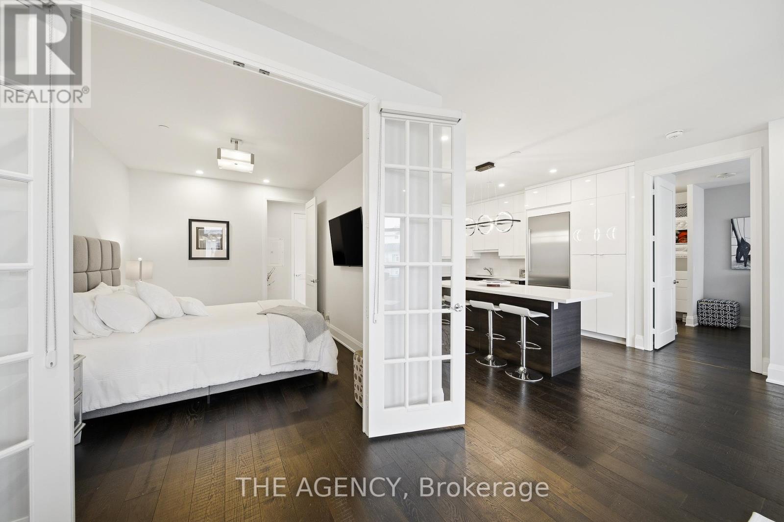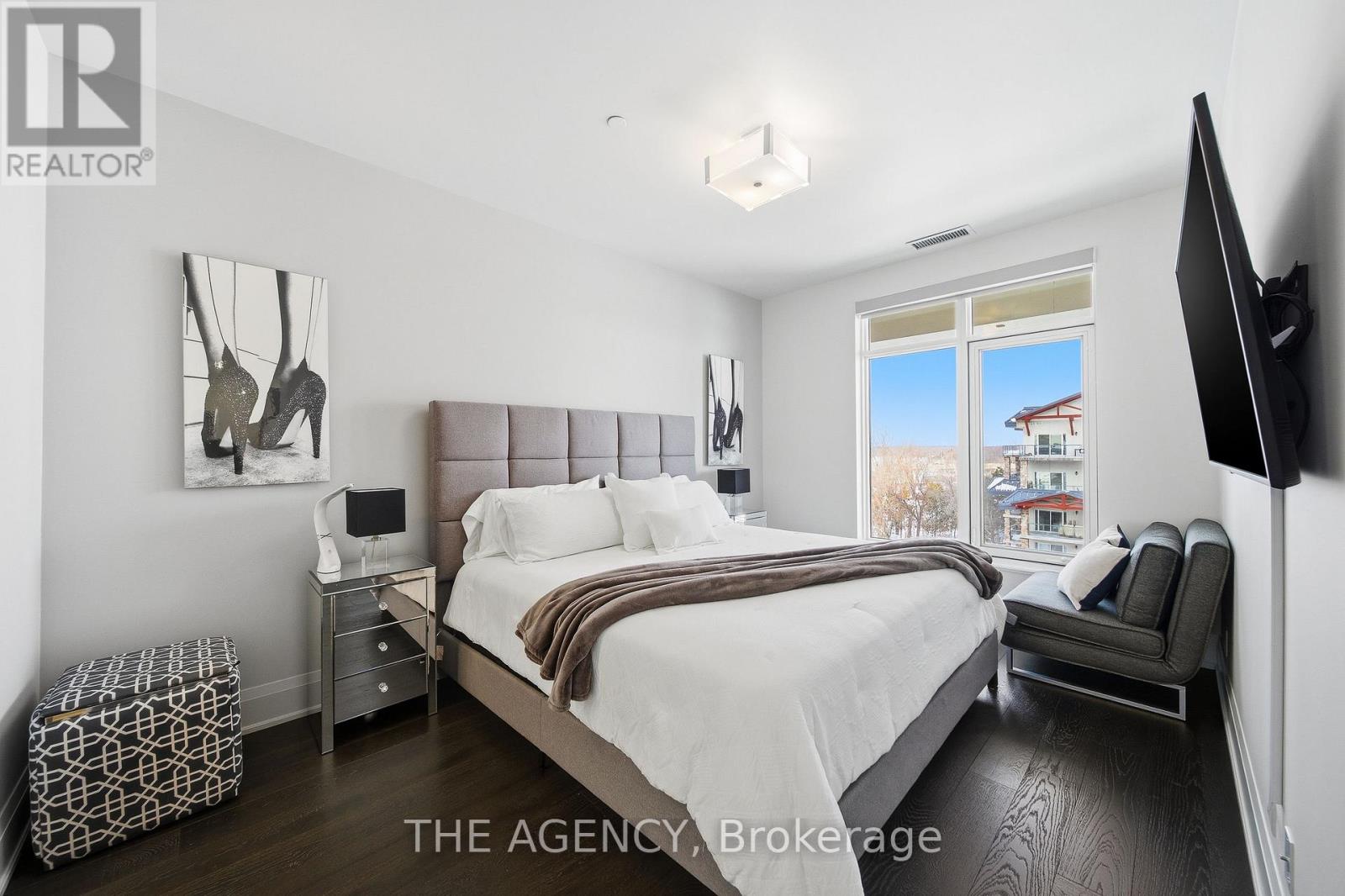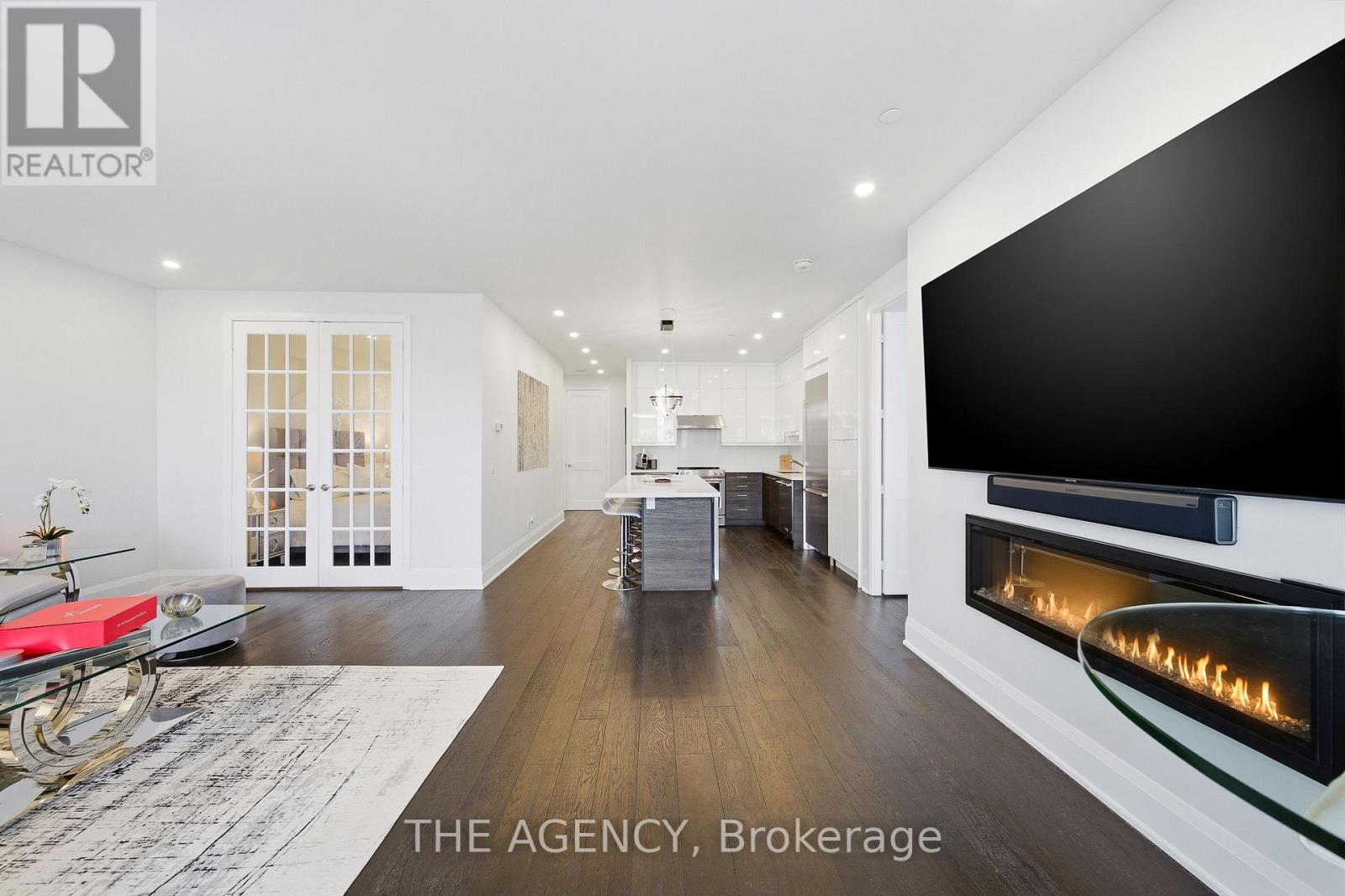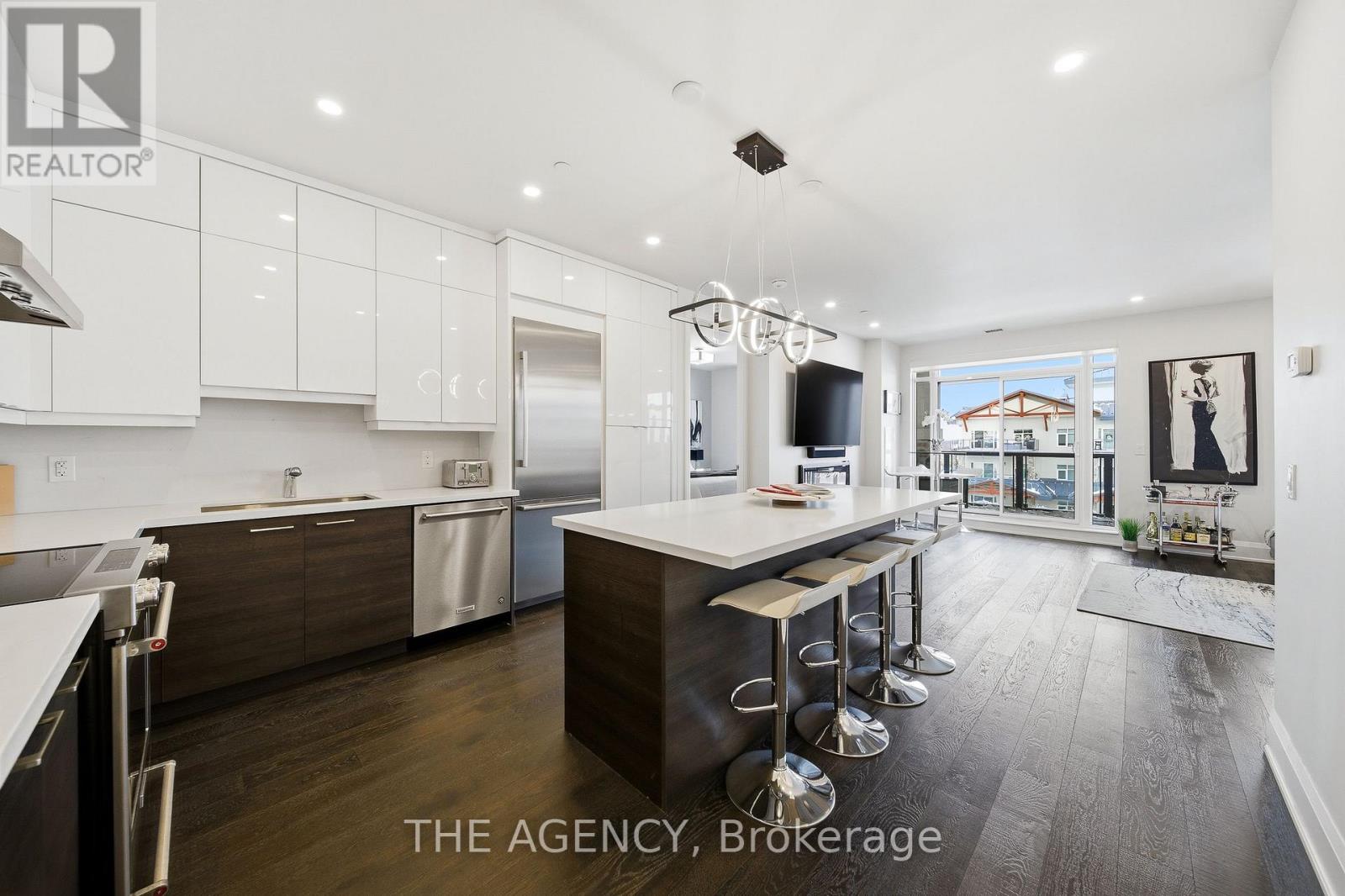 Perched at the north end of Lake Simcoe and just minutes from downtown Orillia and Casino Rama, this luxurious 2-bedroom, 2-bath waterfront condo offers over 1,200 sq. ft. of maintenance-free living. Featuring soaring 10-ft ceilings, wide-plank flooring, and a custom chef's kitchen with quartz countertops, upgraded stainless steel appliances, and oversized island with breakfast bar. The sun-filled great room includes a modern linear electric fireplace and sliding doors to a private lakefront balcony with gas BBQ hookup-perfect for enjoying stunning sunrises and sunsets. The spacious primary suite accommodates a king-size bed and offers walk-through closets and a spa-inspired 5-piece ensuite. A versatile second bedroom with French doors is ideal as a guest room, den, or office, located next to a stylish 3-piece bath. Enjoy resort-style amenities including fitness centre, sauna, pool, hot tub, theatre, party room, outdoor terraces, guest suite, and more. Boat slips available for rent right outside your door. Includes 2 parking spaces and storage locker. Four-season lakeside living at its finest. (id:4555)