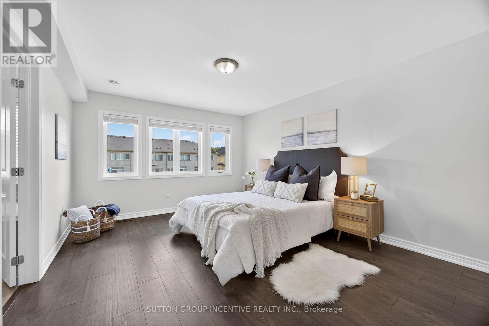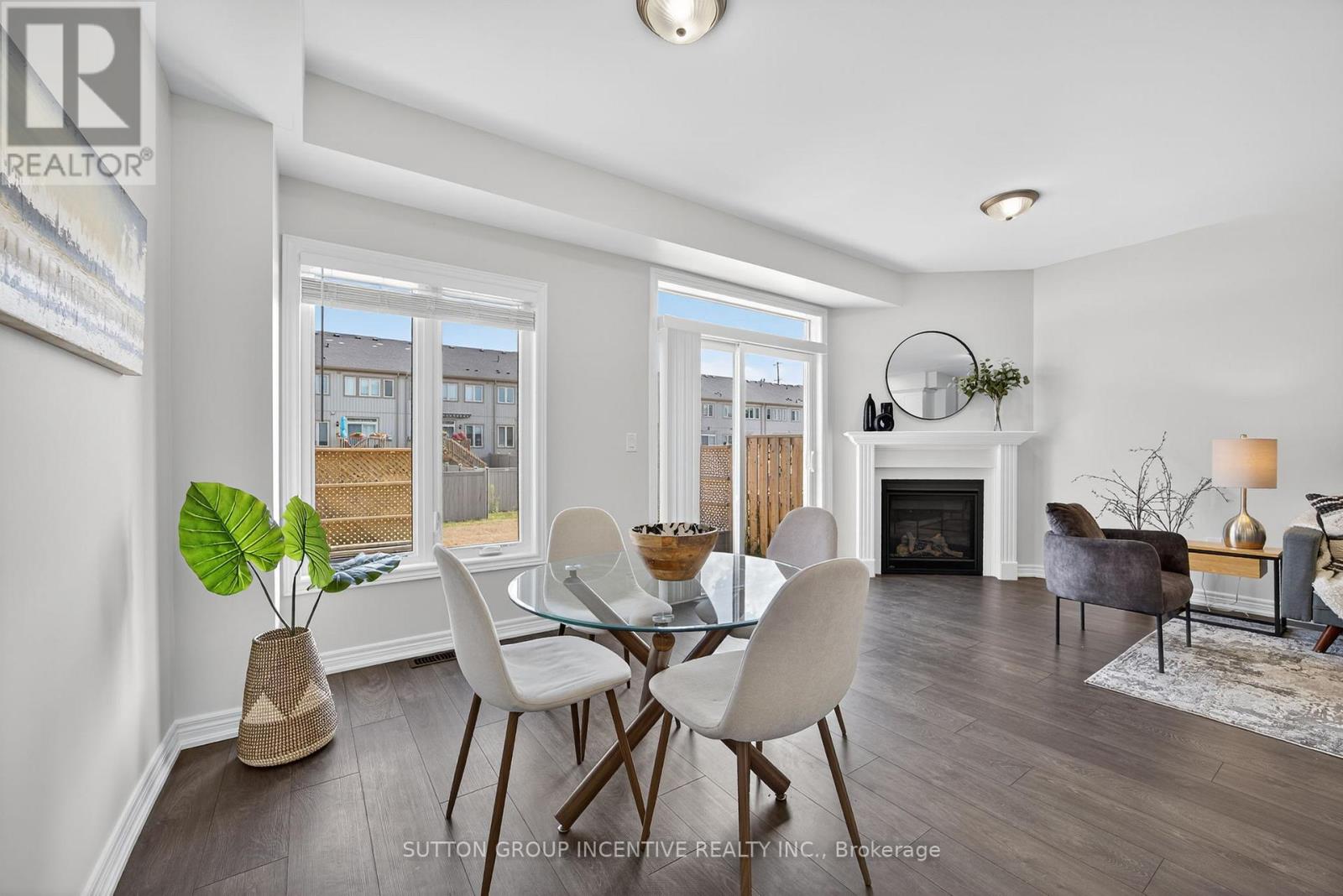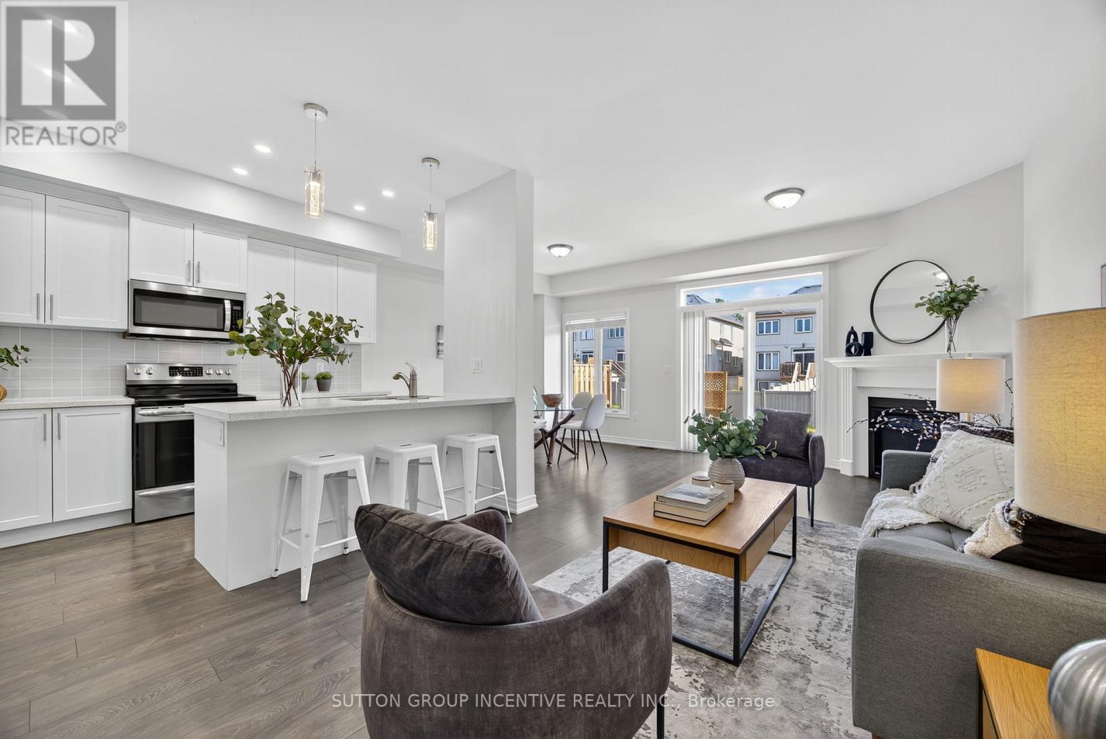 Modern comfort and style in this beautifully upgraded townhouse featuring 3 bedrooms, 3 bathrooms, upstairs laundry, and a fully finished basement (with rough in!) perfectly combining function and open concept contemporary design. Situated on a quiet, secluded crescent yet just moments from Atherley Road, youre only a six-minute drive to downtown Orillia with exceptional restaurants, the famous Mariposa Market, vibrant shops, cafés, and cultural attractions. The main floor impresses with 9-foot ceilings, abundant natural light, and a cozy gas fireplace that sets a welcoming tone when you first walk in. The modern kitchen offers quartz countertops, stainless steel appliances, pot-lights, a sleek subway tile backsplash, and ample cabinetry for storage, meal preparation, or entertaining friends and family! Freshly painted neutral tones and durable dark grey flooring flow throughout, offering carpet-free maintenance, while the upgraded bathrooms feature quartz countertops and thoughtfully selected fixtures throughout the entire home. The primary bedroom includes a large walk-in closet and a luxurious 5-piece ensuite with a tub, glass-enclosed shower, and dual sinks. Inside access to the garage ensures winter convenience, and the rare upstairs laundry adds exceptional practicality. The additional fully finished basement provides ample space for recreation, a home theatre setup, games room, or additional living space. Step outside to enjoy morning walks with your coffee in hand, a 15-minute stroll to Moose Beach and Tudhope Park where you can then enjoy the scenic waterfront trails. The location also offers quick access to the Orillia waterfront, connecting you to both Lake Simcoe and Lake Couchiching for year-round recreation. Nearby grocery stores make daily errands effortless Meticulously maintained by the current owner, this upgraded residence combines thoughtful design, premium finishes, and an unbeatable location, making it move-in ready! (id:4555)