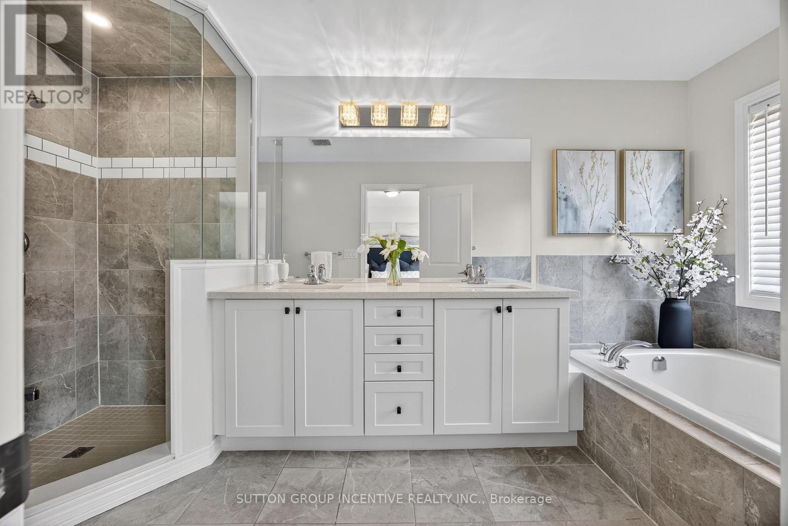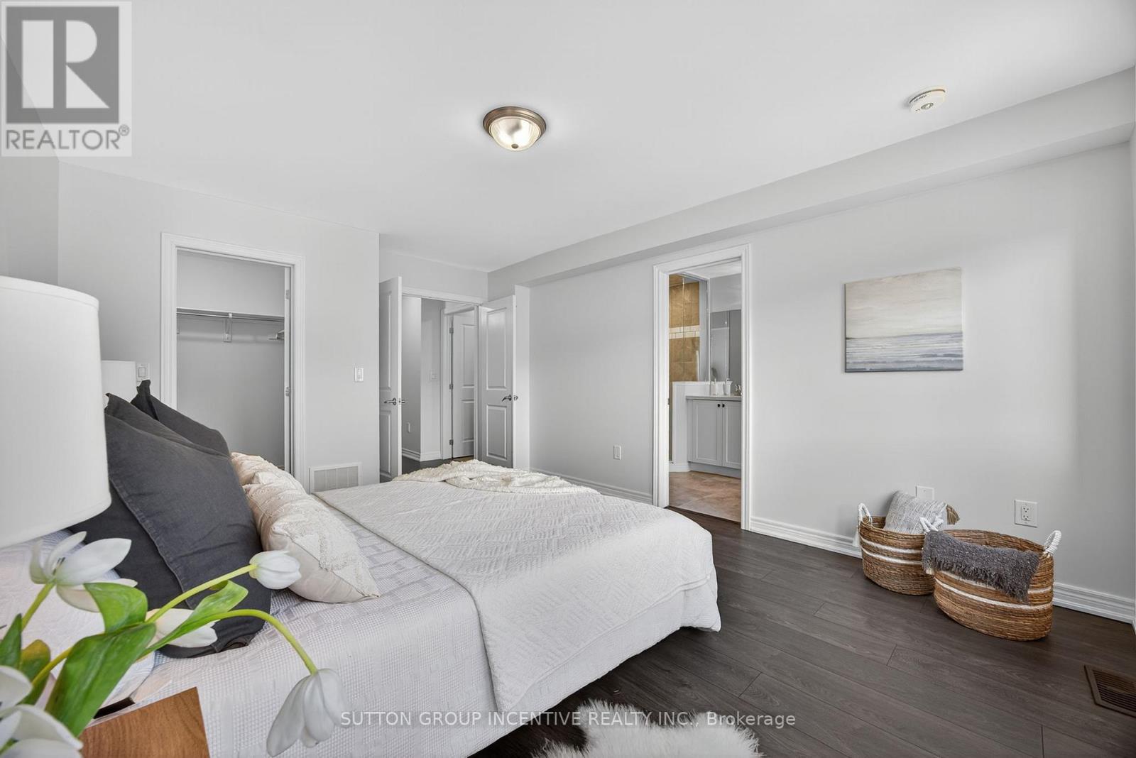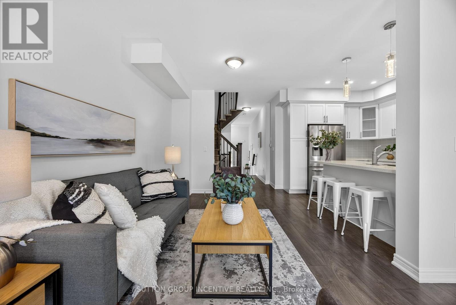 Modern comfort and style in this beautifully upgraded townhouse featuring 3 bedrooms, 3 bathrooms, upstairs laundry, and a fully finished basement (with rough in!) perfectly combining function and open concept contemporary design. Situated on a quiet, secluded crescent yet just moments from Atherley Road, youre only a six-minute drive to downtown Orillia with exceptional restaurants, the famous Mariposa Market, vibrant shops, cafés, and cultural attractions. The main floor impresses with 9-foot ceilings, abundant natural light, and a cozy gas fireplace that sets a welcoming tone when you first walk in. The modern kitchen offers quartz countertops, stainless steel appliances, pot-lights, a sleek subway tile backsplash, and ample cabinetry for storage, meal preparation, or entertaining friends and family! Freshly painted neutral tones and durable dark grey flooring flow throughout, offering carpet-free maintenance, while the upgraded bathrooms feature quartz countertops and thoughtfully selected fixtures throughout the entire home. The primary bedroom includes a large walk-in closet and a luxurious 5-piece ensuite with a tub, glass-enclosed shower, and dual sinks. Inside access to the garage ensures winter convenience, and the rare upstairs laundry adds exceptional practicality. The additional fully finished basement provides ample space for recreation, a home theatre setup, games room, or additional living space. Step outside to enjoy morning walks with your coffee in hand, a 15-minute stroll to Moose Beach and Tudhope Park where you can then enjoy the scenic waterfront trails. The location also offers quick access to the Orillia waterfront, connecting you to both Lake Simcoe and Lake Couchiching for year-round recreation. Nearby grocery stores make daily errands effortless Meticulously maintained by the current owner, this upgraded residence combines thoughtful design, premium finishes, and an unbeatable location, making it move-in ready! (id:4555)