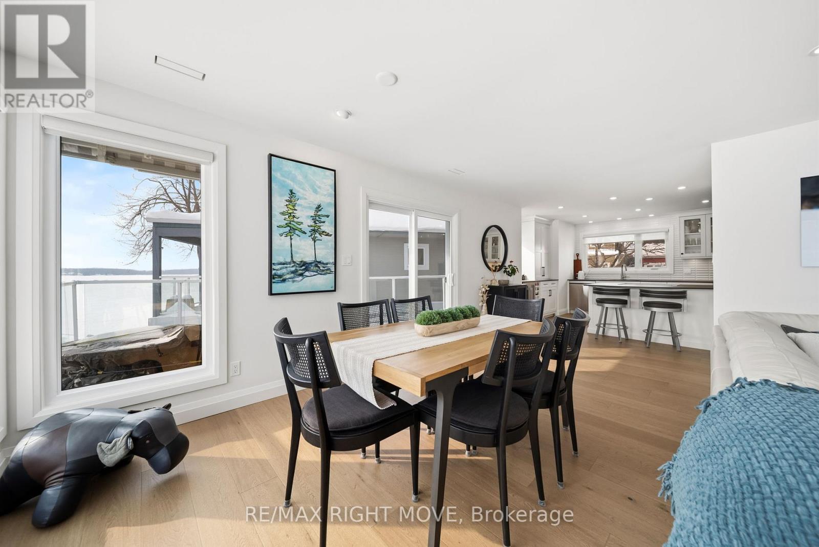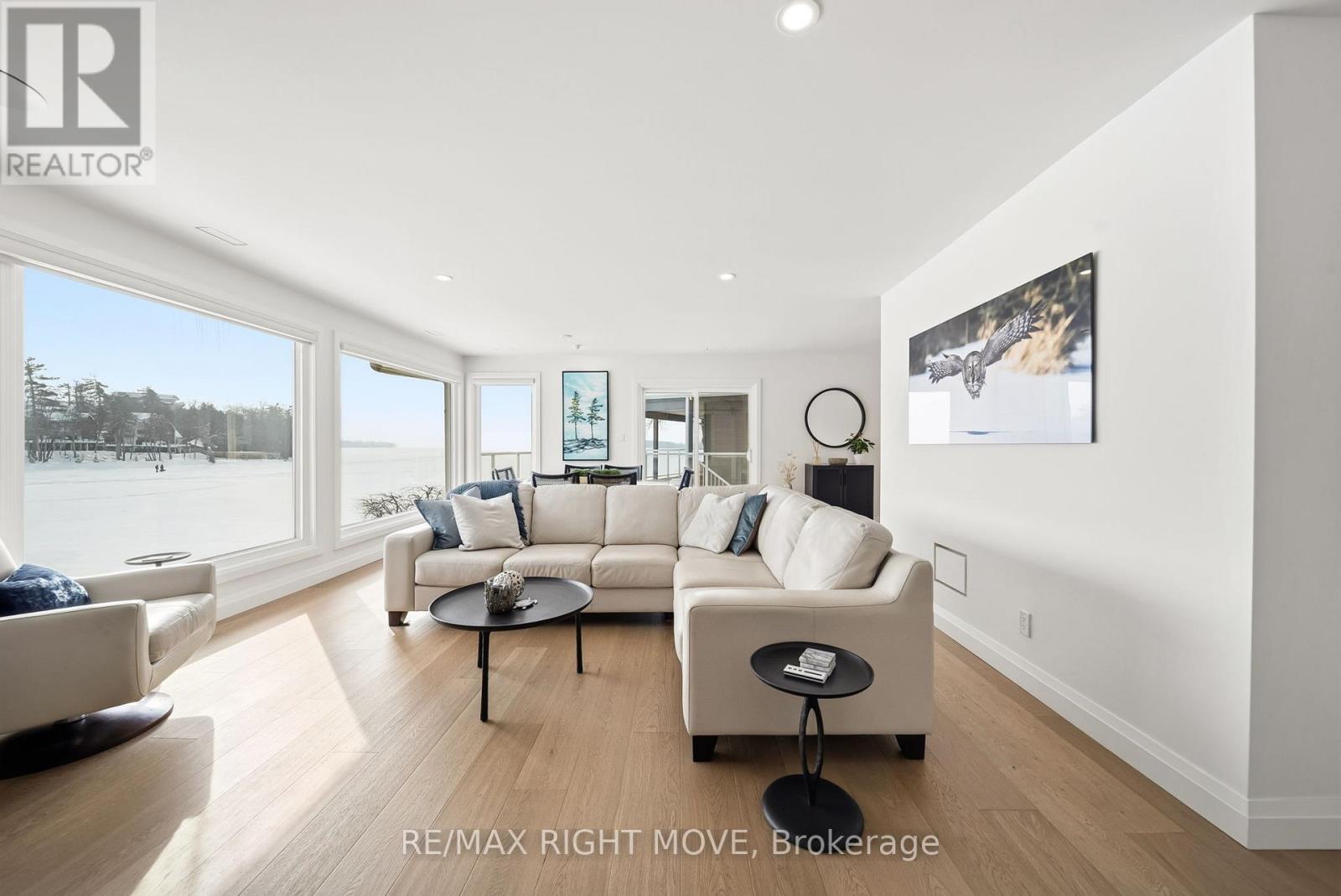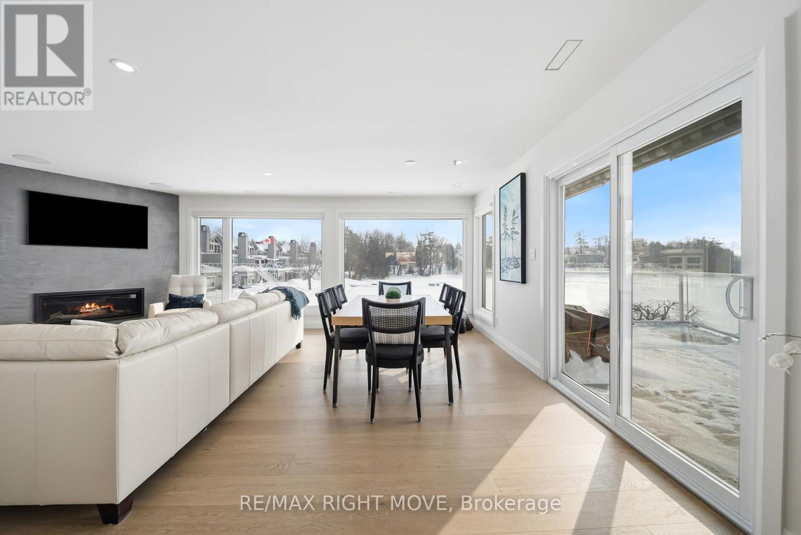 Spectacularly remodelled and exceptionally well finished, this waterfront condominium offers approximately 1,460 square feet of refined living space with breathtaking views of Lake Simcoe from the principal rooms. Extensive renovations were completed in 2023 with careful attention to both function and design, resulting in one of the nicest condominium offerings in Orillia. The kitchen, living, and dining areas are all oriented toward the water, allowing the views to remain the focal point of the home, while a private balcony provides an ideal place to relax and enjoy the lakefront setting.The custom kitchen is both stylish and functional, complemented by quality appliances and a layout well suited for entertaining. The living area features a gas fireplace and in ceiling speakers, creating a comfortable and inviting atmosphere. One of the bedrooms is currently set up as a media room and has been designed specifically for movie nights, while still offering flexibility for other uses. The primary bedroom enjoys a peaceful outlook and custom window coverings. Engineered hardwood flooring, ceramic tile in key areas, custom closets, updated lighting, doors, trim, and hardware reflect the level of care taken throughout the unit. Residents enjoy access to a lakeside pool, spa area with sauna, and social room, along with two parking spaces, one garage and one outdoor, making this a rare opportunity to secure a meticulously updated waterfront condominium with outstanding views and lifestyle appeal. Roger's internet & wifi included in the maintenance fees. The unit comes with it own Boat Slip. (id:4555)