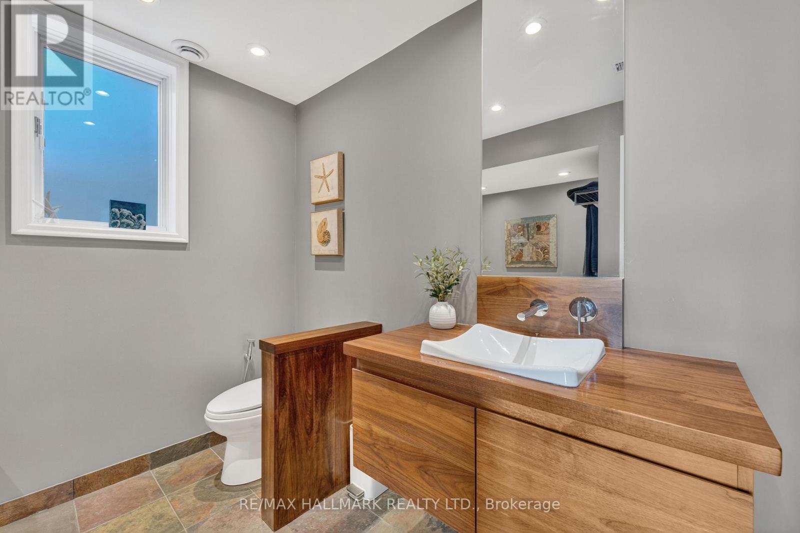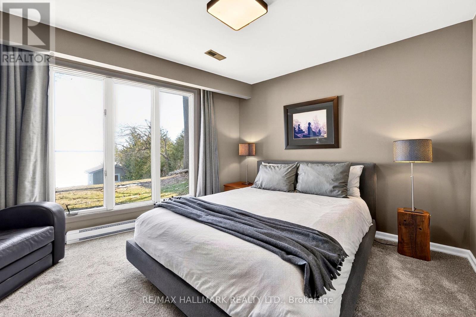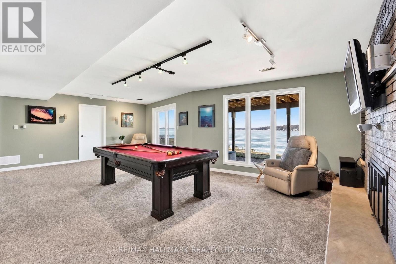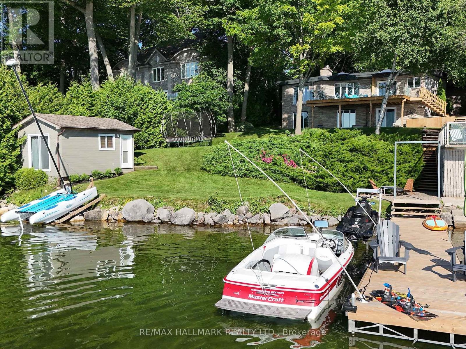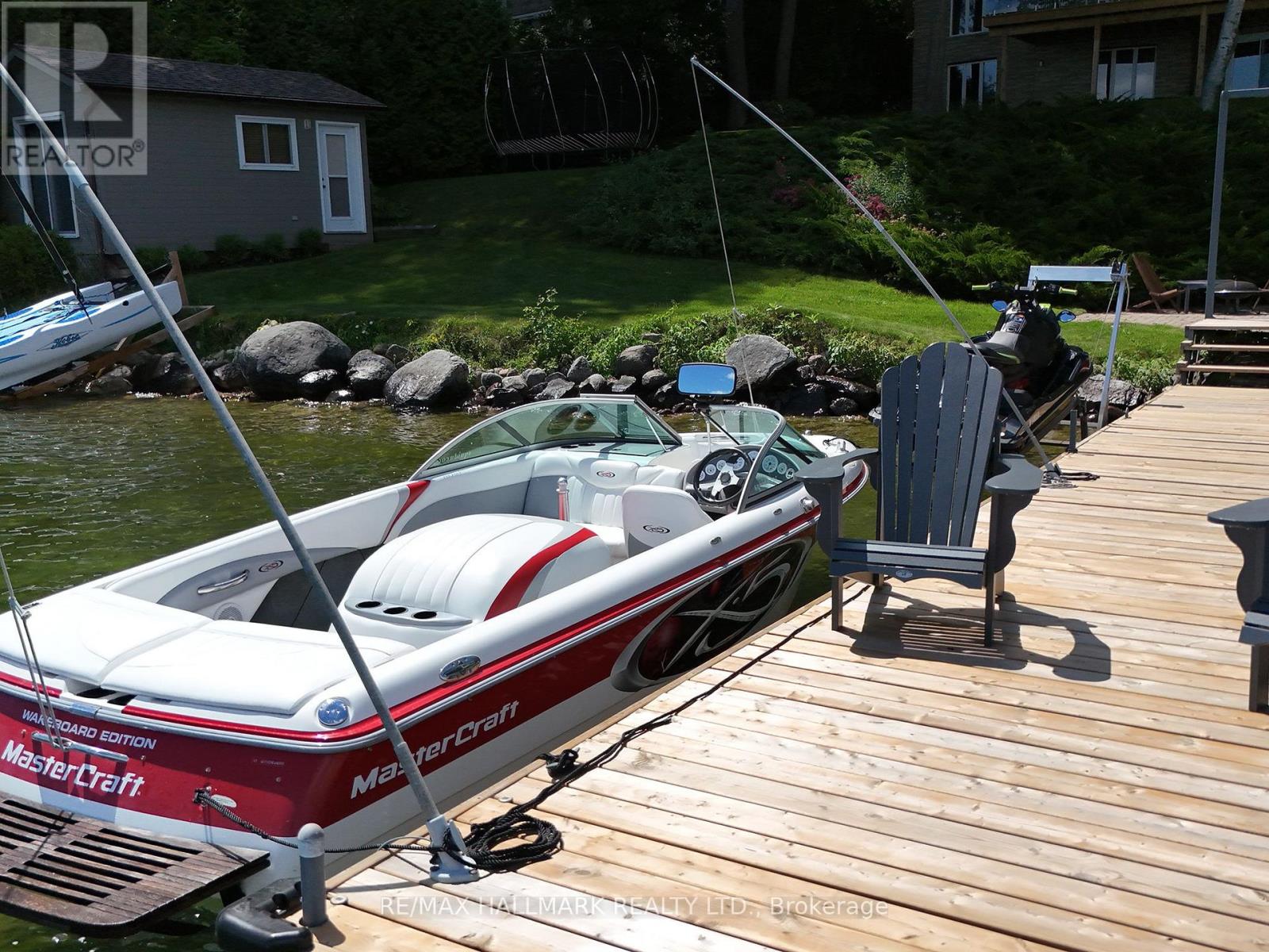 Tucked along the tranquil shoreline of Lake Couchiching, this cherished waterfront stylish residence tells a story nearly three decades in the making. Held by the same family since 1991, this is a rare offering with 100FT of direct lakefront where each sunrise paints the lake in soft gold and every moment feels effortlessly connected to nature. Step inside spanning over 2,900+ sq ft of thoughtfully designed living, where the heart of the home opens into: MAIN, Foyer, Powder room and Laundry/Closet nook leads into culinary-inspired grey kitchen with stone countertops anchors the space, overlooking the dining and living areas framed by wall-to-wall windows where morning light pours in, offering uninterrupted sunrise views across the water, an everyday luxury that never fades. As the day winds down, retreat to the family room where western skies glow with sunset hues, creating the perfect backdrop to relax and recharge. Primary suite is complete with its own ensuite bath and generous his+hers closets. LOWER GROUND LEVEL, extends the home's story, offering 3 principal size bedrooms, each with ample closet space, a beautifully appointed 4-piece spa-inspired bath with slate tile finishes & heated floor. Designed for both comfort and connection, this level becomes the ultimate gathering space, featuring a recreation room with fireplace, full bar with kegerator, and a sauna for moments of indulgent escape. EXTERIOR: Hydropool Spa Hot Tub, Boathouse, Sleeping Bunkie furnished for 5 guests. This is a rare blend of legacy, lifestyle, and lakefront living. "This is more than a home, it's a waterfront story waiting for its next chapter." (id:4555)