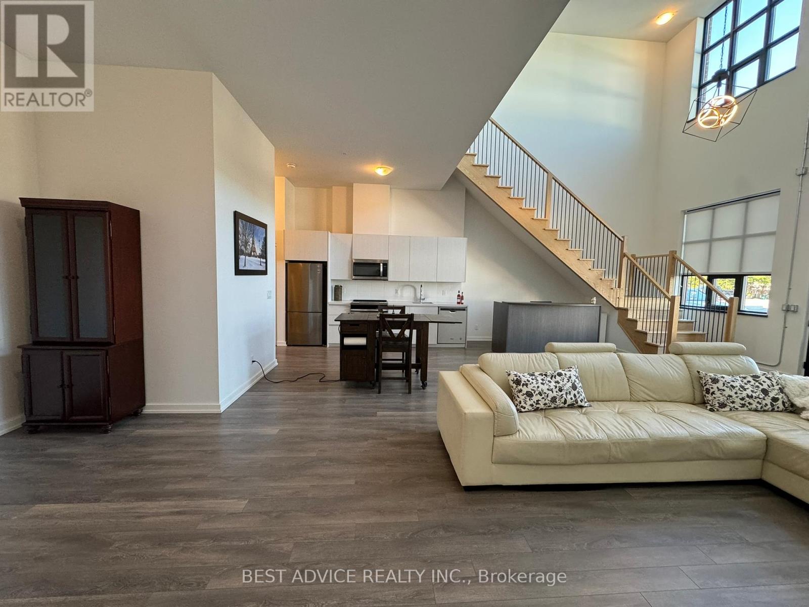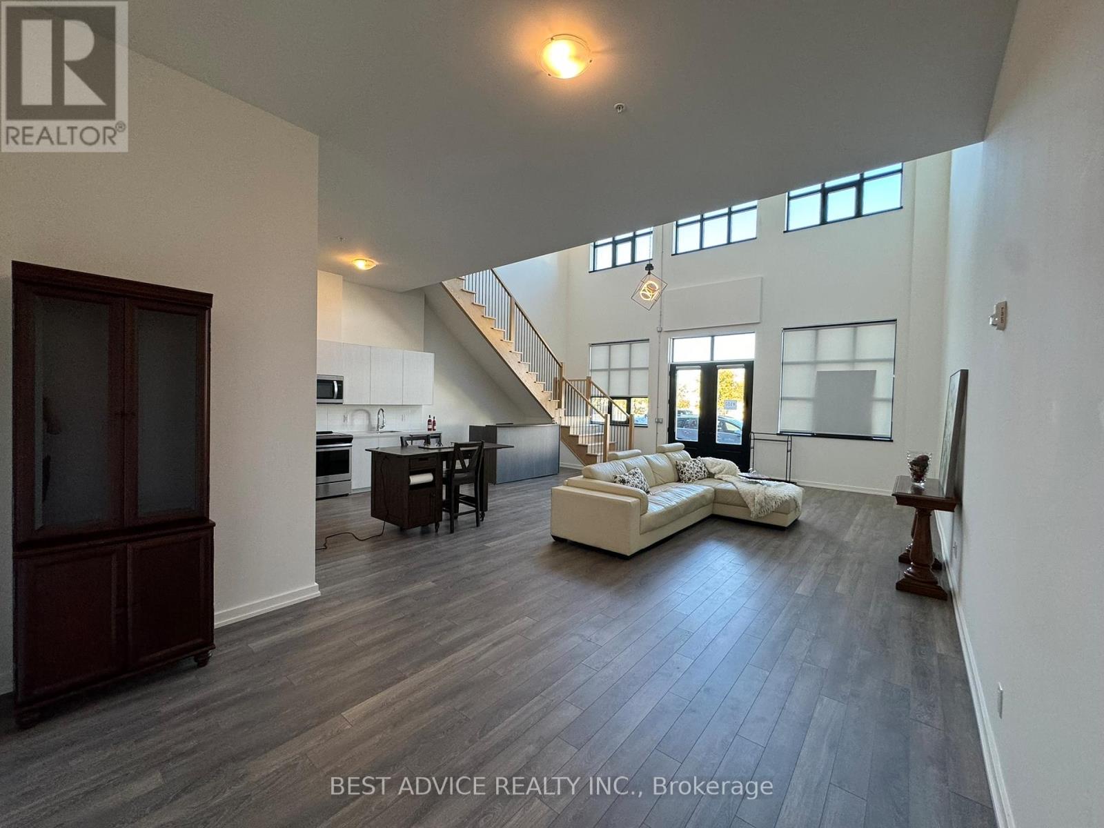 Live & Work from this 2-storey Condo Loft that offers street exposure for a storefront. Not easy to find something like this that can fit into various uses like condo Apartment, condo Townhouse, Live & Work Loft, Retail Store front, Store with an Apartment or service industry store like a Yoga Studio. Separate entrances to the unit from the street, rear lobby and from 2nd floor. 20 Ft high ceiling on main floor has Living/Dining, Kitchen and an option to add a den / office space with sliding doors. The 2nd floor offers lake views, Family room, bedroom, bathroom and laundry. Enjoy Downtown Living & Walk To The Beach, Restaurants, Shops. Walk to the marina, Couchiching park beach, library, Orillia Recreation Center. Soldier's Memorial Hospital 2 minutes away. (id:4555)