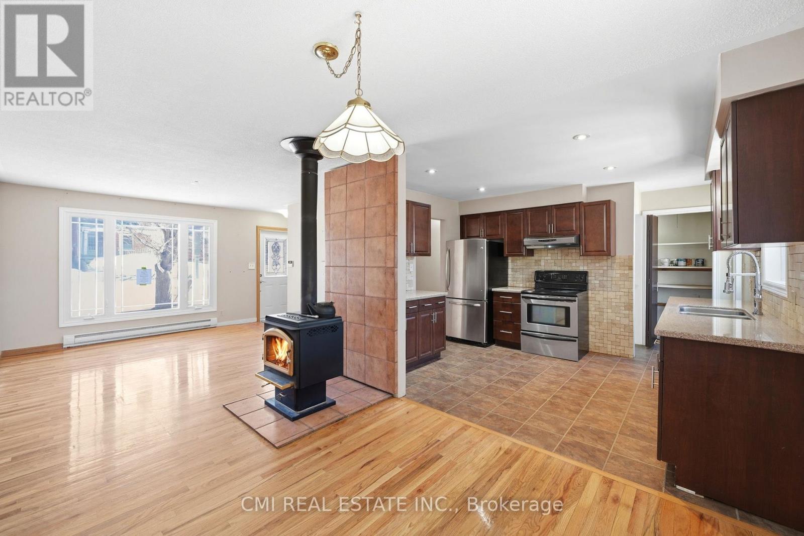Discover the Perfect Blend of Charm and Versatility at 268 Mississauga St W. This move-in-ready bungalow is perfectly situated within walking distance of downtown Orillia's vibrant shops, dining, and scenic waterfront. The home features a highly functional layout designed for flexible living, offering immediate comfort with the seamless potential for a future in-law suite or secondary income stream. The main level boasts three sun-filled bedrooms, a full bath, and an inviting open-concept living and dining area anchored by a cozy wood-burning stove-a charming feature that provides essential energy resilience and warmth during winter storms. The fully finished lower level expands your living space with a massive family room, a fourth spacious bedroom, and a three-piece bath/laundry combo. Outside, the generous backyard features a tiered deck prepped for an above-ground pool, perfect for summer entertaining. Complete with an attached garage featuring a high-capacity storage loft, this property is a standout opportunity for families and investors seeking walkability and long-term value in a central Orillia hub. (id:4555)