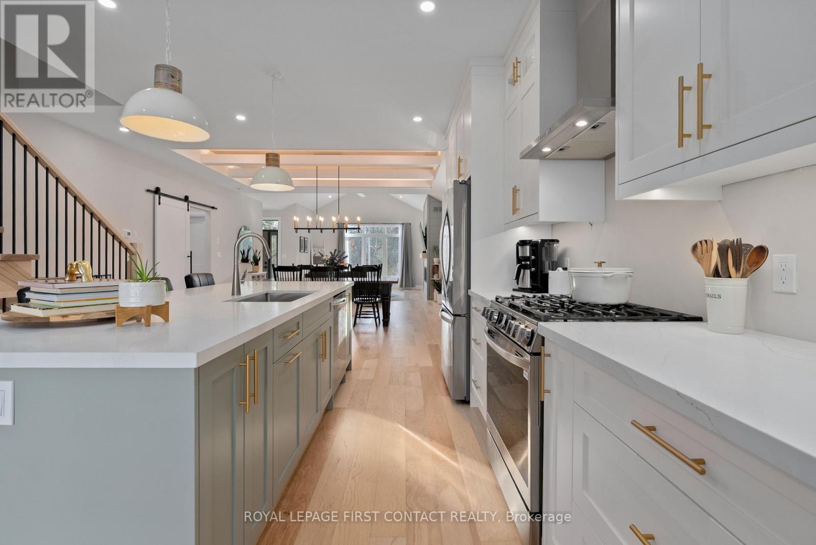 Welcome to 18 Lakeview Road, an exceptional custom residence completed in 2024, where refined architecture and thoughtful craftsmanship define every detail. Privately positioned on a quiet, low-traffic street with nothing behind, this property offers a rare sense of calm and exclusivity-just steps from the lake with deeded private beach access. The interior is a masterclass in modern luxury, featuring expansive open-concept living spaces crowned by dramatic coffered ceilings with warm wood inlays and ambient lighting & soaring ceilings. Wide-plank hickory hrdwd floors flow throughout, a striking custom fireplace feature wall , seamlessly blending sophistication with comfort. At the heart of the home, the designer kitchen impresses with premium custom cabinetry, an oversized quartz island, and top-of-the-line appliances-perfectly tailored for both everyday living and elevated entertaining. The adjoining dining and living areas are beautifully connected, creating an inviting environment for gatherings both intimate and grand. The primary suite is a private retreat, offering generous proportions and a spa-inspired ensuite with heated shower floors & bench . Upper-level laundry adds to the home's effortless functionality. The lower level, with 8-foot ceilings and oversized windows, is already roughed-in for a bath and presents exceptional potential to create additional living. A heated tandem garage with dual access doors and hot and cold water taps speaks to the home's attention to practical luxury. Outdoors, the fully landscaped and fenced yard, paired with covered porches, completes this turnkey offering-crafted with precision and care, and finished to an uncompromising standard. Ideally located near scenic rail trails, close to schools, offering convenient highway access via the 5th Line overpass, with quick connectivity to Barrie, this residence is perfectly suited for discerning buyers seeking a low-maintenance luxury lifestyle in a tranquil lakeside setting. (id:4555)