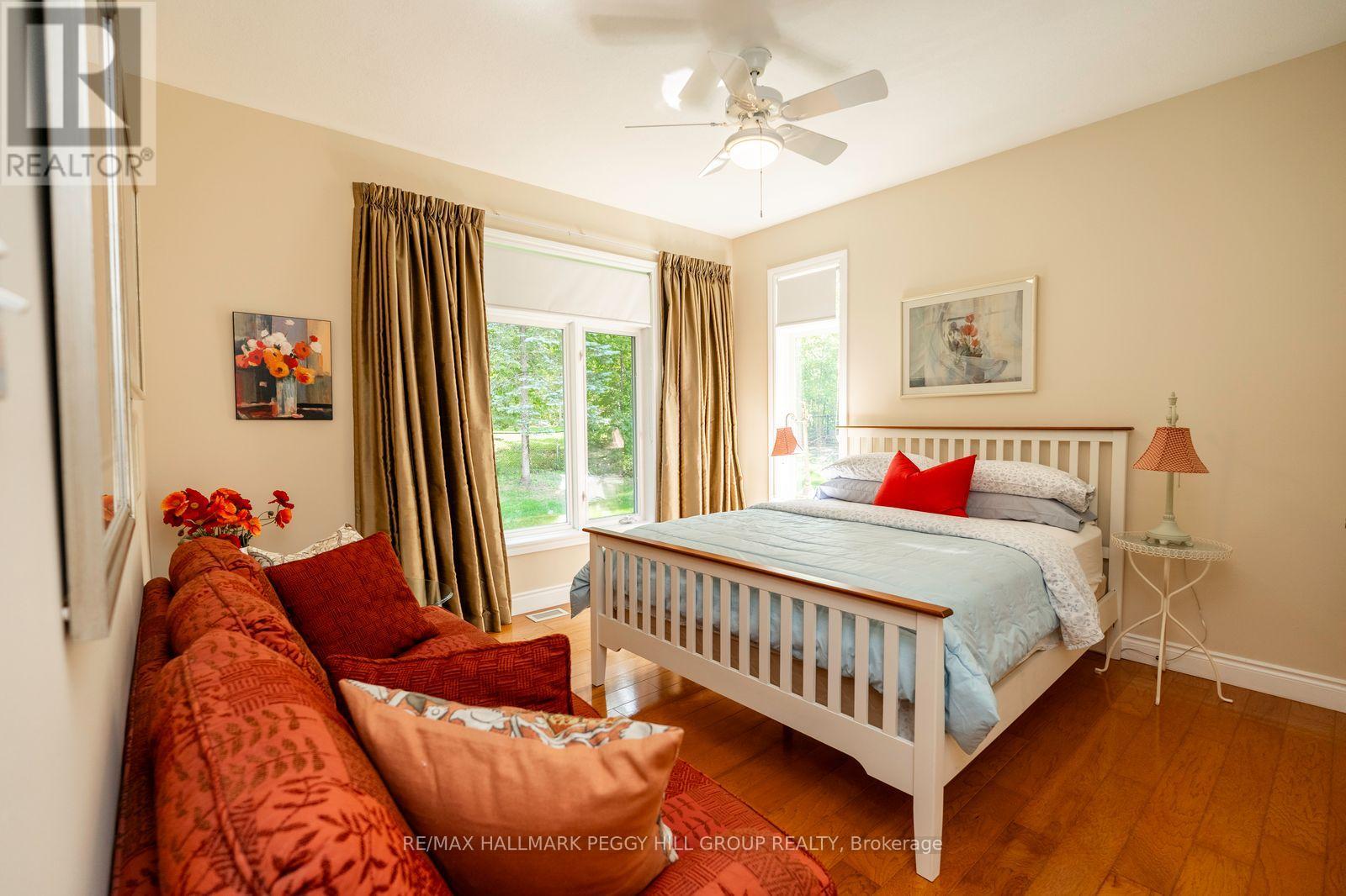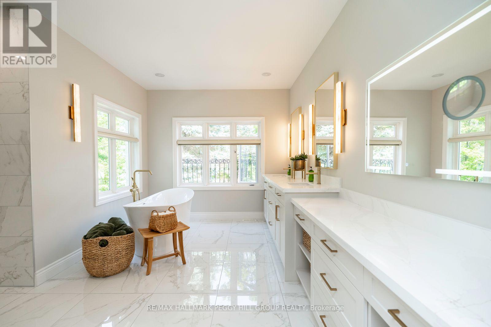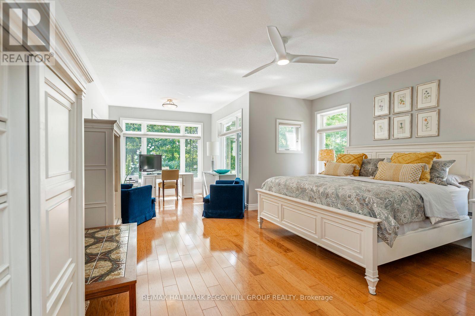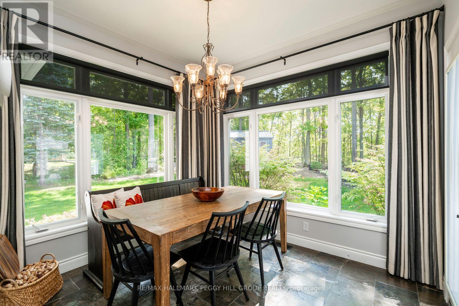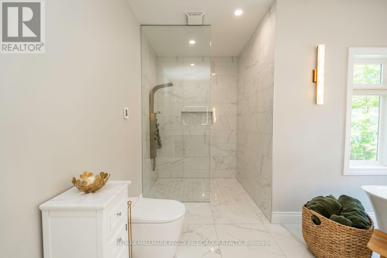 8,000 + SQ FT ESTATE ON 1.33 ACRES WITH RESORT STYLE BACKYARD, POOL, HOT TUB, TRIPLE CAR GARAGE & ADDITIONAL LIVING QUARTERS! Situated in one of Oro-Medonte's most prestigious enclaves, this bungalow offers over 8,000 sq ft on 1.33 acres of landscaped grounds with a stately stone exterior. A long driveway provides parking for 16, complemented by a heated 3-car garage with a lift for 4 car capacity and an EV charger. Soaring ceilings, refined craftsmanship and designer finishes define the home. The chef's kitchen impresses with solid wood cabinetry, a massive island, premium appliances, including a $24k Thermador range, while a breakfast nook captures serene forest views. A dining room with a custom-built-in cabinet is perfect for entertaining, and the living room features a stone fireplace and walkout. The primary offers 2 walk-in closets, a walkout to the pool and an ensuite with heated floors, soaker tub, and glass-walled shower. 2 additional bedrooms share a 4-piece bath, with a powder room, laundry and mudroom completing the level. The walkout basement boasts 3 additional bedrooms, including one with a semi-ensuite 4-piece bath, a 2-piece bath, a spacious den/craft room, and a rec room featuring a double-sided fireplace, wet bar, pool table, and games area, and a walkout to the backyard. Above the garage, a private living area with a separate entrance includes a kitchen, living and dining space, bedroom, laundry hookups, and independent heating/cooling. The backyard presents an inground saltwater pool with a waterfall, hot tub, pool house, gazebo, patio, and an 8-zone irrigation system. Upgrades include an aluminum roof (2018), 2 furnaces and 2 A/C units (2022), a generator (2022), Phantom Screens, powered window coverings, a Sonos sound system, wired security, high-end lighting, a striking glass and hardwood staircase and a 9' x 14' sliding glass wall. Minutes to golf, skiing and Lake Simcoe, less than 15 minutes to Barrie and approx. 1 hour to Pearson Airport. (id:4555)