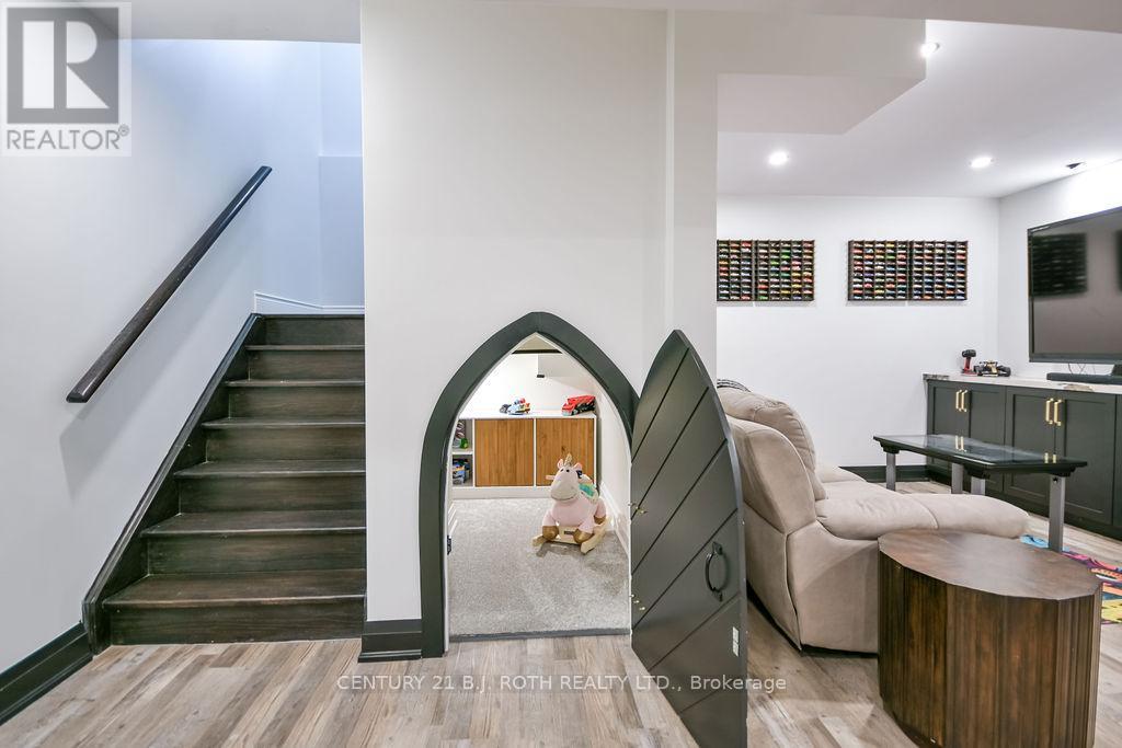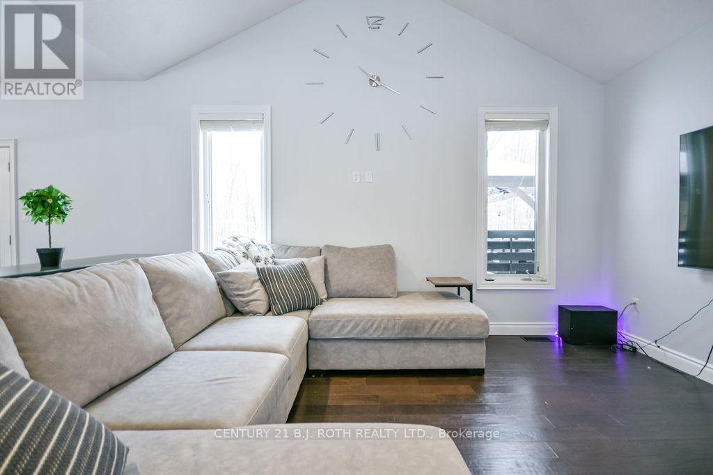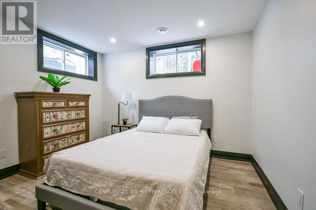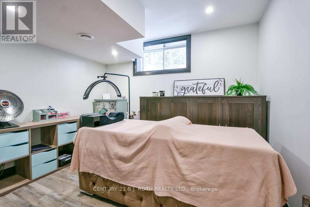 Welcome to this beautiful custom-built bungalow nestled in the sought-after community of Warminster, set on a 1.15-acre treed lot offering privacy, elegance, and resort-style living. This impressive 5 bedroom, 4 bathroom home showcases over $250,000 in upgrades and a thoughtful open-concept design featuring 9-foot ceilings and an abundance of natural light throughout. The entertainment-sized kitchen is a chef's dream with granite countertops, travertine tile, breakfast bar, and stainless steel appliances including a gas range, beverage refrigerator, and dishwasher. The inviting Primary Suite offers a luxurious ensuite and tranquil views, while the main floor laundry and 2-piece powder room add convenience and functionality. Hardwood floors flow seamlessly through the main living areas, enhancing the home's warmth and character. The finished lower level is designed for entertainment and relaxation, featuring two large bedrooms, a spa-inspired bathroom with walk-in shower, a home theatre, video gaming area, and a spacious family room with custom bar area - perfect for hosting friends and family. Step outside to your private oasis: a large entertainment-sized deck overlooks the landscaped yard and a stunning 16' x 32' heated inground pool (2023), creating the ultimate backyard retreat. The attached double tandem oversized garage provides ample space for vehicles, tools, and toys. This beautiful home is also wired for generator power for added security during power outages. Ideally located near parks, soccer fields, baseball diamonds, pickleball courts, and the new Xposed Ball Hockey League Courts, this home offers the perfect balance of luxury, recreation, and community living. Experience the best of country charm and modern sophistication in this exceptional Warminster bungalow - a true entertainer's dream! UPGRADES: Waterproofing of complete basement (2023), Washer & Dryer (2024), Humidifier (2023), Buried electric fence for pets, all deck boards (2024) (id:4555)