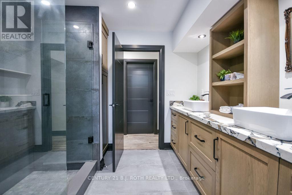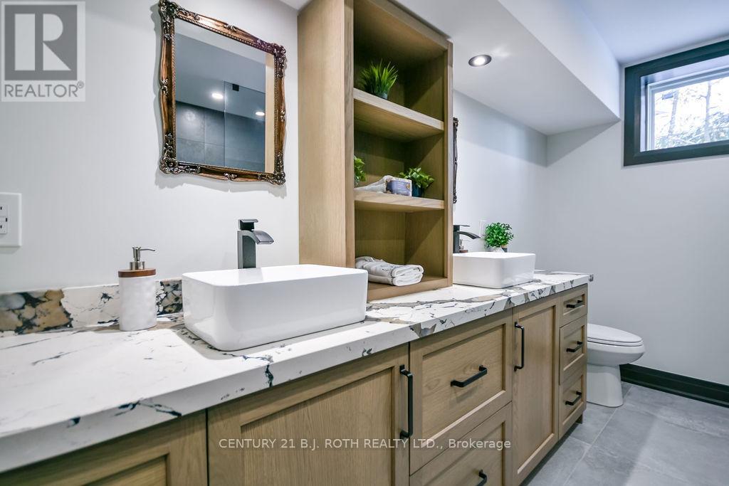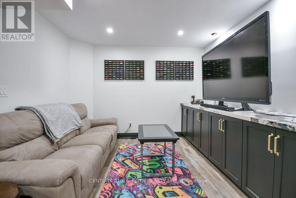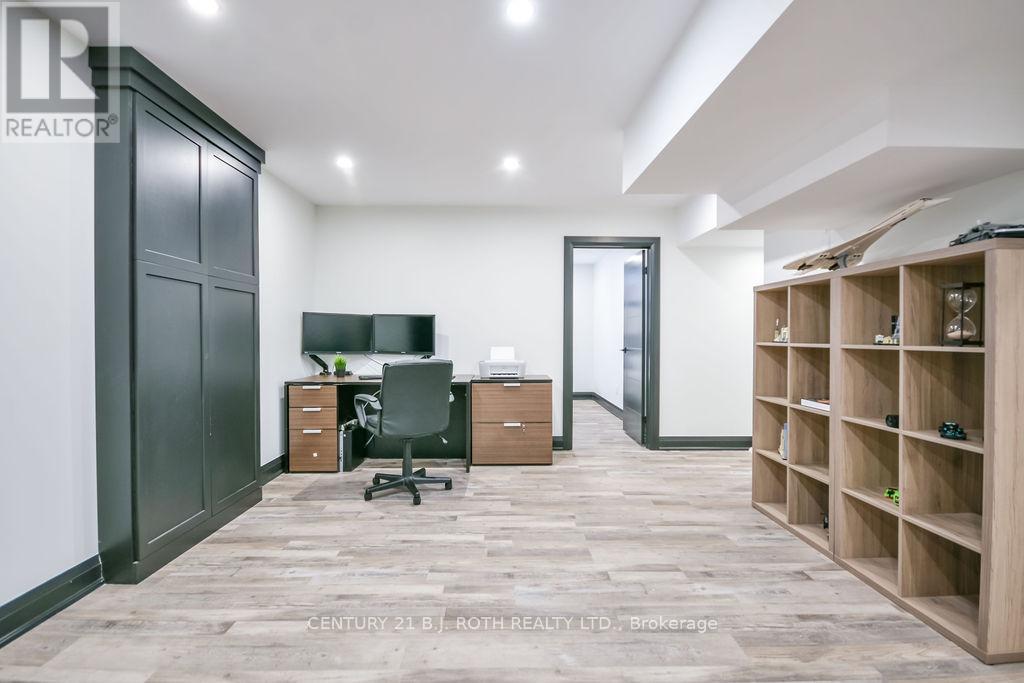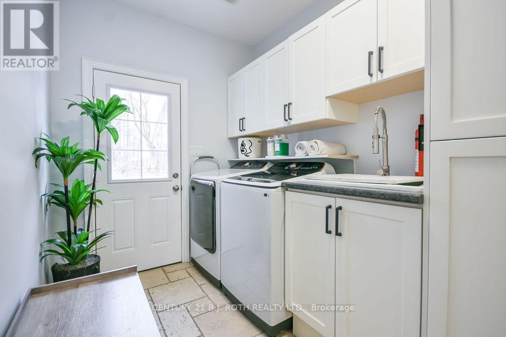 Welcome to this beautiful custom-built bungalow nestled in the sought-after community of Warminster, set on a 1.15-acre treed lot offering privacy, elegance, and resort-style living. This impressive 5 bedroom, 4 bathroom home showcases over $250,000 in upgrades and a thoughtful open-concept design featuring 9-foot ceilings and an abundance of natural light throughout. The entertainment-sized kitchen is a chef's dream with granite countertops, travertine tile, breakfast bar, and stainless steel appliances including a gas range, beverage refrigerator, and dishwasher. The inviting Primary Suite offers a luxurious ensuite and tranquil views, while the main floor laundry and 2-piece powder room add convenience and functionality. Hardwood floors flow seamlessly through the main living areas, enhancing the home's warmth and character. The finished lower level is designed for entertainment and relaxation, featuring two large bedrooms, a spa-inspired bathroom with walk-in shower, a home theatre, video gaming area, and a spacious family room with custom bar area - perfect for hosting friends and family. Step outside to your private oasis: a large entertainment-sized deck overlooks the landscaped yard and a stunning 16' x 32' heated inground pool (2023), creating the ultimate backyard retreat. The attached double tandem oversized garage provides ample space for vehicles, tools, and toys. This beautiful home is also wired for generator power for added security during power outages. Ideally located near parks, soccer fields, baseball diamonds, pickleball courts, and the new Xposed Ball Hockey League Courts, this home offers the perfect balance of luxury, recreation, and community living. Experience the best of country charm and modern sophistication in this exceptional Warminster bungalow - a true entertainer's dream! UPGRADES: Waterproofing of complete basement (2023), Washer & Dryer (2024), Humidifier (2023), Buried electric fence for pets, all deck boards (2024) (id:4555)