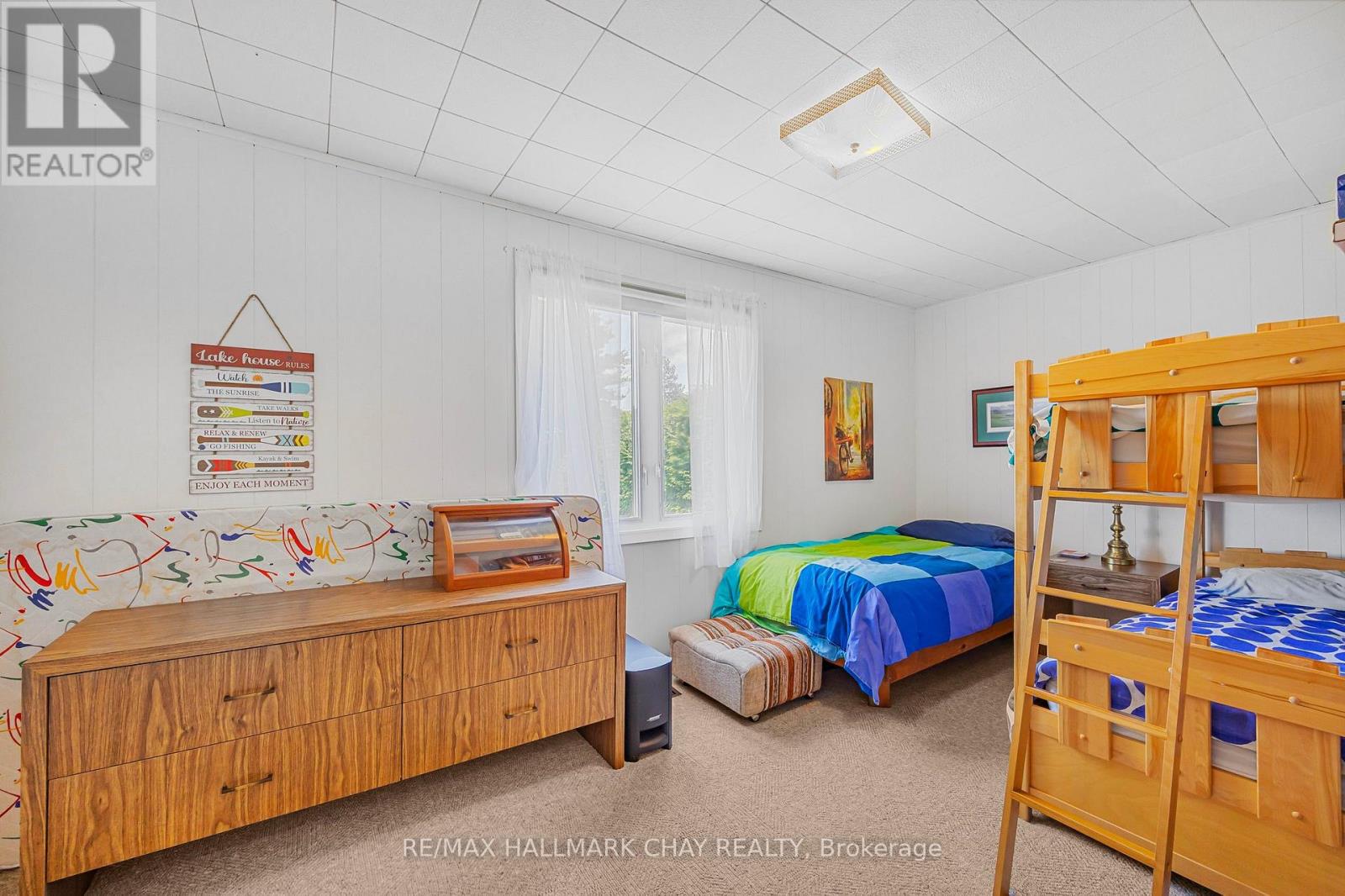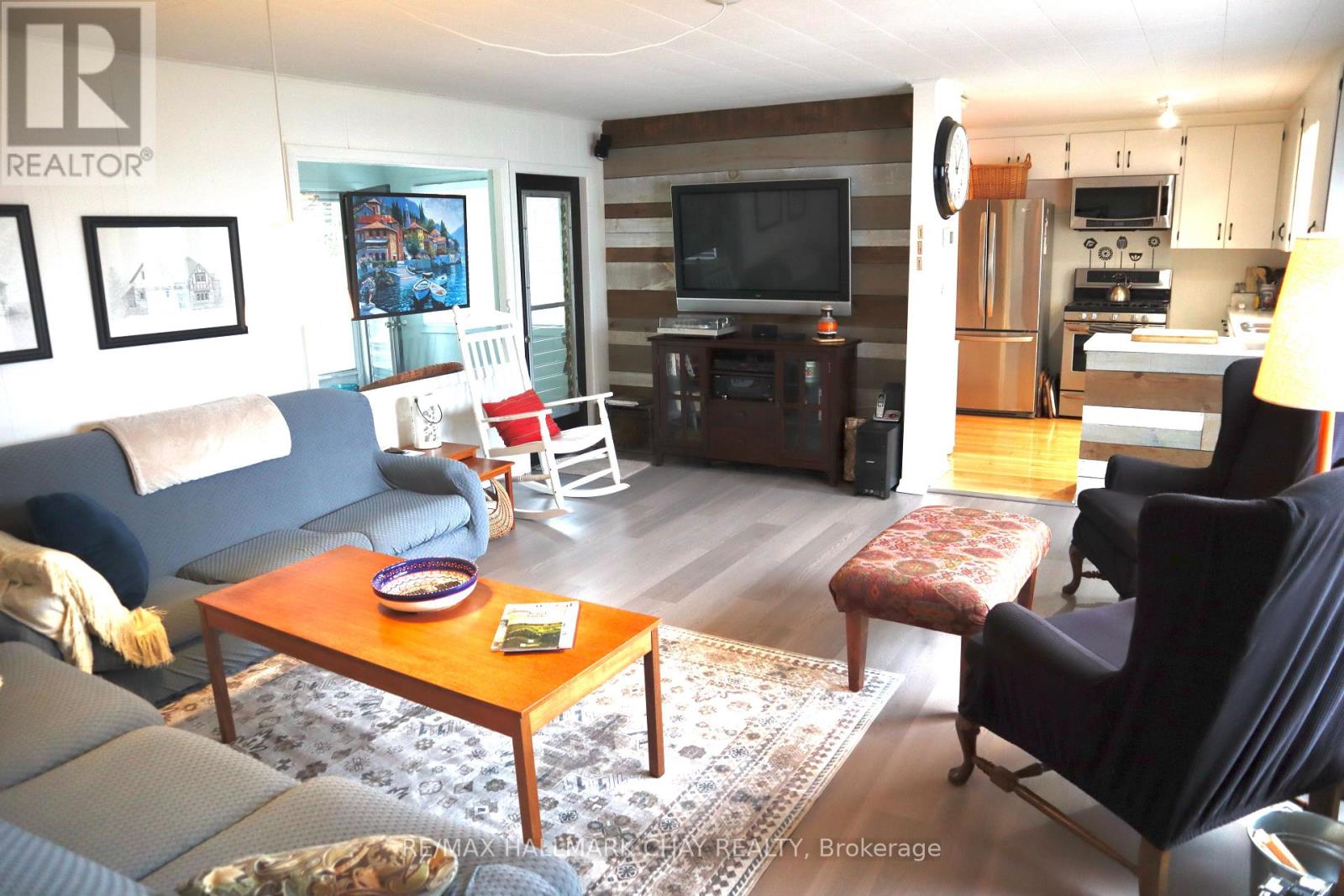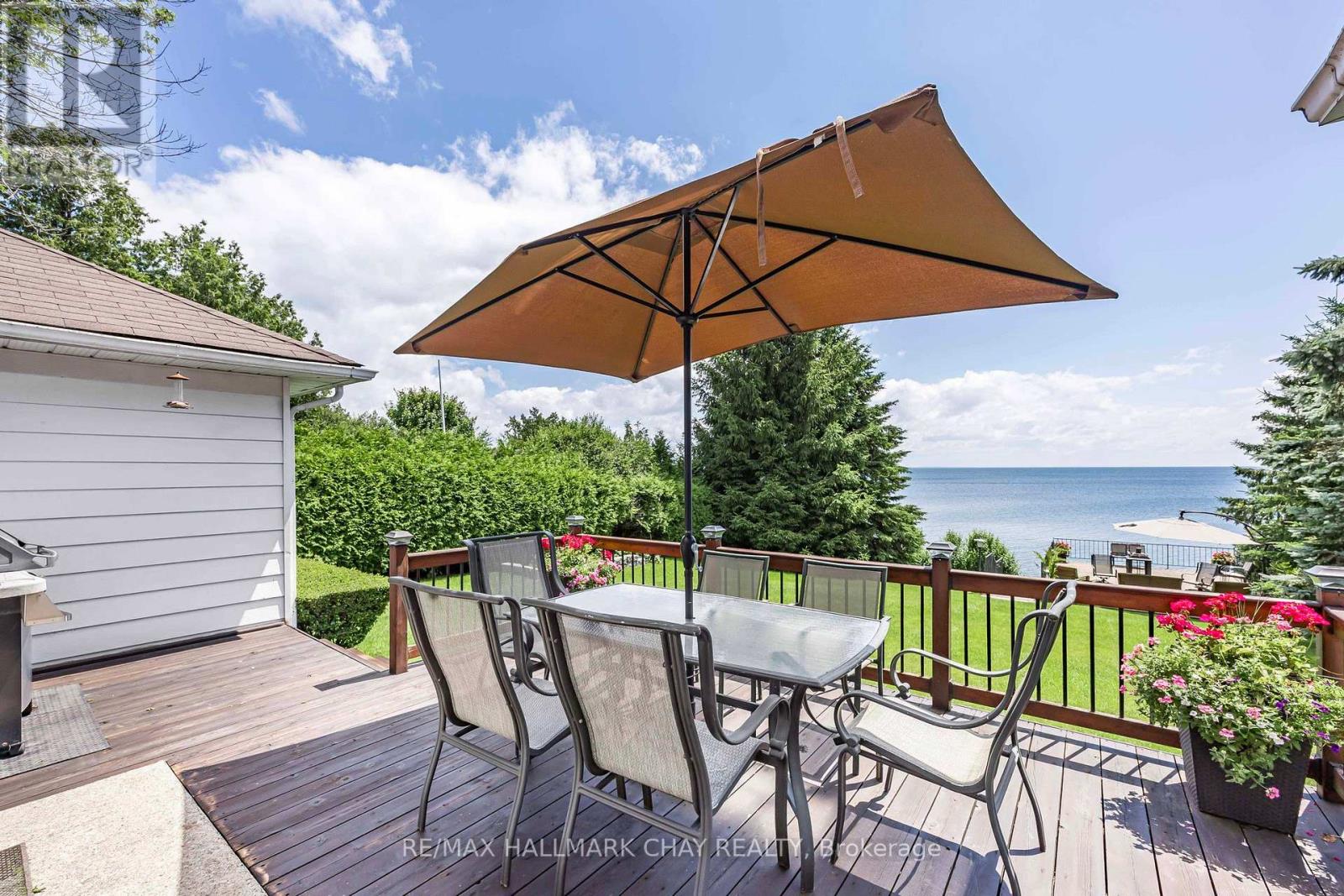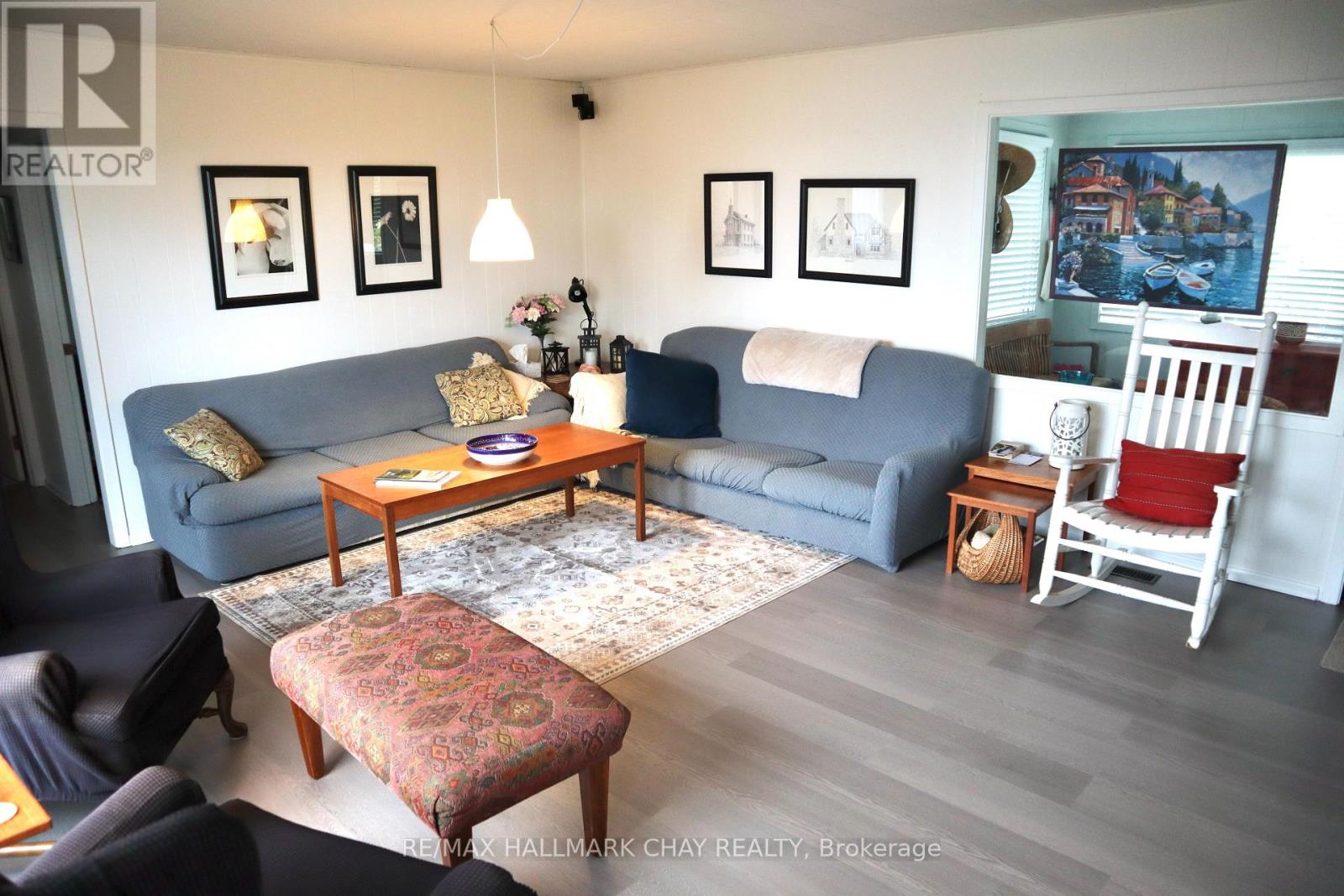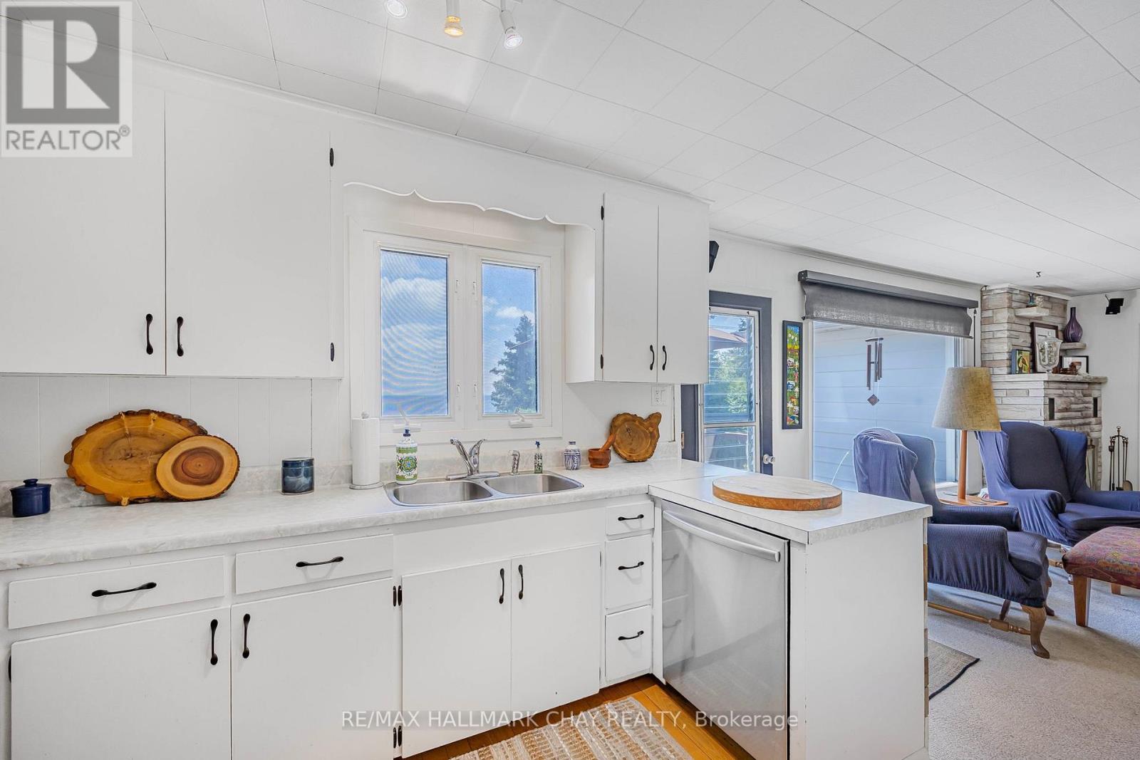Welcome to your private lakeside retreat, featuring 72 feet of pristine, hard-bottom and sparkling, crystal-clear water-ideal for swimming, boating, and unforgettable sunsets. This fully winterized 3-bedroom, 2-bathroom bungalow is nestled on a beautifully treed lot, offering a peaceful natural setting with uninterrupted lake views from the moment you arrive.The open-concept living area showcases new vinyl flooring, a cozy wood-burning fireplace, and a walkout to an expansive deck that extends toward the water-perfect for relaxing or entertaining just steps from the lake. The lakeside eat-in kitchen blends function and scenery, featuring stainless steel appliances including a 6-burner gas stove, fridge, and dishwasher, all complemented by panoramic shoreline views.Wake up to the beauty of the lake in the primary bedroom with ensuite. Two additional bedrooms and a full 4-piece bath provide comfortable accommodations for family or guests. The lower level offers laundry facilities and ample storage space.The true showstopper is the impressive 30' x 33' waterfront deck-an ideal setting for lakeside lounging or summer gatherings, enhanced by the gentle sounds of the water below. Enjoy the ultimate lake lifestyle with a 26.5' x 16' boathouse complete with a marine railway, perfectly suited for your boat and water toys. Above, a 29' x 18' concrete rooftop deck creates an unforgettable space for evening entertaining under the stars.This is more than a home-it's a lifestyle on the lake. (id:4555)