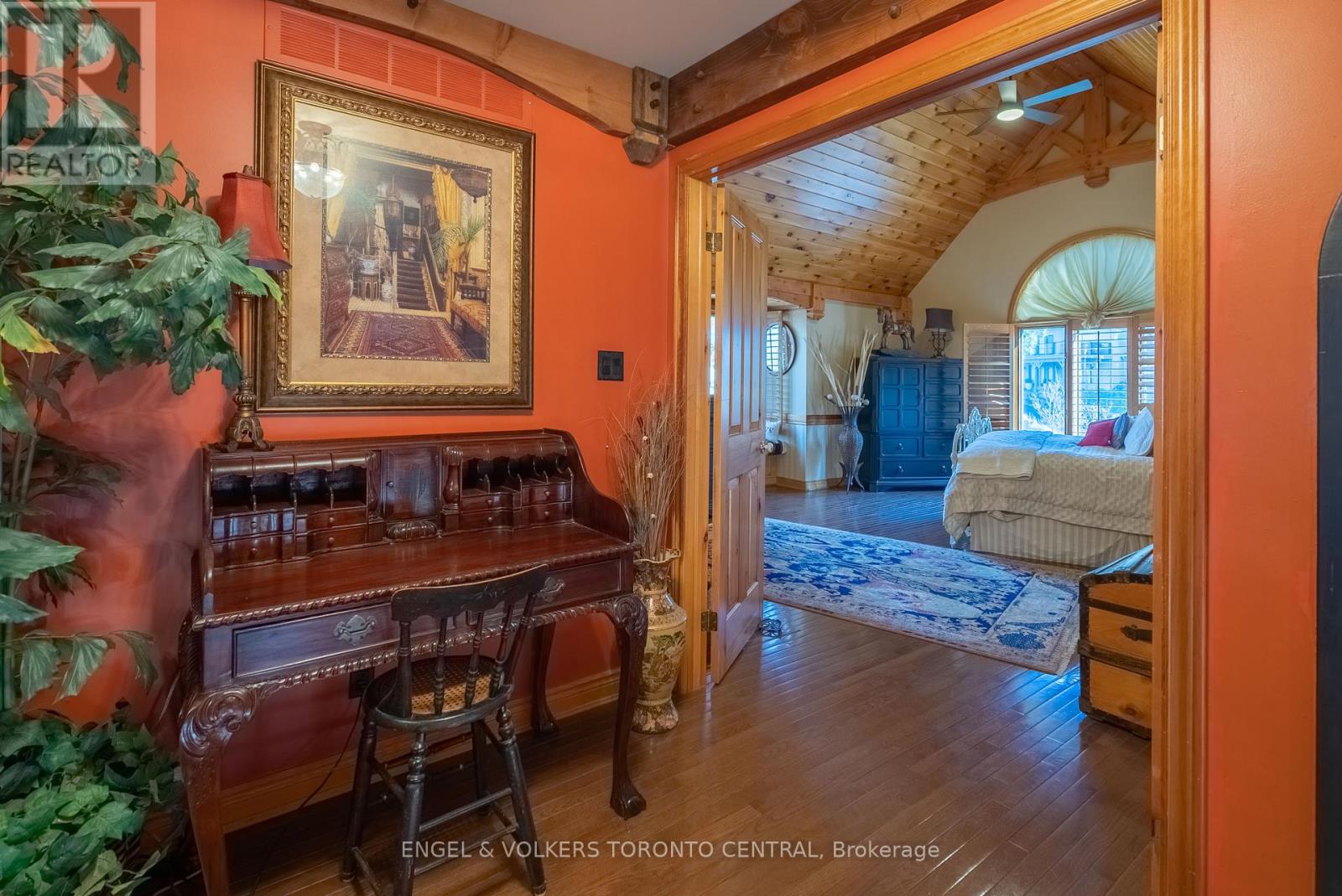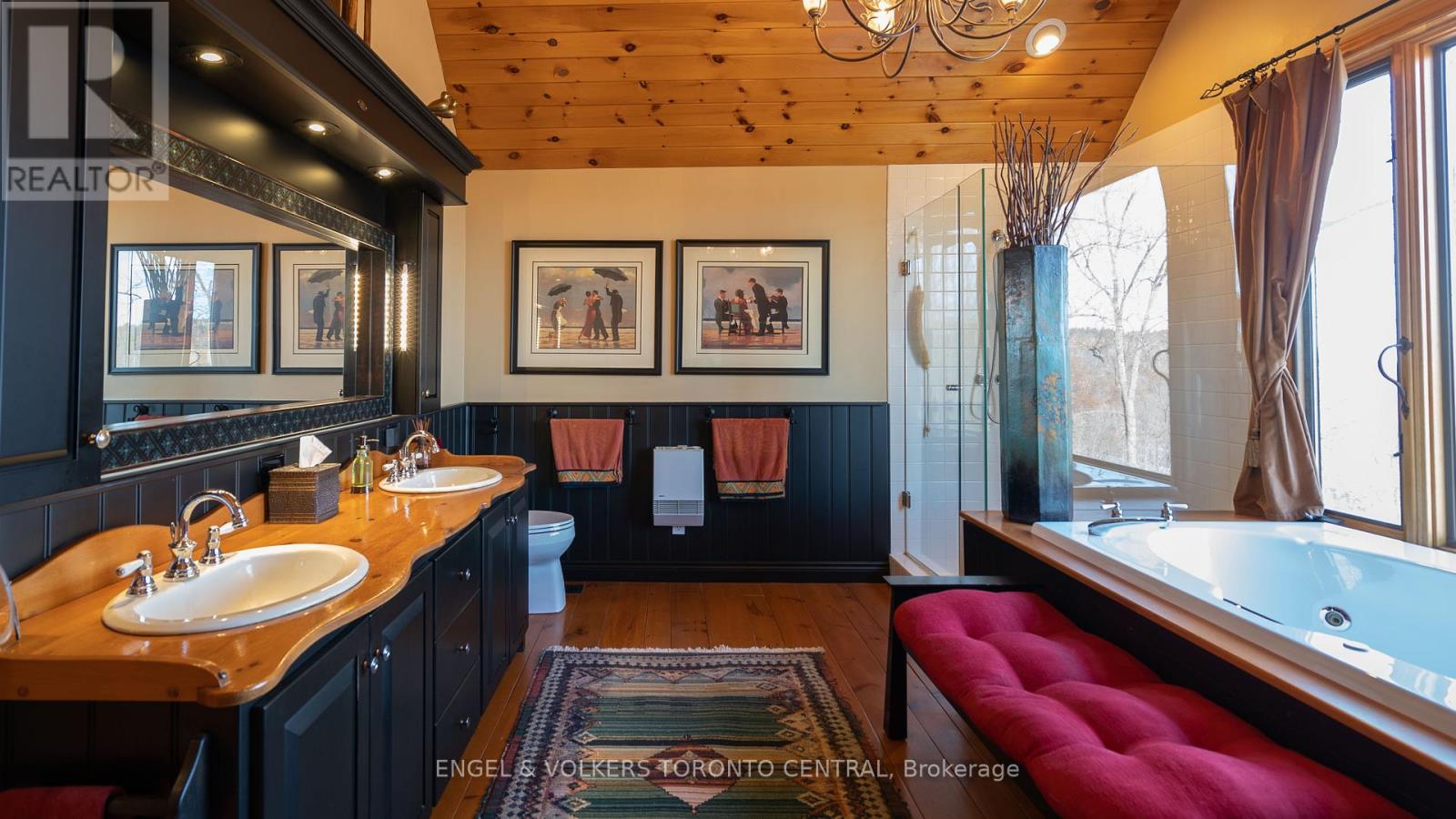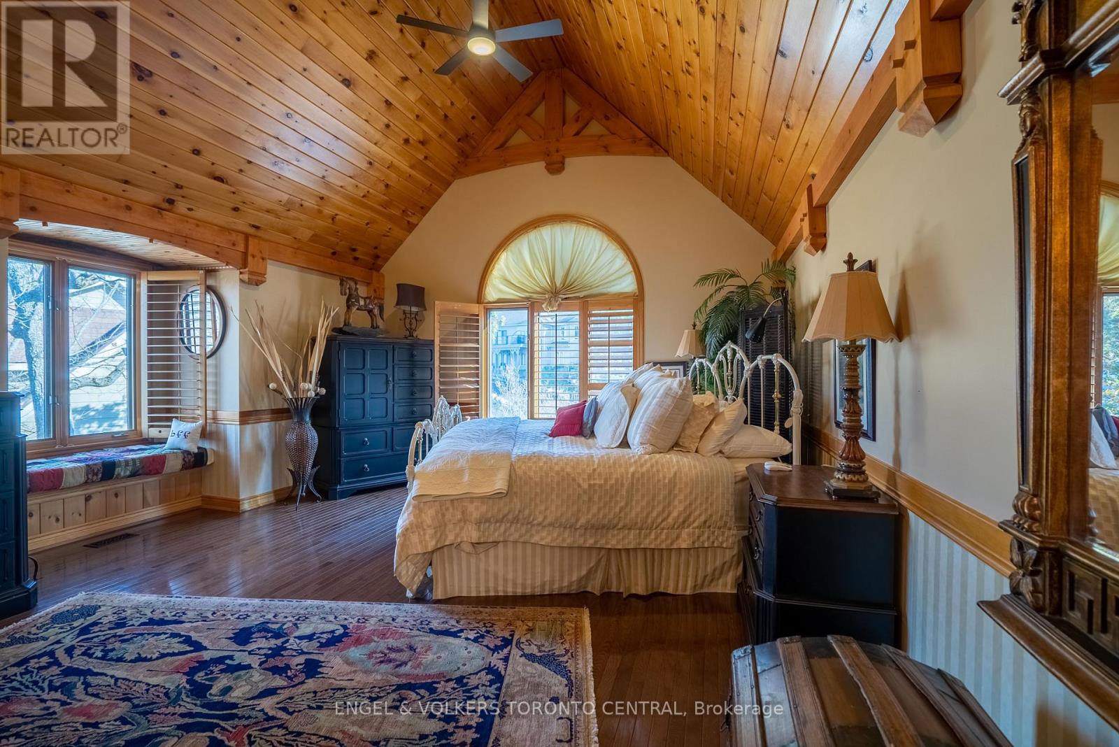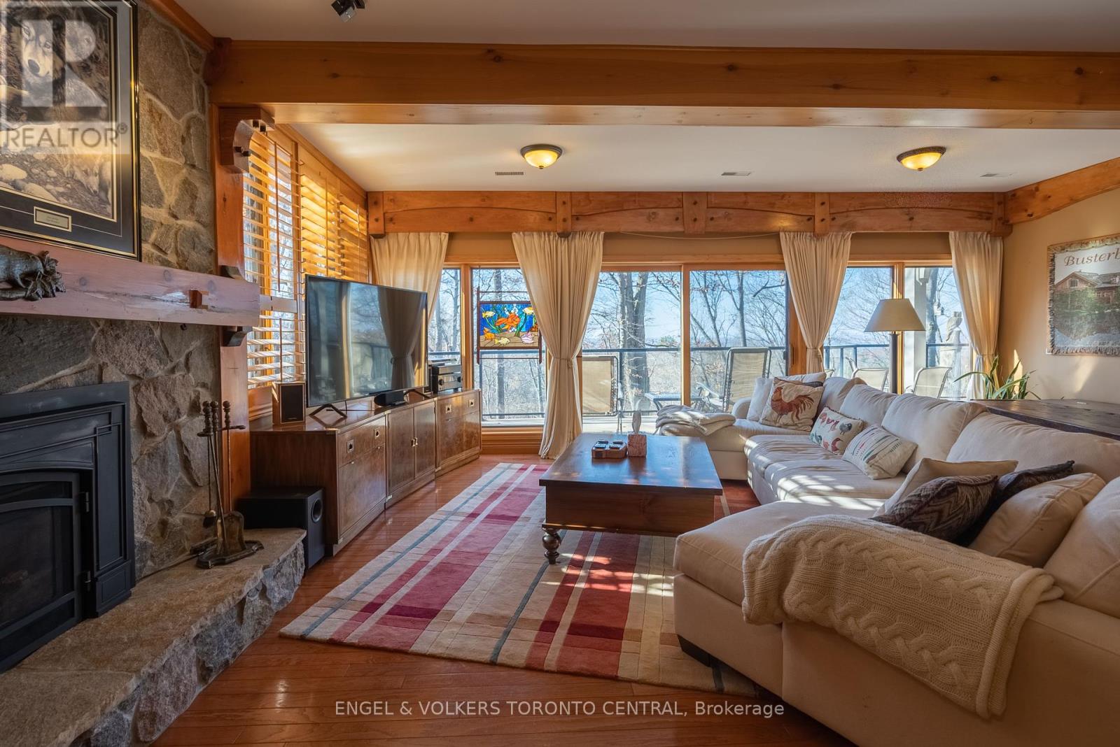 Stunning Executive Chalet Style, located in the Prestigious Highlands of Horseshoe ~ Post & Beam Open Concept Bungaloft With 4 Bedrooms And A Walk-Out Lower Level. Master Bedroom With Privacy In The Loft With Beautiful Ensuite Bathroom Overlooking The Hills And Valley, 2 Walk In Closets, And Additional Storage Rooms. Main Level With Office/Bedroom, Full Bath, Mud Room Laundry + Garage Access. Lower Level Stunning Open Concept Family Room With Fireplace, 2 Walk-Out Patio Doors, Kitchenette/Bar, Wine Cellar, Sauna/Pantry Room, 2 Bedrooms, Huge Walk In Hall Closet + Full Bathroom. Over 4000 Sq Ft Of Living Space! Double Car Garage + Outdoor Shed. Spectacular Views And Breathtaking Sunsets! Fully Furnished + Utilities Included! (id:4555)