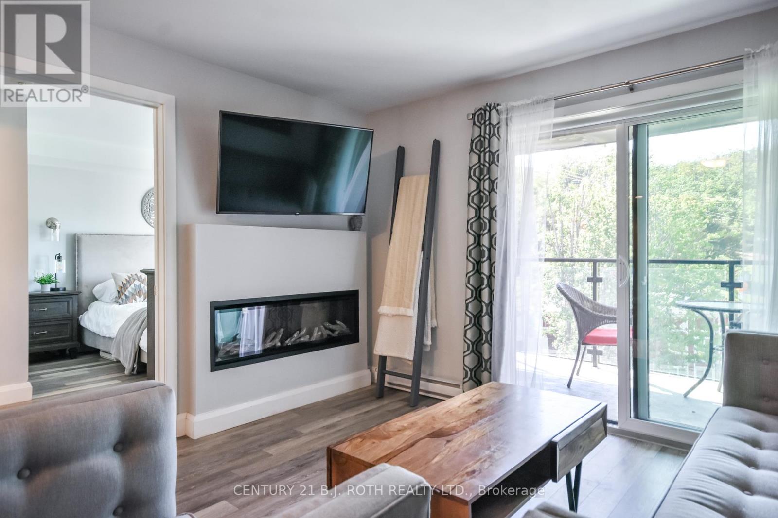Welcome to 80 Horseshoe Boulevard, Unit 406 at Slopeside Condos, ideally located in the heart of Horseshoe Valley Resort. Experience the best of four-season living, with skiing, snowboarding, and snowshoeing at your doorstep in winter, and golf, mountain biking, and hiking throughout the warmer months. Inside, the bright open-concept design showcases a modern kitchen complete with stainless steel appliances, quartz counter-tops, and a convenient breakfast bar. The spacious dining area flows into an inviting living room featuring a cozy fireplace and walkout to a private balcony with picturesque views of the ski hill, an ideal space to relax or entertain.The primary bedroom offers a peaceful escape, highlighted by a walk-in closet and a spa-inspired ensuite overlooking the slopes. A second generously sized bedroom, stylish main bathroom, and versatile den provide flexible space for guests, family, or a home office. Added conveniences include in-suite laundry and a dedicated ski storage unit for your gear. Residents enjoy access to outstanding resort-style amenities, including the gym, sauna, indoor and outdoor pools, as well as Horseshoe Lake and beach area, plus on-site dining options. Ample parking makes coming and going effortless. Located just minutes from the charming community of Craighurst for everyday essentials, only four minutes to Vetta Spa, and a short drive to The Ktchn at Braestone and Quayle's Brewery. Barrie and Orillia are both approximately 20 minutes away, with the GTA within 90 minutes. Whether you're seeking a personal getaway or a smart investment opportunity, this condo offers flexibility, including the option to participate in a recreational rental program for added income potential. Flexible closing available. Discover everything this resort community has to offer, your four-season escape awaits! (id:4555)