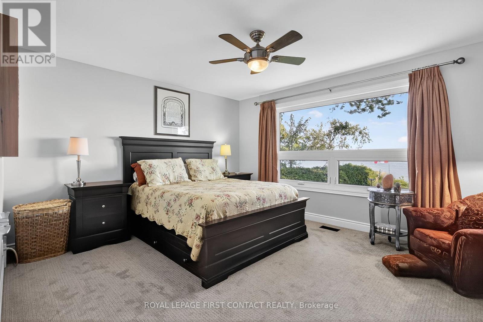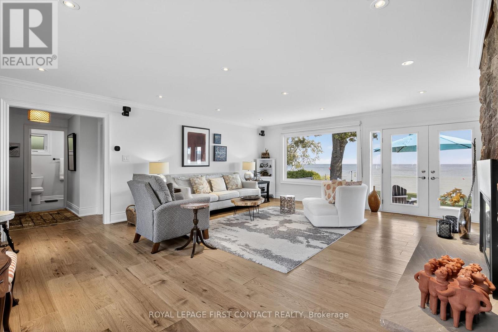 Lovely open concept bungalow on a 100 ft of prime waterfront and 203 ft deep lot, on quiet Parkside Drive, a short walk to Bayview Memorial Park. Large front & back yards, unobstructed views of Lake Simcoe, 4 bedrooms, 3 baths, 1788 sq ft on main, 3004 sq ft finished on 2 levels. At the water are a boathouse 24'4" x 12'0" (9'10" wide inside), marine rail & dock, enjoy sitting on the water side deck or the upper deck of the boathouse with glass railings. Beautifully renovated both upstairs and down with stylish kitchen, dining & living room with stone fireplace center piece, all with amazing views of the water. Updated bedrooms & baths as well. It all shows to perfection up & down. Find a gas fireplace down as well, with a nice family room, office & storage alongside the bedroom & bath. Spacious main floor laundry, inside entrance from an oversized double garage with a 6+ car driveway. Well maintained & updated: windows, doors & garage doors, furnace & air conditioner, deck, front tumble stone walkway and driveway have been replaced. There is a shed, 10kw backup generator, hot tub, central vac & UV filter, extra spray foam insulation, cable & high speed internet..... Pride of Ownership. (id:4555)