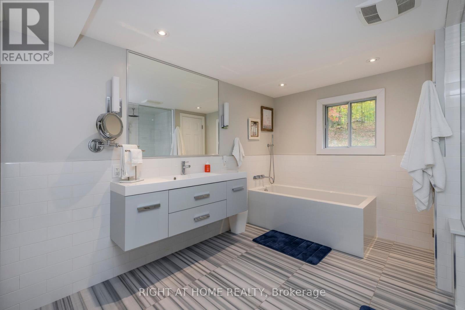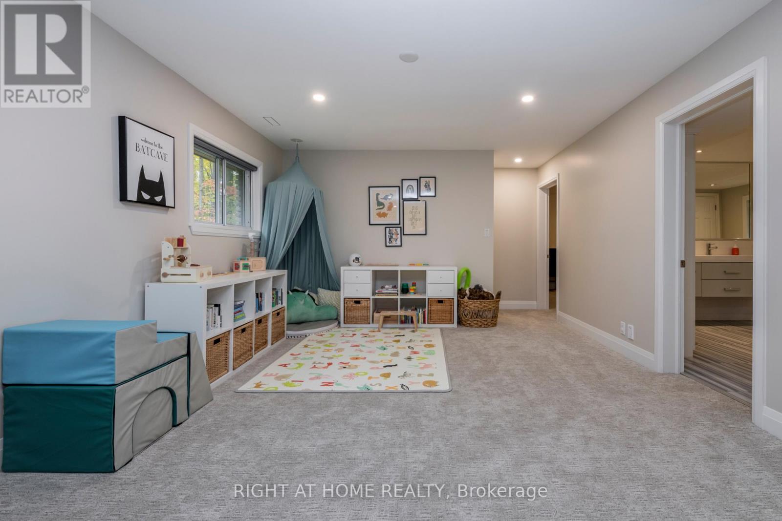 Welcome to this exceptional, one-of-a-kind home in the highly sought-after community of Simcoe Estates. Situated on a private, mature lot spanning over two acres, this residence offers the perfect blend of luxury and tranquility. Step inside to a naturally bright, open-conceptliving space. Gleaming hardwood floors, recessed pot lights, and a stunning glass railing onthe oak staircase create a sophisticated, modern atmosphere. It boasts custom storage units, a beautiful waterfall-edge quartz counter and backsplash, and a cozy gas fireplace that seamlessly connects to the living room. From the living area, walk out to a magnificent three-tiered deck, ideal for enjoying the surrounding natural beauty. After a long day, retreat to the spa-like primary bathroom, complete with heated floors, a large soaker tub, and a refreshing rain shower. (id:4555)