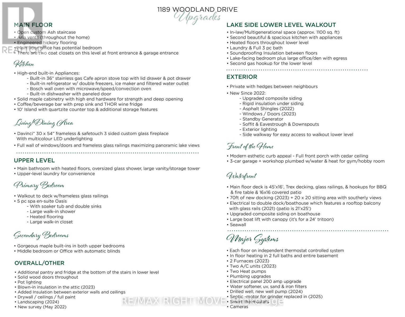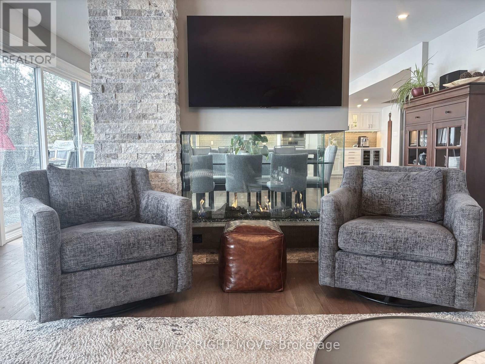 FOR THE SELECTIVE BUYER: Over 100ft of south-east Lake Simcoe waterfront & 3890 sq ft of exceptional multi-generational flexibility. Remarkable remodel since 2022 guided by thoughtful planning & supported by an updated survey, the result is a seamless modern, sophisticated lakefront retreat minutes to Orillia & Hwy 11. A high-end custom home is evident from curb appeal of the new covered front porch to opening the front door. Designed for waterfront living, all principal rooms are waterside & walls of glass capture panoramic lake views. Private & serene lot naturally protected from prevailing winds. Striking open riser custom staircase makes an architectural statement while a stunning three-sided DaVinci fireplace elegantly defines living & dining spaces preserving an open-concept flow. Beauty & performance, the kitchen showcases solid maple cabinetry, premium hardware, a 10-ft quartzite island, Built-in 36" gas Café apron-front range, Bosch wall oven w/ microwave/speed/convection functionality, Built-in refrigerator w/ double freezers, ice maker, filtered water, dedicated coffee bar w/ bar sink & beverage fridge. Primary suite features spa-inspired en-suite bath, large walk-in closet & a private deck/glass railings w/unobstructed water views. Secondary bedrooms w/custom maple built-ins, a gorgeous bath & upper laundry. Work from home w/ 2 dedicated offices for a busy lifestyle. Finished walkout featuring gorgeous self-contained waterside in-law suite w/exquisite features & separate laundry. On-demand water, multiple water filtration systems, gas heat & standby generator offer the best in comfort. Outdoor showcases impressive 70ft dock + 20' x 20' sitting area w/southerly views. Main floor deck is 45'x16', trex decking, glass railings, & hookups for BBQ & fire table & 16x16 covered space. Rare double boathouse w/rooftop patio anchors the waterfront for extraordinary vantages & lakeside relaxation. 3-car garage + workshop plumbed w/water & heat for gym/hobby room. (id:4555)