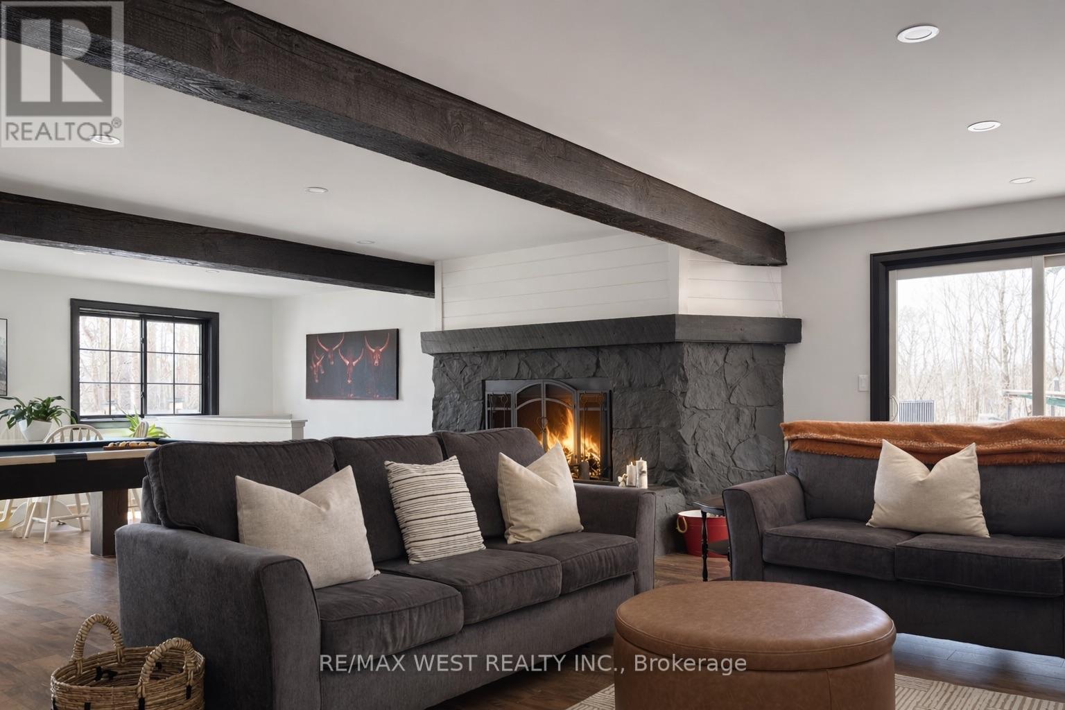 Stunning Modern Country Residence Ideally Situated Minutes From Mount St. Louis Moonstone, Offering Over 4,500 Square Feet Of Beautifully Reimagined Living Space On A Private One-Acre Setting. This Extensively Renovated Home Blends Timeless Character With Refined Contemporary Design, Featuring Seven Bedrooms And Five Elegant Bathrooms. A Showstopping Chef's Kitchen Anchors The Main Level With An Expansive Island And Seamless Flow Into A Generous Dining Area, Perfect For Memorable Gatherings. The Open Concept Great Room Showcases A Striking Wood Burning Fireplace And Multiple Conversation Zones, Creating A Warm And Inviting Atmosphere. The Primary Suite Is A Luxurious Retreat With A Spa-Inspired Five Piece Ensuite And Walk-In Closet, Complemented By Three Additional Bedrooms, A Bright Sunroom Or Office, And Convenient Upper Level Laundry. The Fully Self-Contained Lower Level Offers Exceptional Flexibility With A Modern Eat-In Kitchen, Spacious Living Area, Three Bedrooms, One And A Half Bathrooms, Abundant Storage, And A Walkout To The Grounds. A Substantial Barn Or Garage With 60 Amp Service And 240 Volt Power Comfortably Accommodates Two Trucks. Enjoy Proximity To Horseshoe Valley Resort, Along With Easy Access To Barrie And Orillia. Notable Features Include A Durable Steel Roof, Updated Windows, 200 Amp Electrical Service, Enhanced Insulation, Upgraded Plumbing And HVAC Systems, A 14 By 24 Foot Deck, Distinctive Brick And Wood Beam Accents, Two Fireplaces, And An Impressive 17 Foot Swim Spa Designed For Year Round Enjoyment Under The Stars. (id:4555)