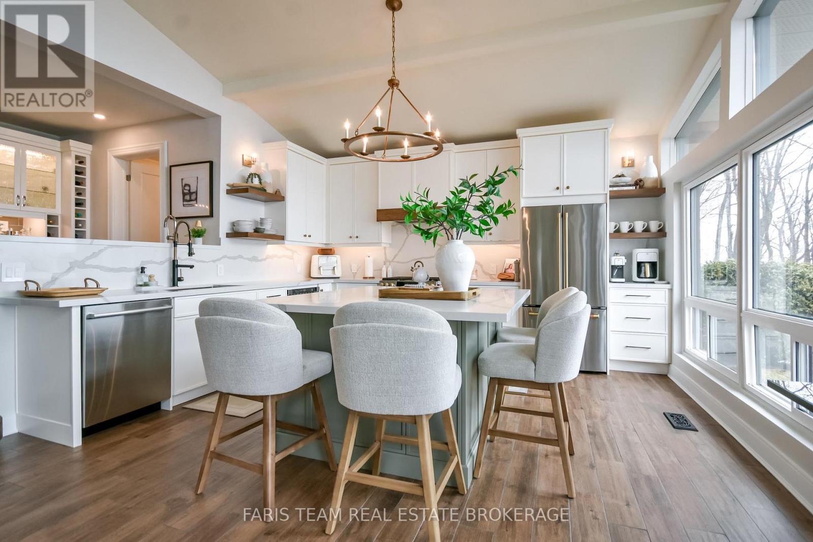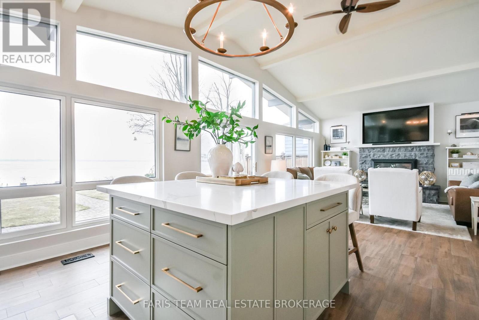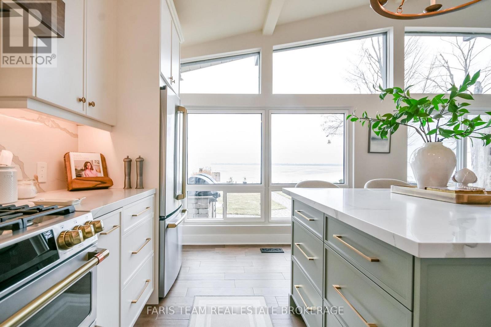 Top 5 Reasons You Will Love This Home: 1) Welcome to a rare waterfront retreat on coveted Greenwood Forest Road in Oro-Medonte, where peaceful tree-lined surroundings meet sweeping, unobstructed views of Lake Simcoe, offering a truly special setting to wake up to breathtaking sunrises right from your own backyard 2) Set on an impressive lot, this beautifully updated bungalow offers 2,697 square feet of finished living space, plus a custom heated three-bay garage with a loft, perfect for hobbies, storage, or creating your own lakeside studioor retreat 3) The heart of the home is a bright, show-stopping kitchen with a vaulted ceiling, quartz counters and backsplash, a generous island, and premium appliances, seamlessly flowing into an open-concept living space designed for effortless entertaining and everyday enjoyment with the lake always in view 4) Designed for comfort and flexibility, the home features three inviting main level bedrooms, plus a fully finished lower level with a bedroom, a cozy family room with a gas fireplace, and a dedicated home office with an ensuite that is ideal for modern living and working from home 5) Step outside to your own private waterfront oasis complete with a concrete pier and cantilever dock, an outdoor kitchen with dual barbeques, beautifully landscaped patios, and a lakeside firepit, along with added peace of mind with key upgrades including a Lennox furnace and air conditioner (2022), Generac generator (2023), septic system (2018), water softener with iron filter (2022), and 200-amp electrical service. 1,580 above grade sq.ft. plus a finished lower level. (id:4555)