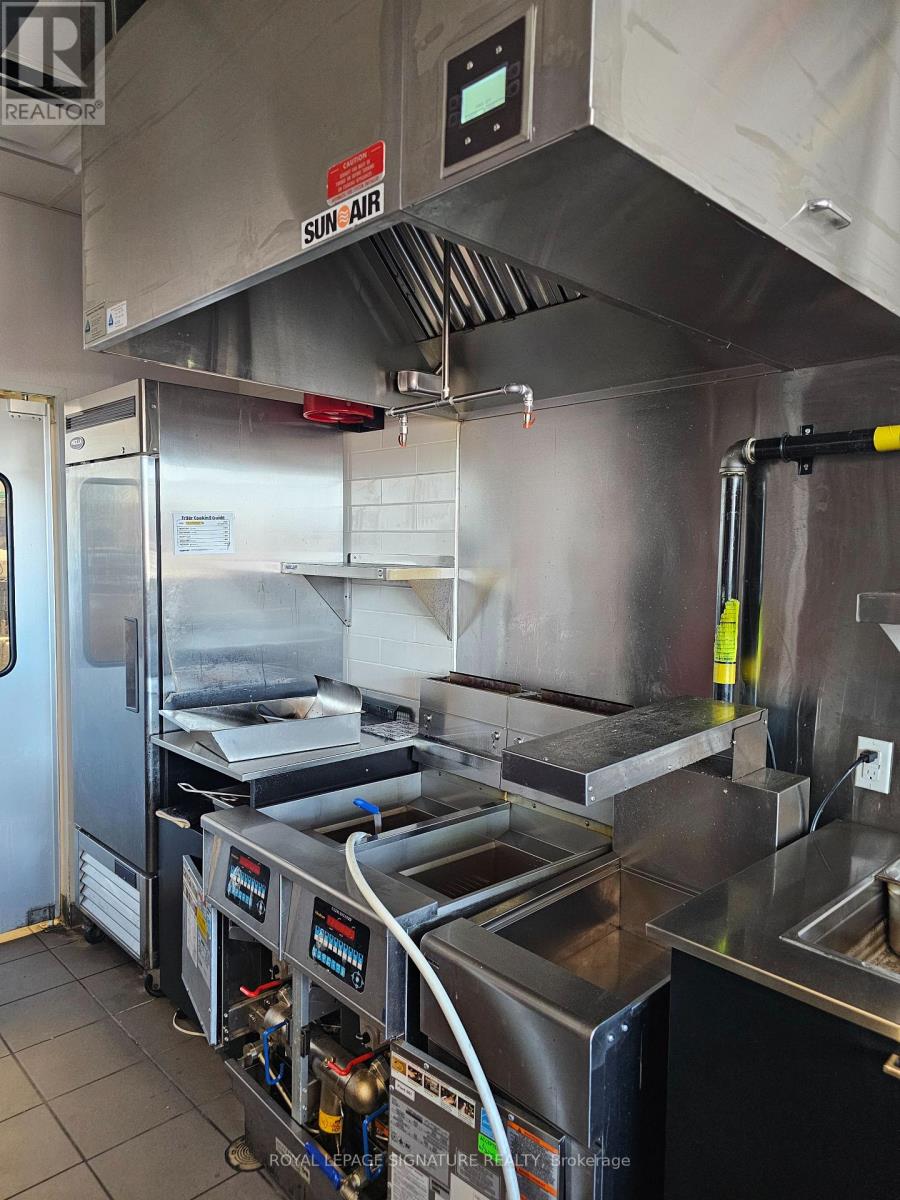 Turnkey quick service restaurant opportunity available for rebranding in a high-traffic plaza on Ritson Road in Oshawa. This efficient QSR setup is ideal for operators looking to introduce a new concept, cuisine, or franchise into a well-established commercial node. The space is fully equipped with a commercial hood, two walk-ins (fridge + freezer), and a stream lined layout with seating for 16. The plaza offers excellent visibility, abundant signage, and over100 parking spaces to support both dine-in and takeout traffic. An attractive gross rent of$4,449 including TMI, paired with a long remaining term of 7 + 5 + 5 years, makes this an outstanding opportunity for a wide range of foodservice operators. Please do not go direct or speak with staff. (id:4555)