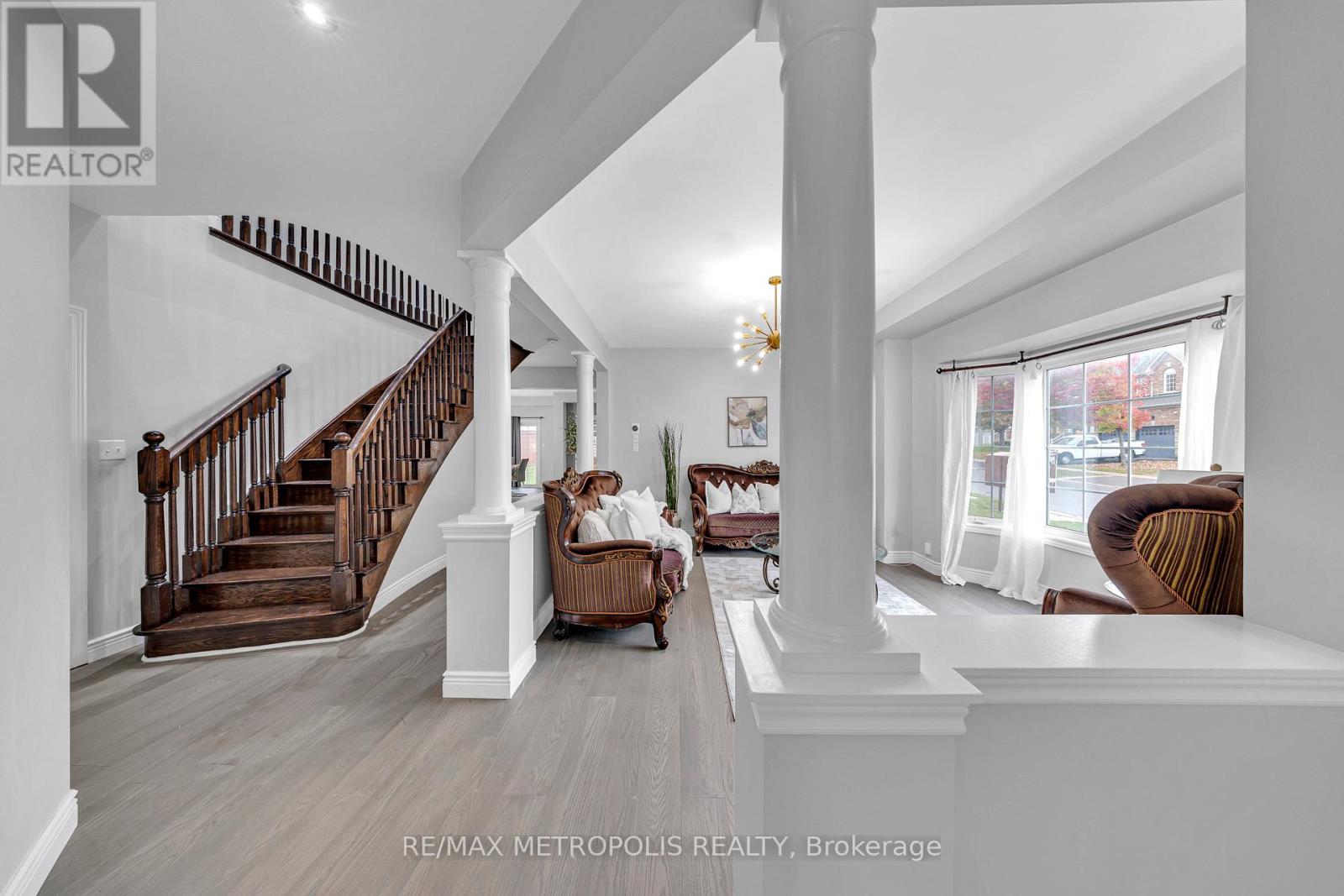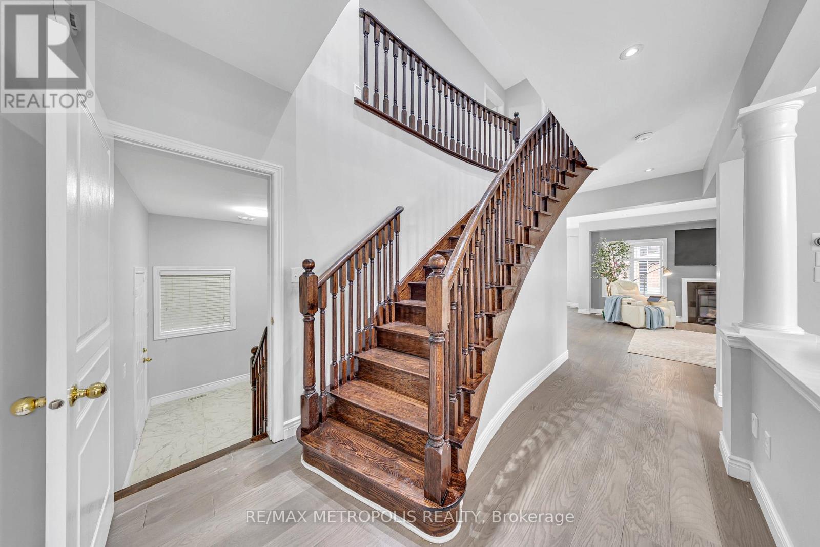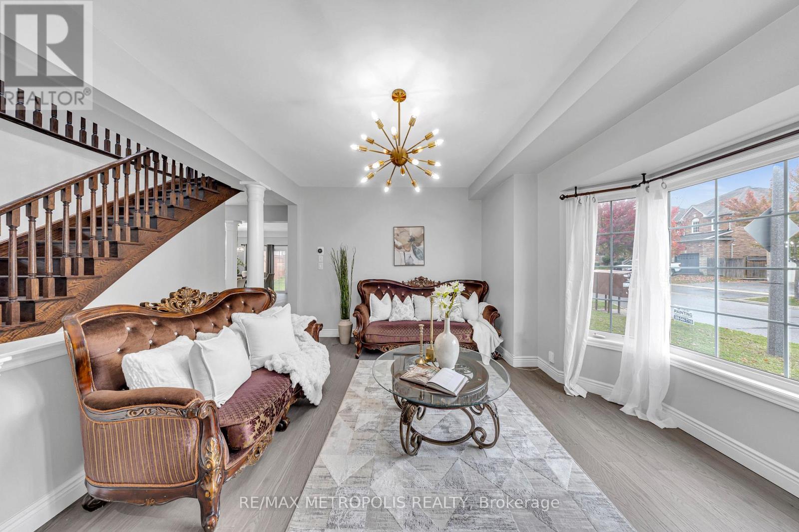 This beautifully upgraded home sits on a premium corner lot with no sidewalk, offering extra space, privacy, and outstanding curb appeal. Featuring a double car garage and parking for four additional cars on the driveway, this home perfectly blends style and functionality. Upgrades include a modern kitchen with a large island and stainless steel appliances, four renovated washrooms, engineered hardwood flooring, fresh paint throughout, pot lights on the second floor, and elegant light fixtures on the main level. The main floor offers a spacious family room ideal for gatherings, a bright living area, and a modern kitchen with ample cabinetry. An elegant chocolate oak staircase leads to the second level, featuring four spacious bedrooms plus an optional fifth bedroom or office, providing flexibility for growing families or remote work. The primary suite showcases a luxurious 5-piece ensuite and walk-in closet, while the second floor includes two additional full bathrooms for ultimate convenience.Enjoy outdoor living in the fenced backyard complete with a beautifully interlocked patio, perfect for entertaining family and friends. Additional highlights include central vacuum, garage access from inside, and a large unfinished basement offering endless potential to design your dream space. (id:4555)