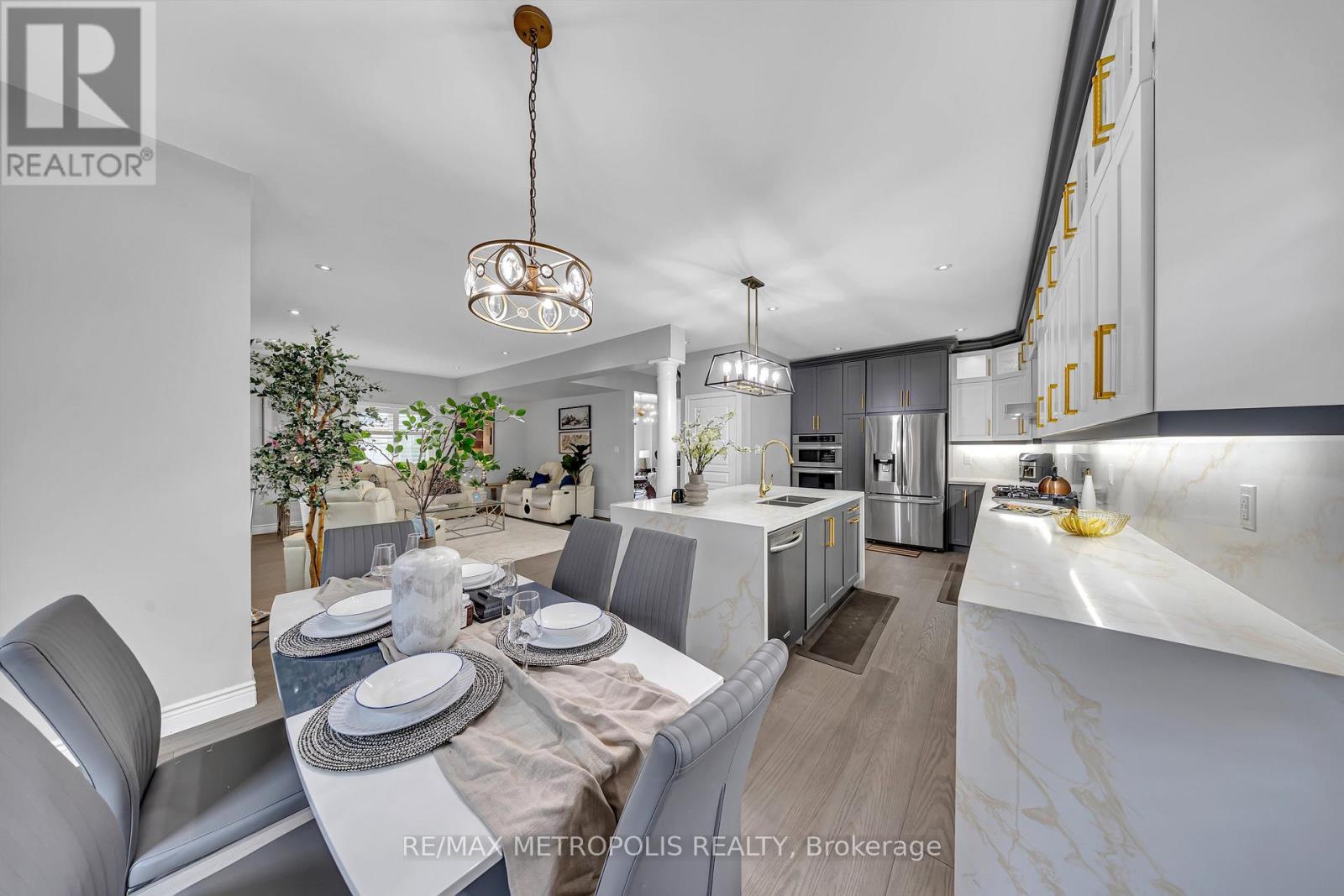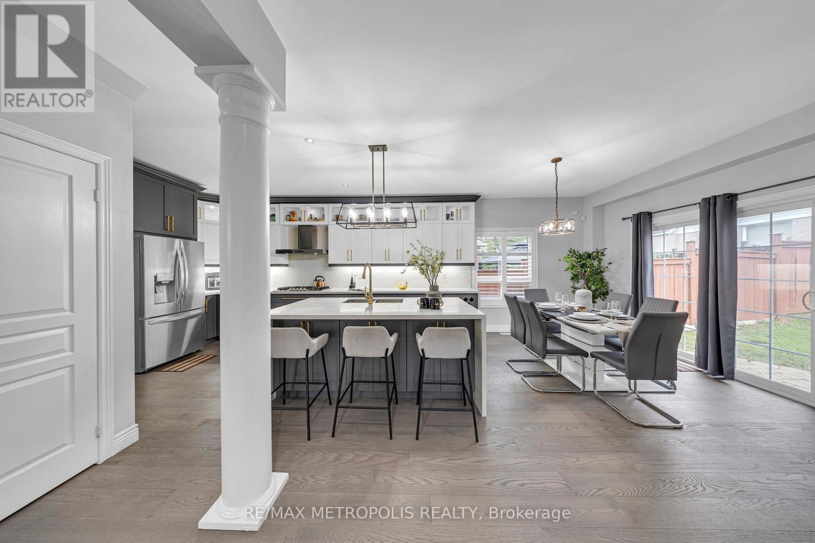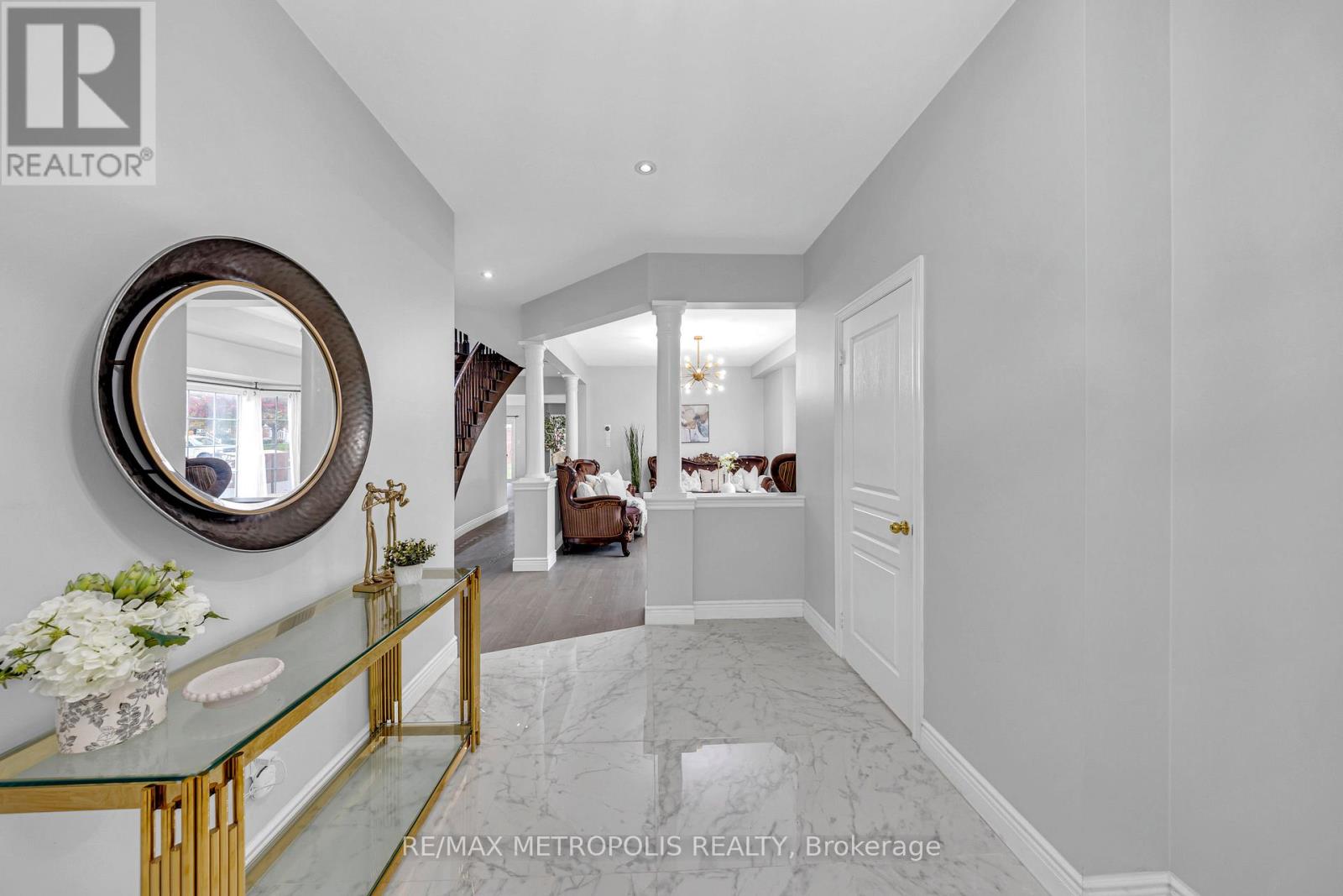 This beautifully upgraded home sits on a premium corner lot with no sidewalk, offering extra space, privacy, and outstanding curb appeal. Featuring a double car garage and parking for four additional cars on the driveway, this home perfectly blends style and functionality. Upgrades include a modern kitchen with a large island and stainless steel appliances, four renovated washrooms, engineered hardwood flooring, fresh paint throughout, pot lights on the second floor, and elegant light fixtures on the main level. The main floor offers a spacious family room ideal for gatherings, a bright living area, and a modern kitchen with ample cabinetry. An elegant chocolate oak staircase leads to the second level, featuring four spacious bedrooms plus an optional fifth bedroom or office, providing flexibility for growing families or remote work. The primary suite showcases a luxurious 5-piece ensuite and walk-in closet, while the second floor includes two additional full bathrooms for ultimate convenience.Enjoy outdoor living in the fenced backyard complete with a beautifully interlocked patio, perfect for entertaining family and friends. Additional highlights include central vacuum, garage access from inside, and a large unfinished basement offering endless potential to design your dream space. (id:4555)